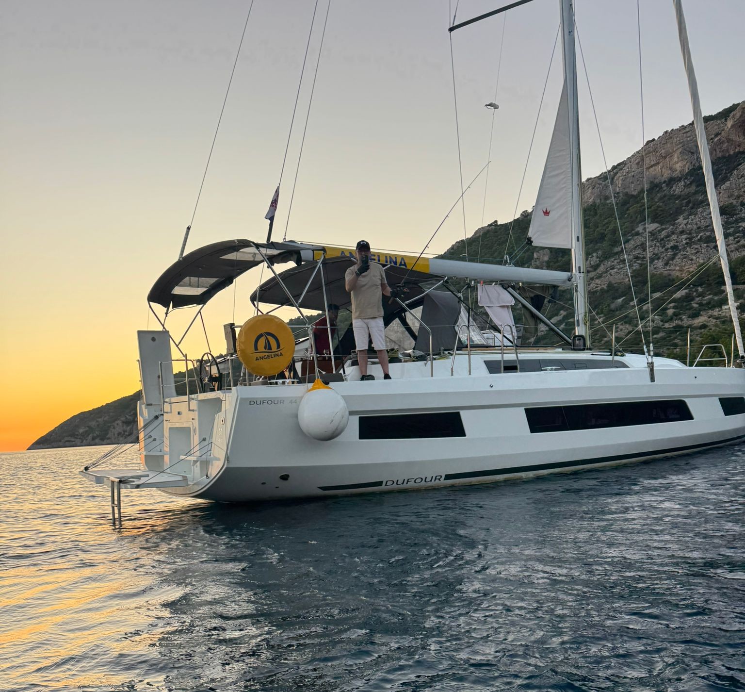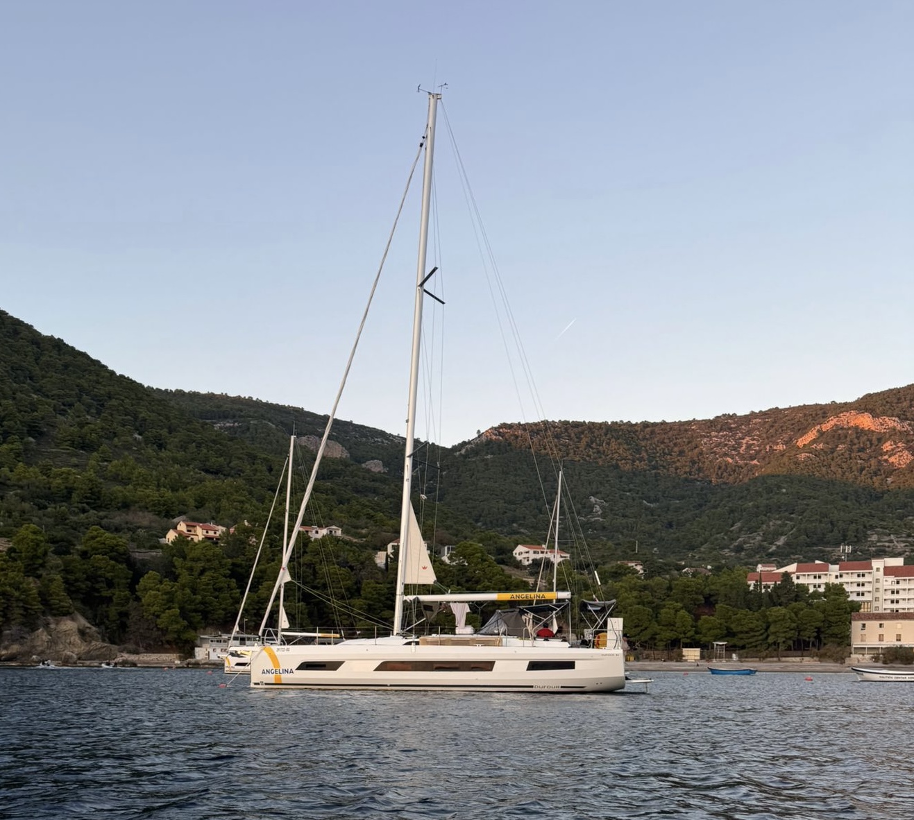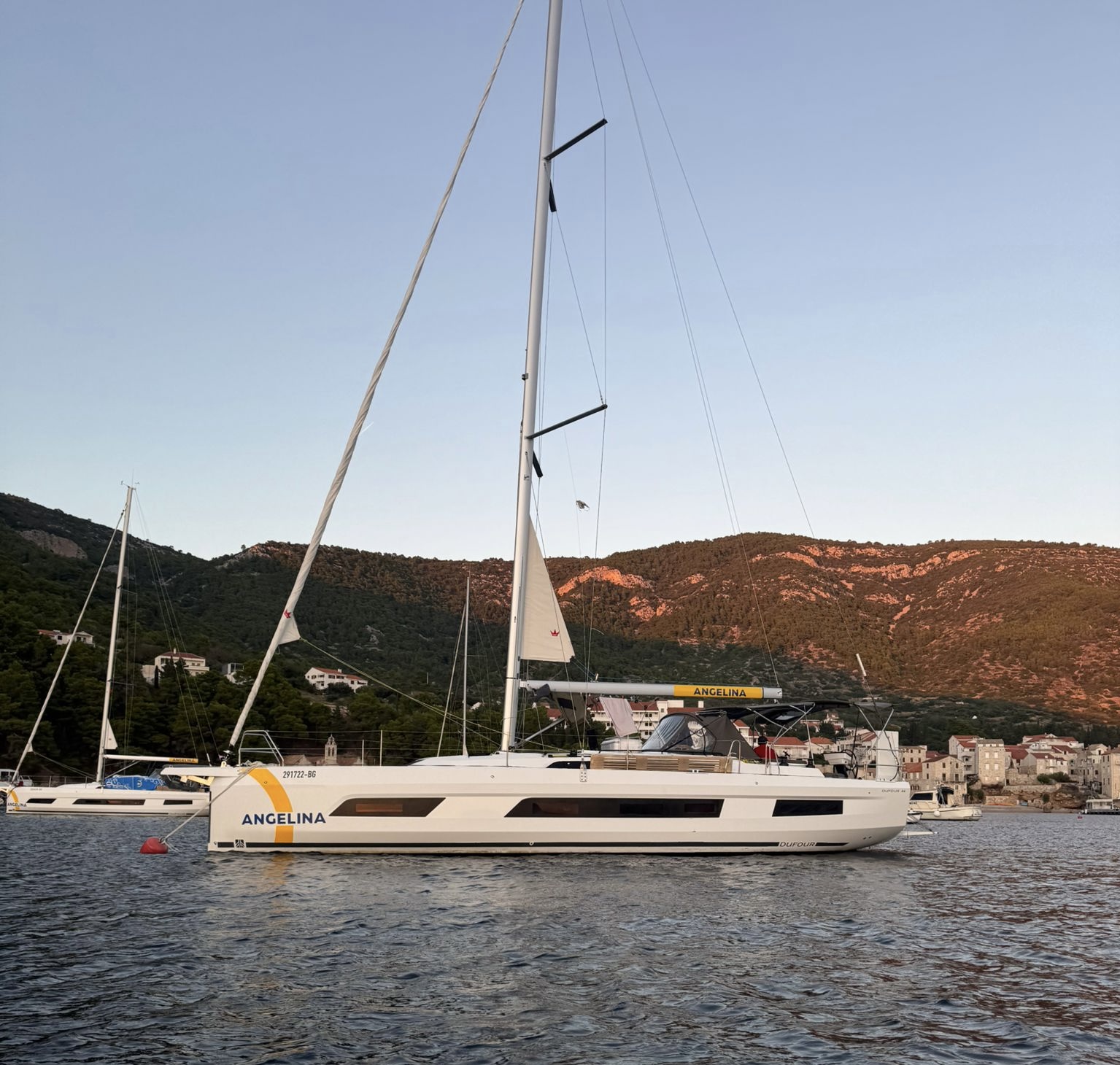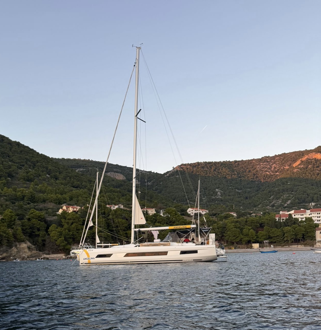 | Outside | 220 V-Landanschluss, Badeplattform, Biminitop, Bootshaken, Cockpitdusche, Cockpitlautsprecher, Cockpitpolster, Cockpittisch, Fender, Festmacherleinen, Gangway, Grill, Solaranlage, Sprayhood, Wasserschlauch, Windex, Winschen |