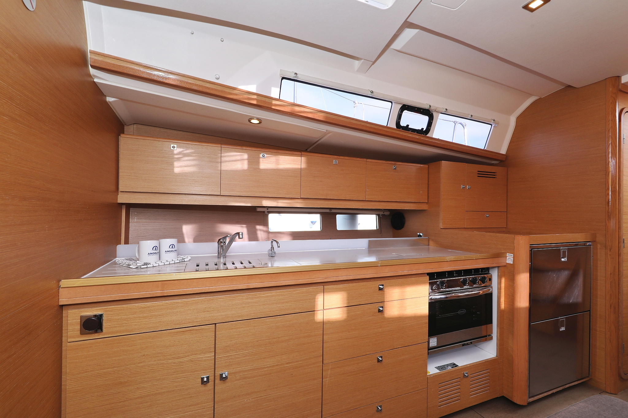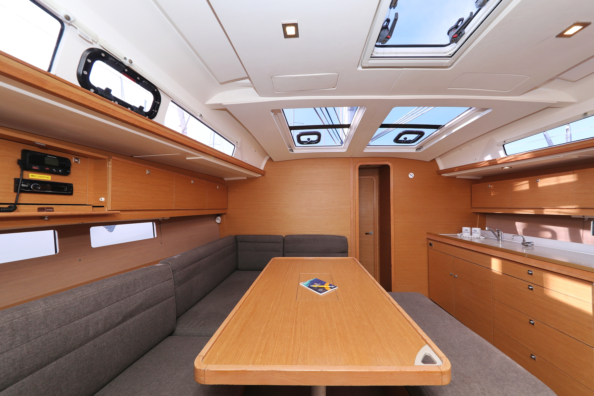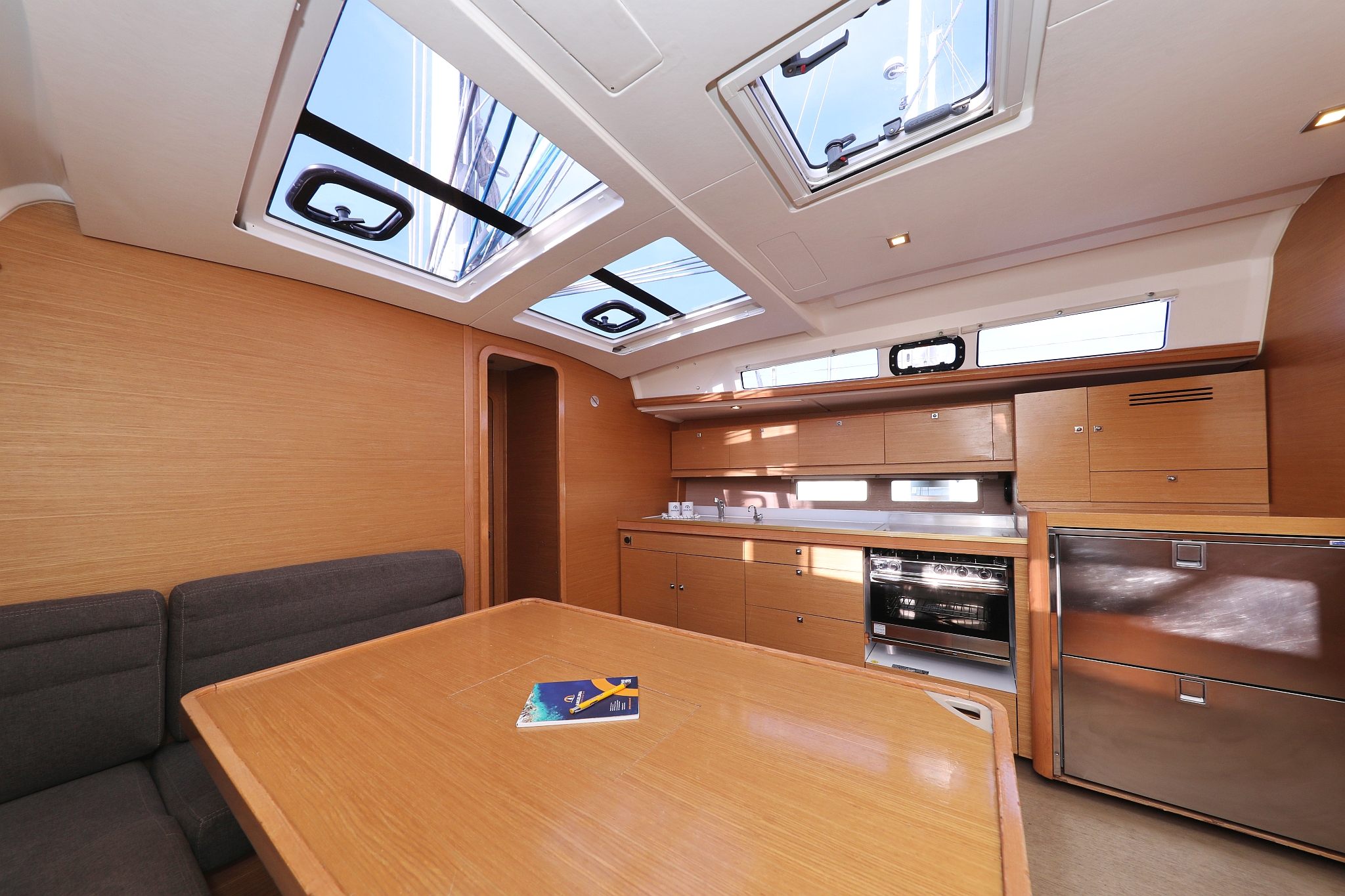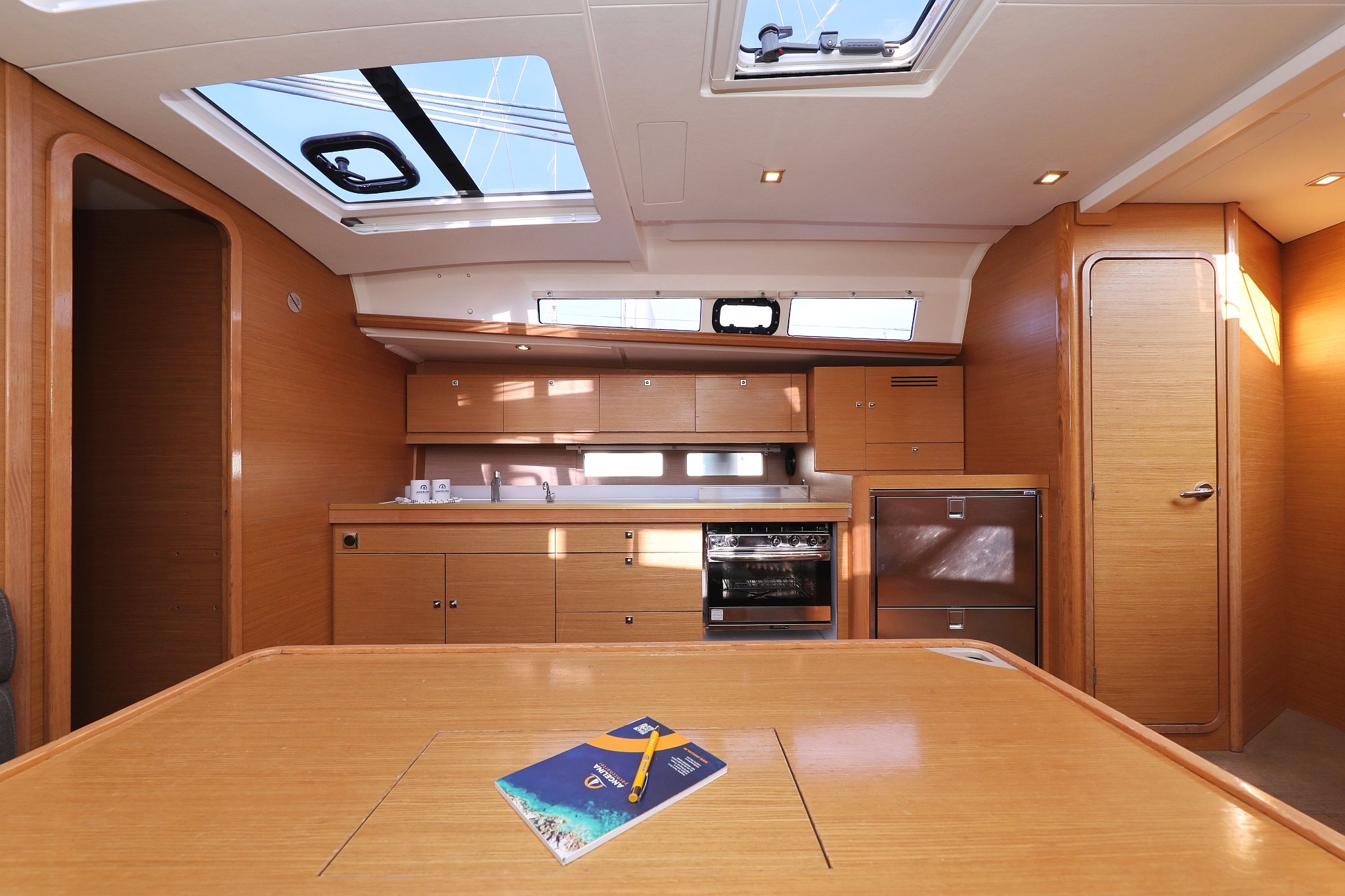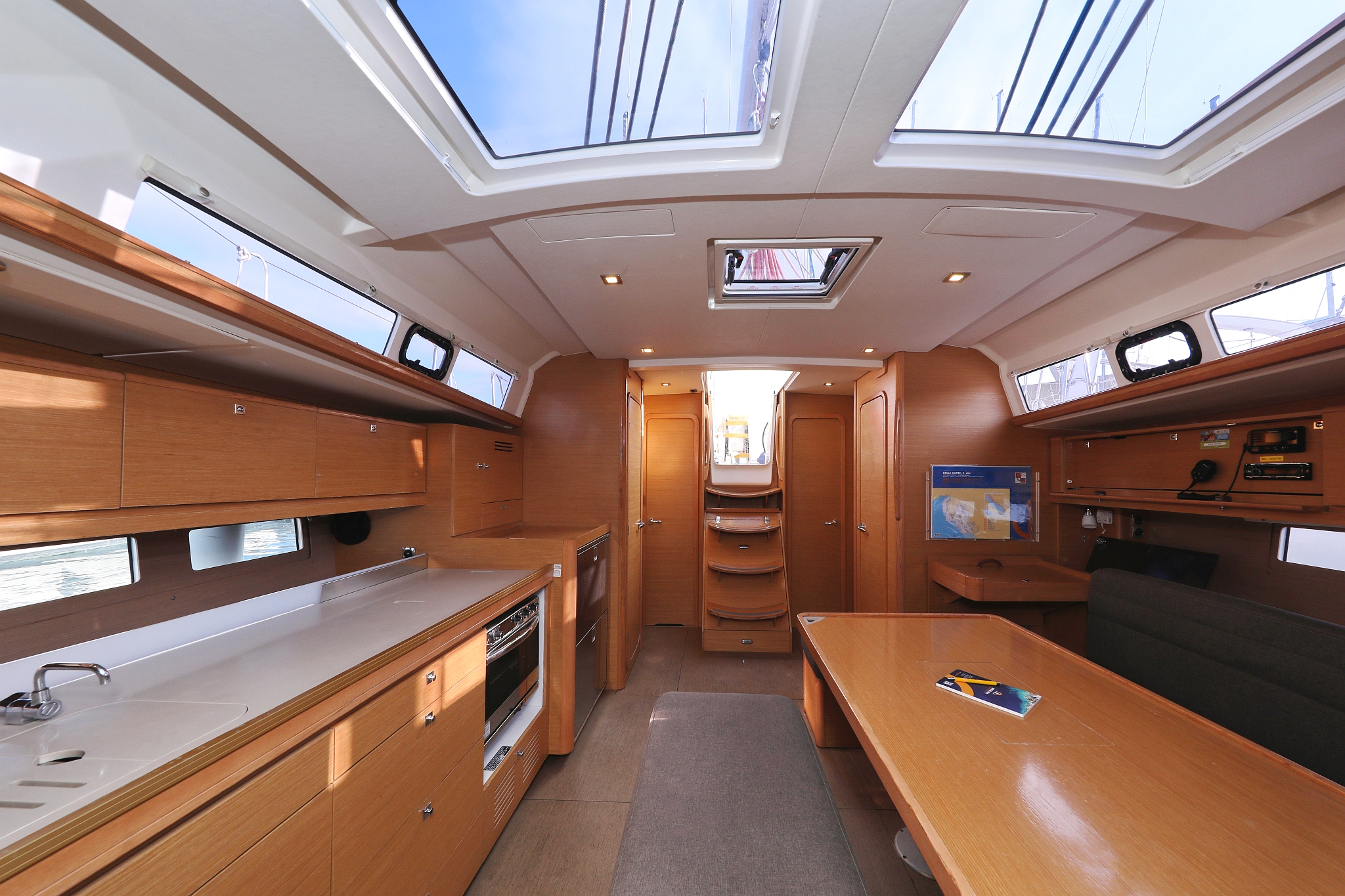 | Outside | 220 V-Landanschluss, Badeplattform, Biminitop, Bootshaken, Cockpitdusche, Cockpitlautsprecher, Cockpitpolster, Cockpittisch, Delta-Anker, elektr. Ankerwinsch, Fender, Festmacherleinen, Gangway, Genuawinschen, Grill, Solaranlage, Sprayhood, Teak im Cockpit, Wasserschlauch, Winschen |