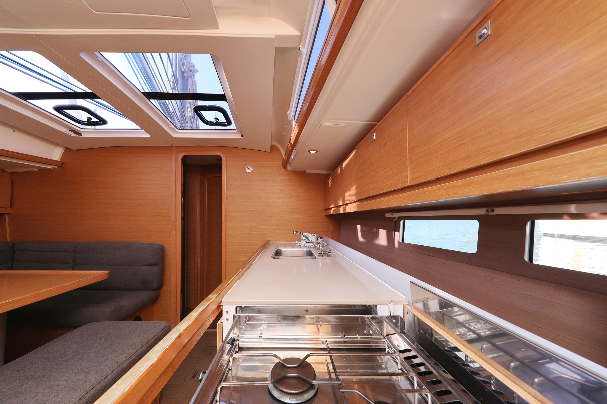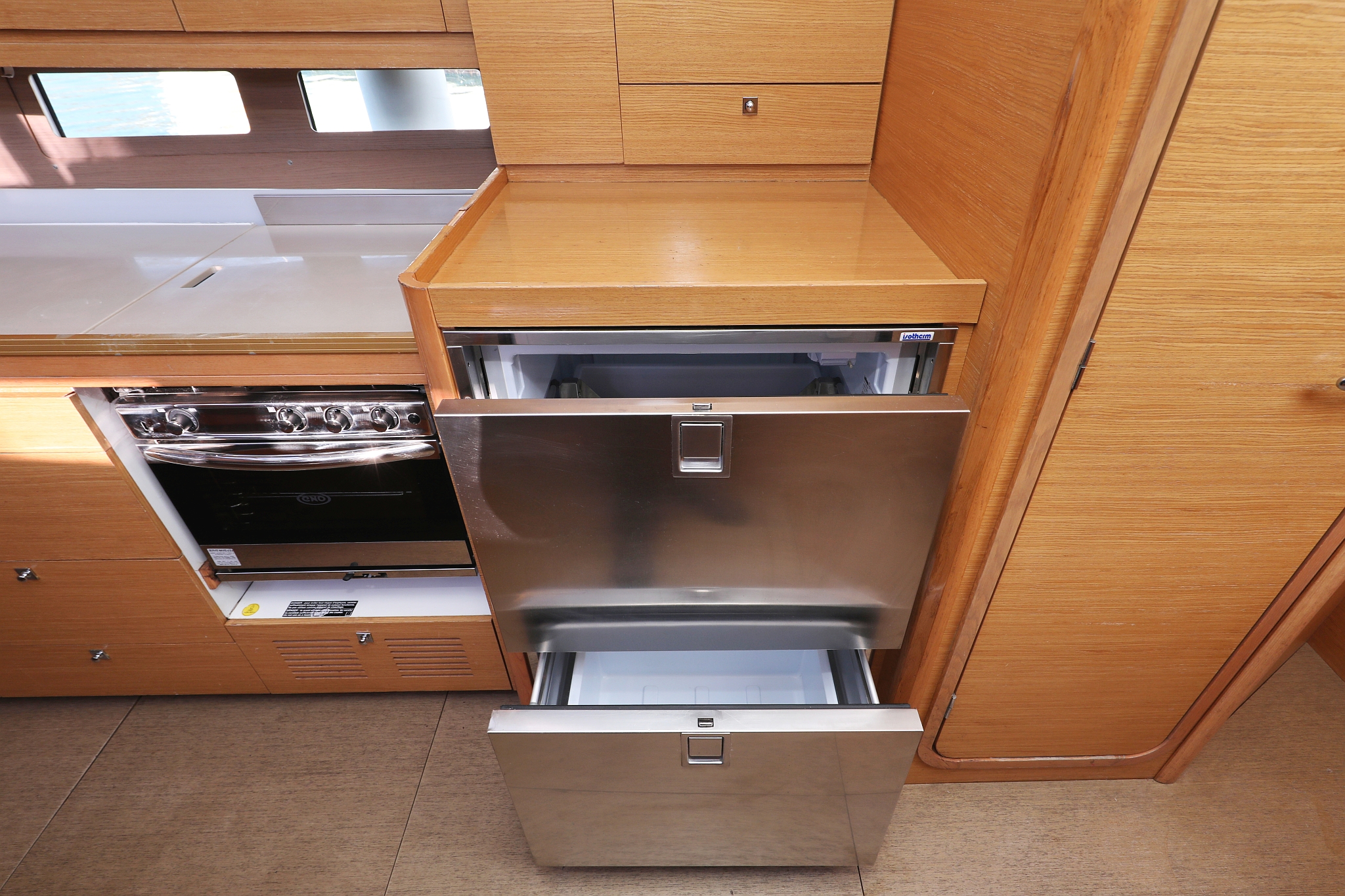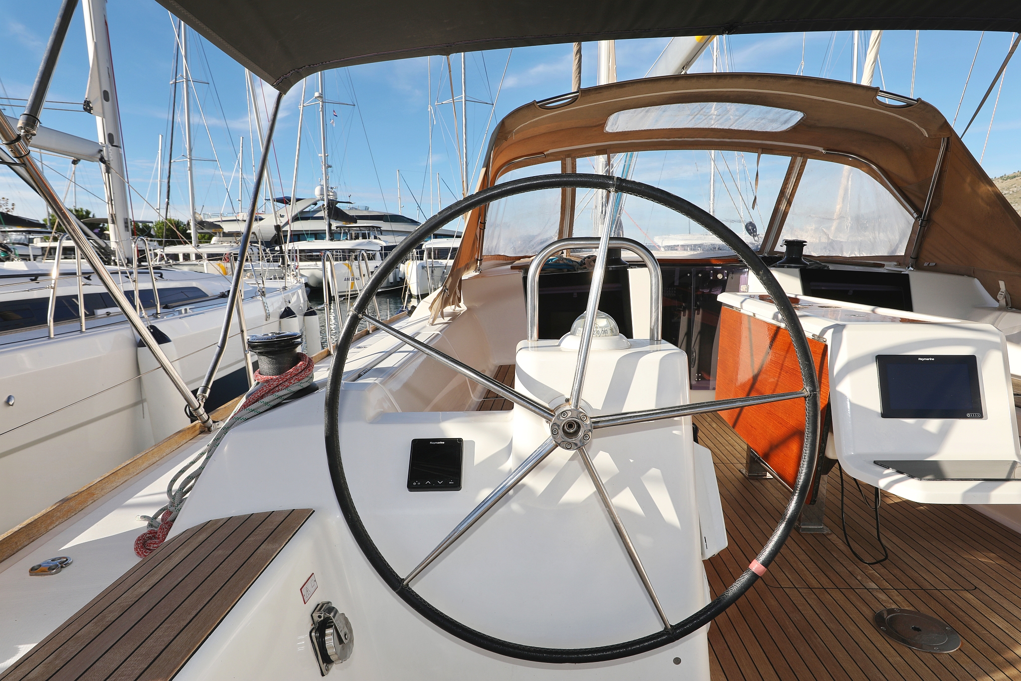| Safety | Autopilot, Blitzboje, Bordapotheke, Bordwerkzeug, Bugstrahlruder, elektr. Bilgepumpe, Feststoffschwimmwesten, Feuerlöscher, Handbilgepumpe, Lifebelts, Nebelhorn, Notpinne, Notsignale, Radarreflektor, Rettungsinsel, Taschenlampe, UKW-Funk, Zweitanker |
