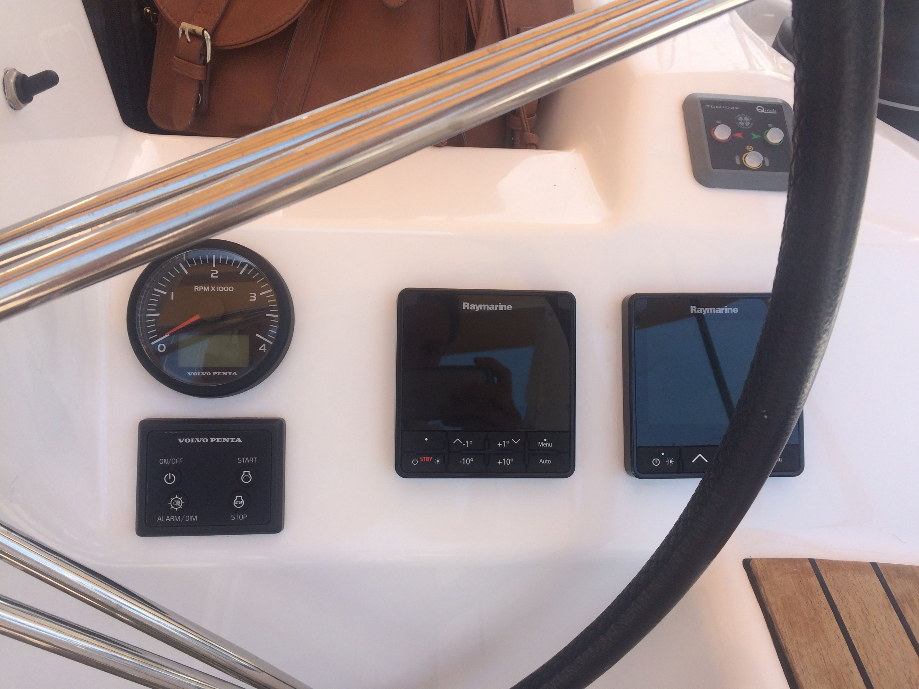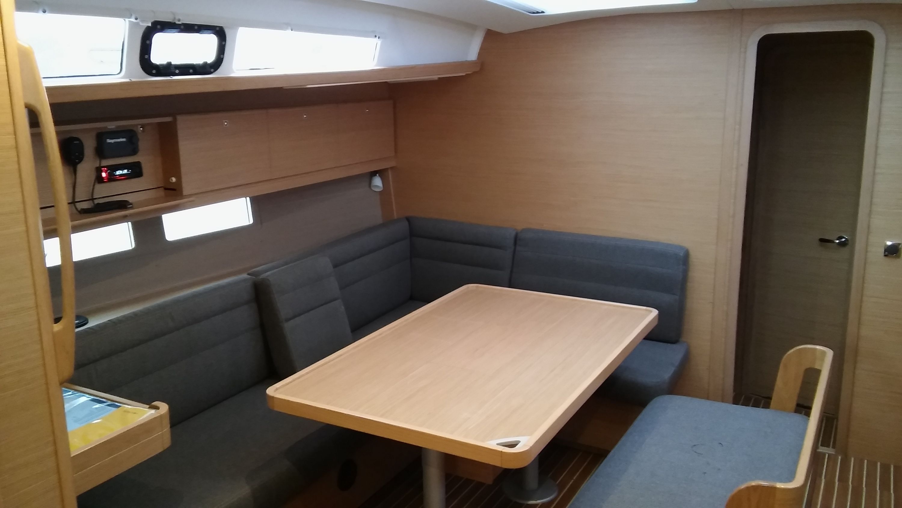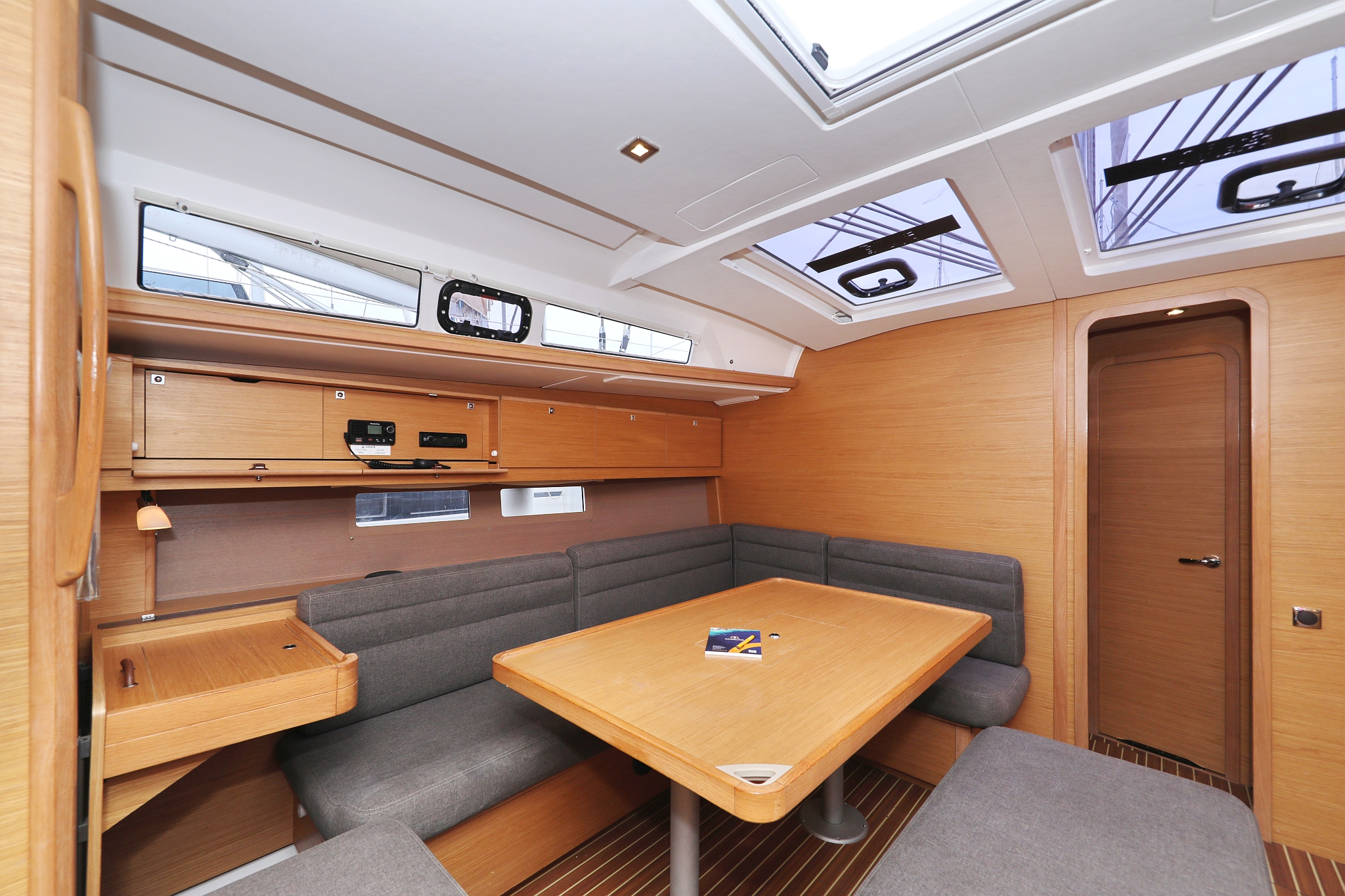 | Navigation | Barometer, Fernglas, GPS mit Kartenplotter im Cockpit, Handpeilkompass, Kompass, Navigationsbesteck, Seekarten, Tridata (Log, Echolot, Windm.), Windmesser |