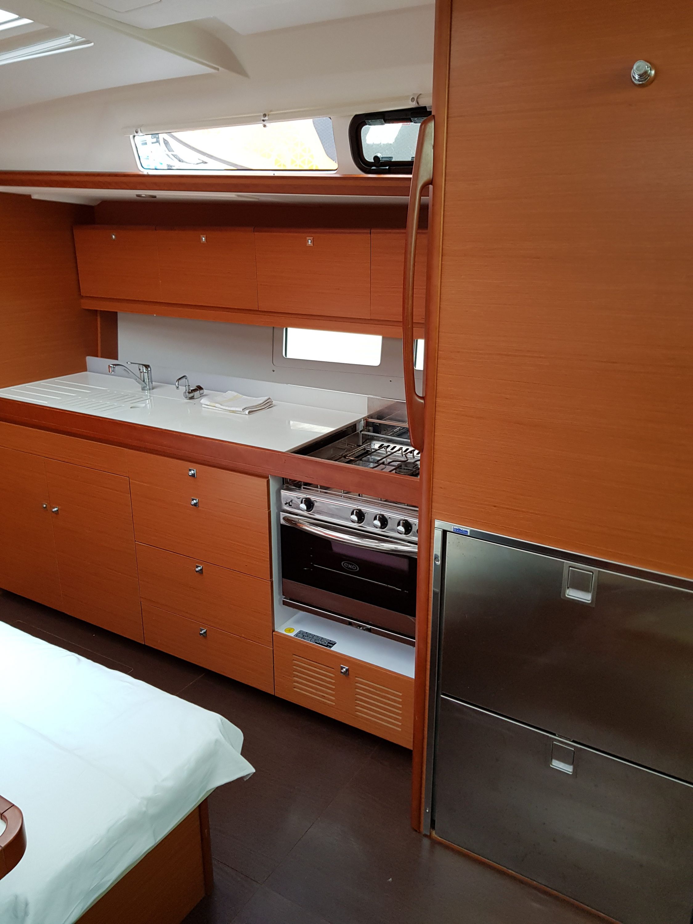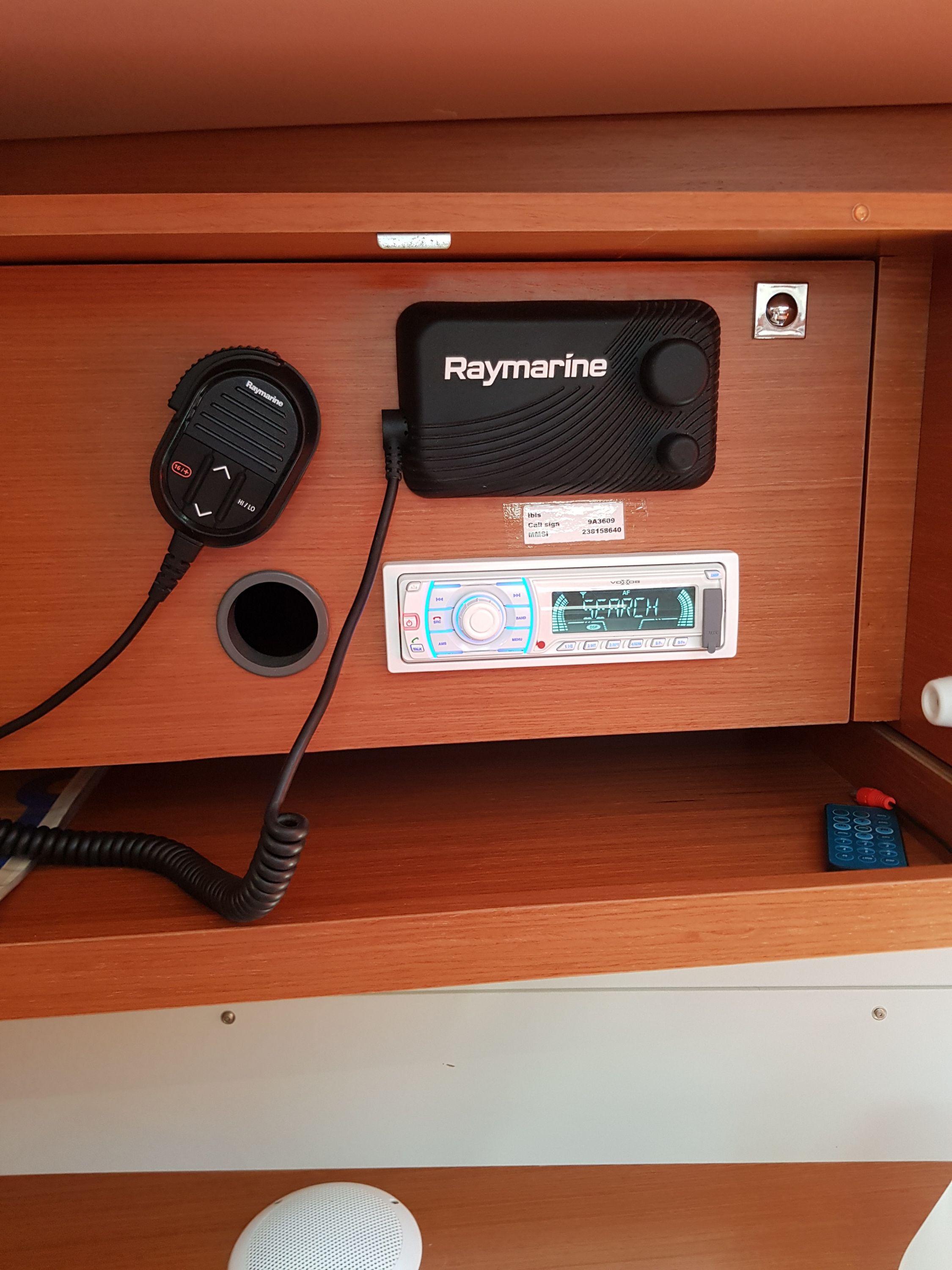 | Safety | Autopilot, Blitzboje, Bordapotheke, Bugstrahlruder, Feststoffschwimmwesten, Feuerlöscher, Lifebelts, Nebelhorn, Notsignale, Radarreflektor, Rettungsinsel, Rettungskragen, UKW-Funk |