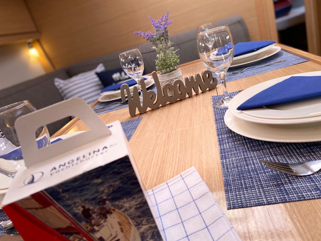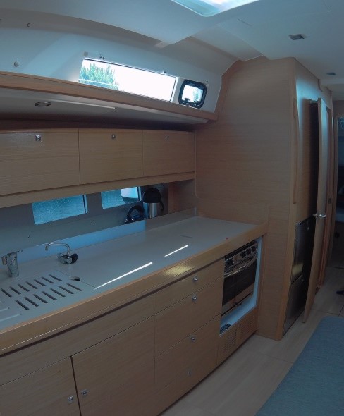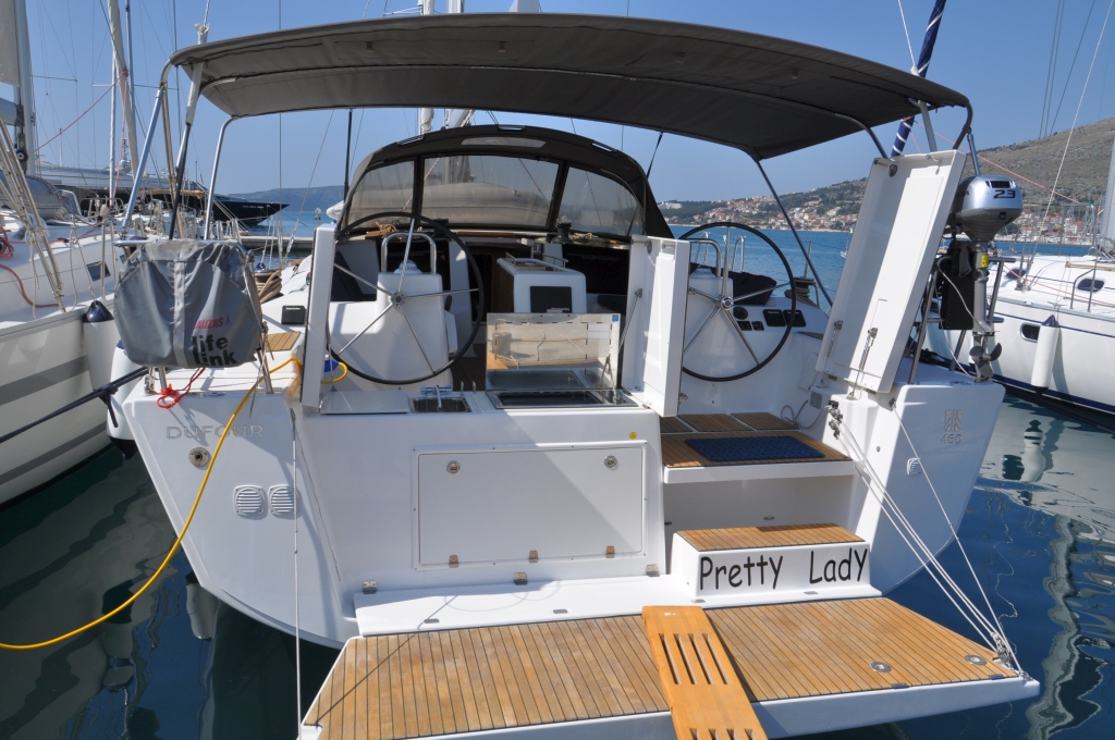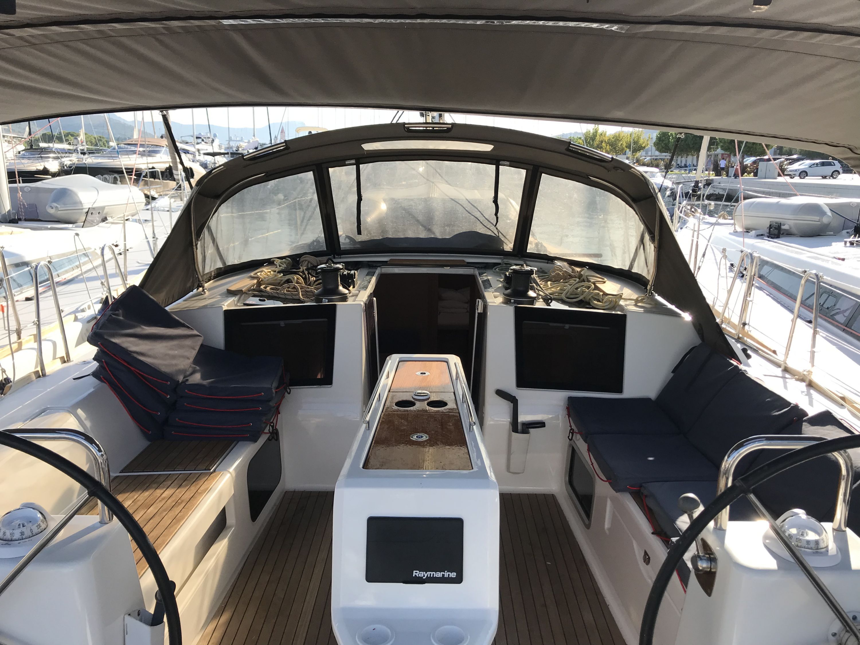 | Outside | Badeplattform, Biminitop, Bootshaken, Cockpitdusche, Cockpitlautsprecher, Cockpittisch, Delta-Anker, elektr. Ankerwinsch, Fender, Festmacherleinen, Gangway, Grill, Jambo Anker, Solaranlage, Sprayhood, Teak im Cockpit, Wasserschlauch, Winschen |