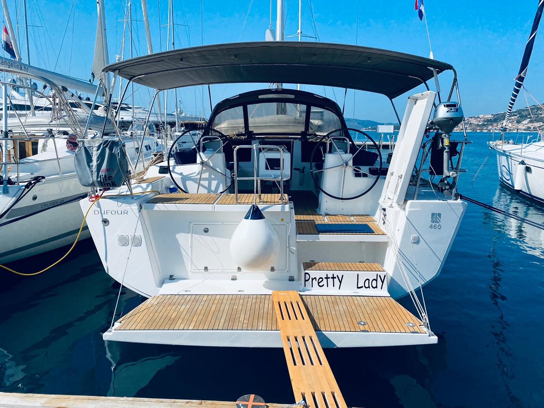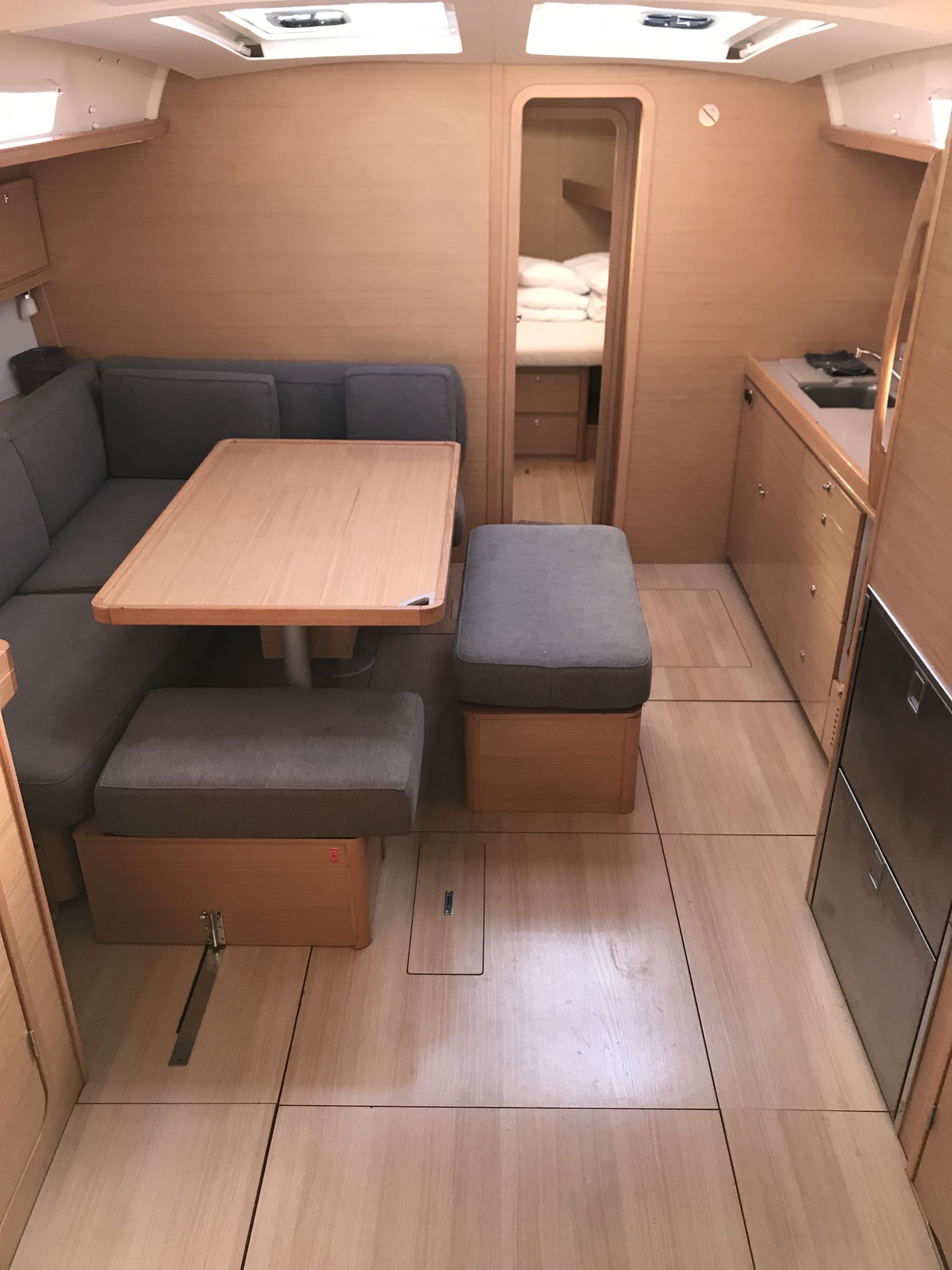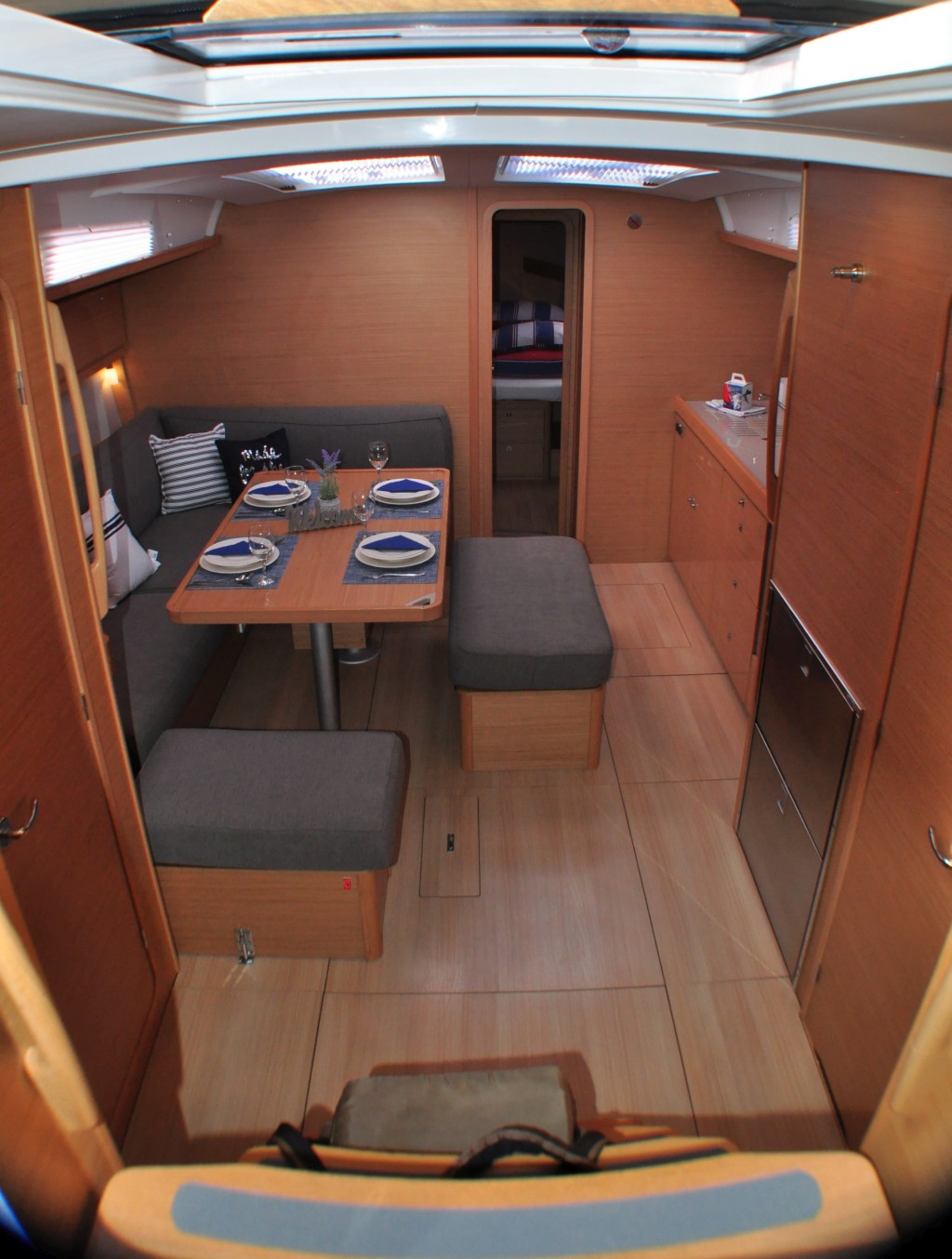 | Outside | Badeplattform, Biminitop, Bootshaken, Cockpitdusche, Cockpitlautsprecher, Cockpittisch, Delta-Anker, elektr. Ankerwinsch, Fender, Festmacherleinen, Gangway, Grill, Jambo Anker, Solaranlage, Sprayhood, Teak im Cockpit, Wasserschlauch, Winschen |