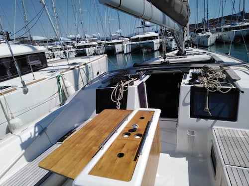 | Outside | 220 V-Landanschluss, Badeleiter, Biminitop, Bugspriet, Cockpitdusche, Cockpitpolster, elektr. Ankerwinsch, Fender, Kugelfender, Sprayhood, Teak im Cockpit |