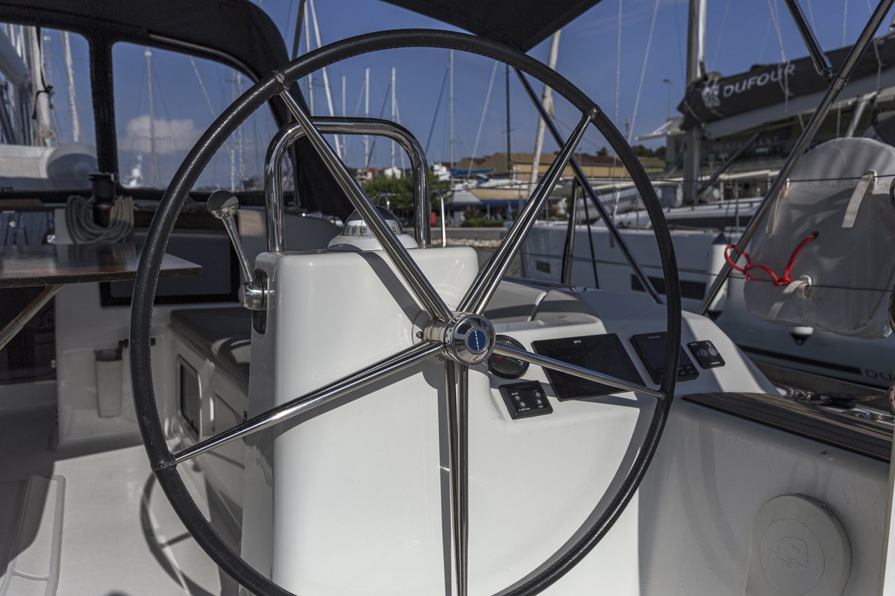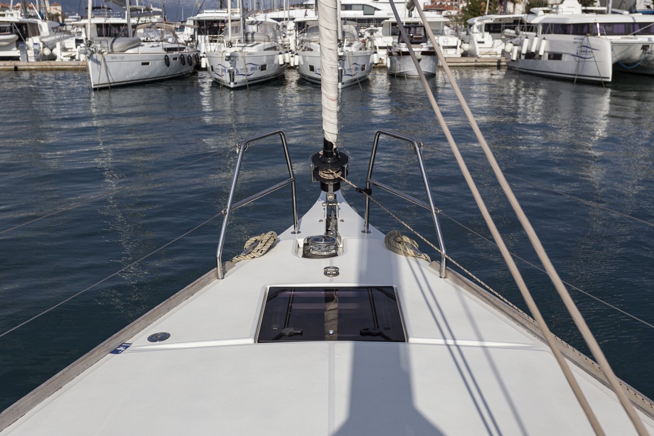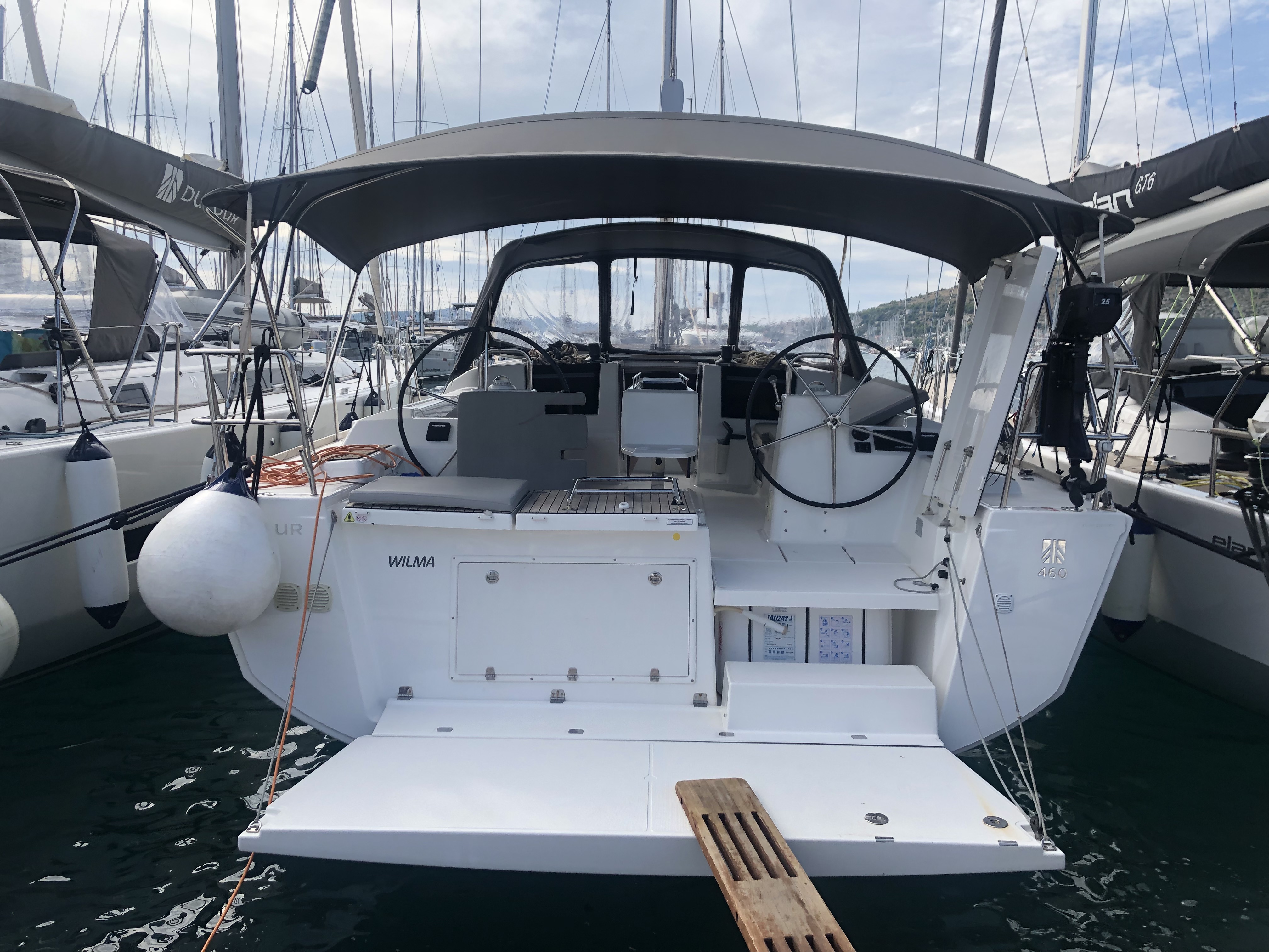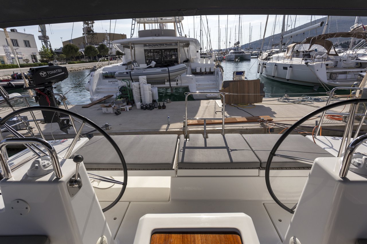 | Outside | 220 V-Landanschluss, Anker mit Kette, Badeleiter, Badeplattform, Biminitop, Bootshaken, Cockpitdusche, Cockpitkühlschrank, Cockpitlautsprecher, Cockpitleuchte, Cockpitpolster, Cockpittisch, Dieselkanister , elektr. Ankerwinsch, Fender, Grill, Sprayhood, Teak im Cockpit |