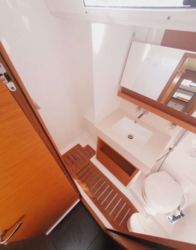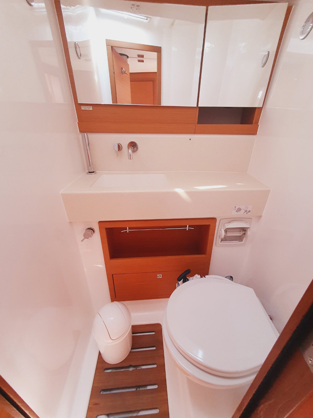 | Navigation | Barometer, Fernglas mit Peilkompass, GPS mit Kartenplotter im Cockpit, Hafenhandbücher, Navigationsbesteck, Seekarten, Tridata (Log, Echolot, Windm.) |