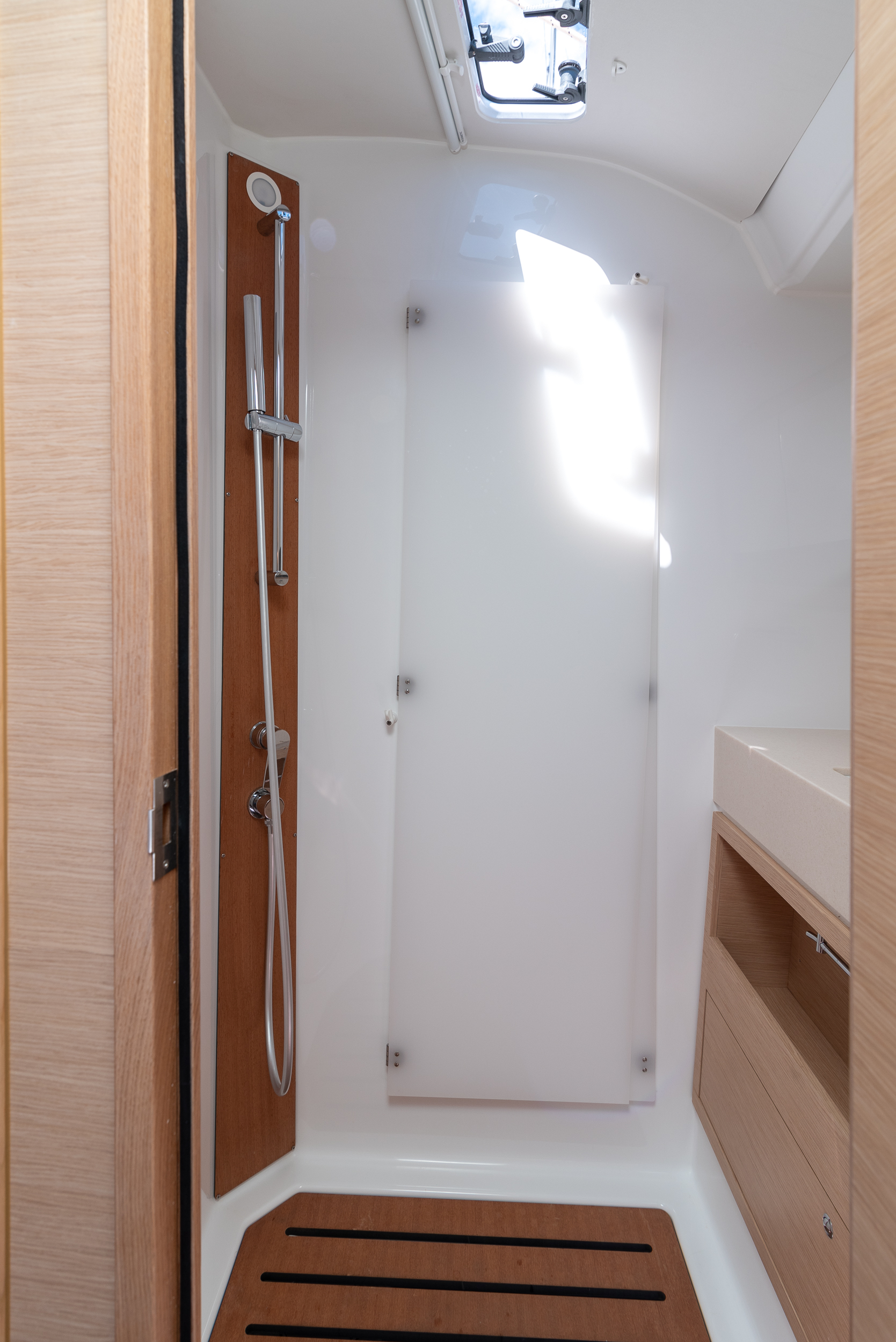 | Outside | 220 V-Landanschluss, Anker mit Kette, Badeleiter, Badeplattform, Biminitop, Bootshaken, Cockpitdusche warm/kalt, Cockpitlautsprecher, Cockpitleuchte, Cockpitpolster, Cockpittisch, Dieselkanister , elektr. Ankerwinsch, Fender, Grill, Sprayhood, Teak im Cockpit, Winschen |