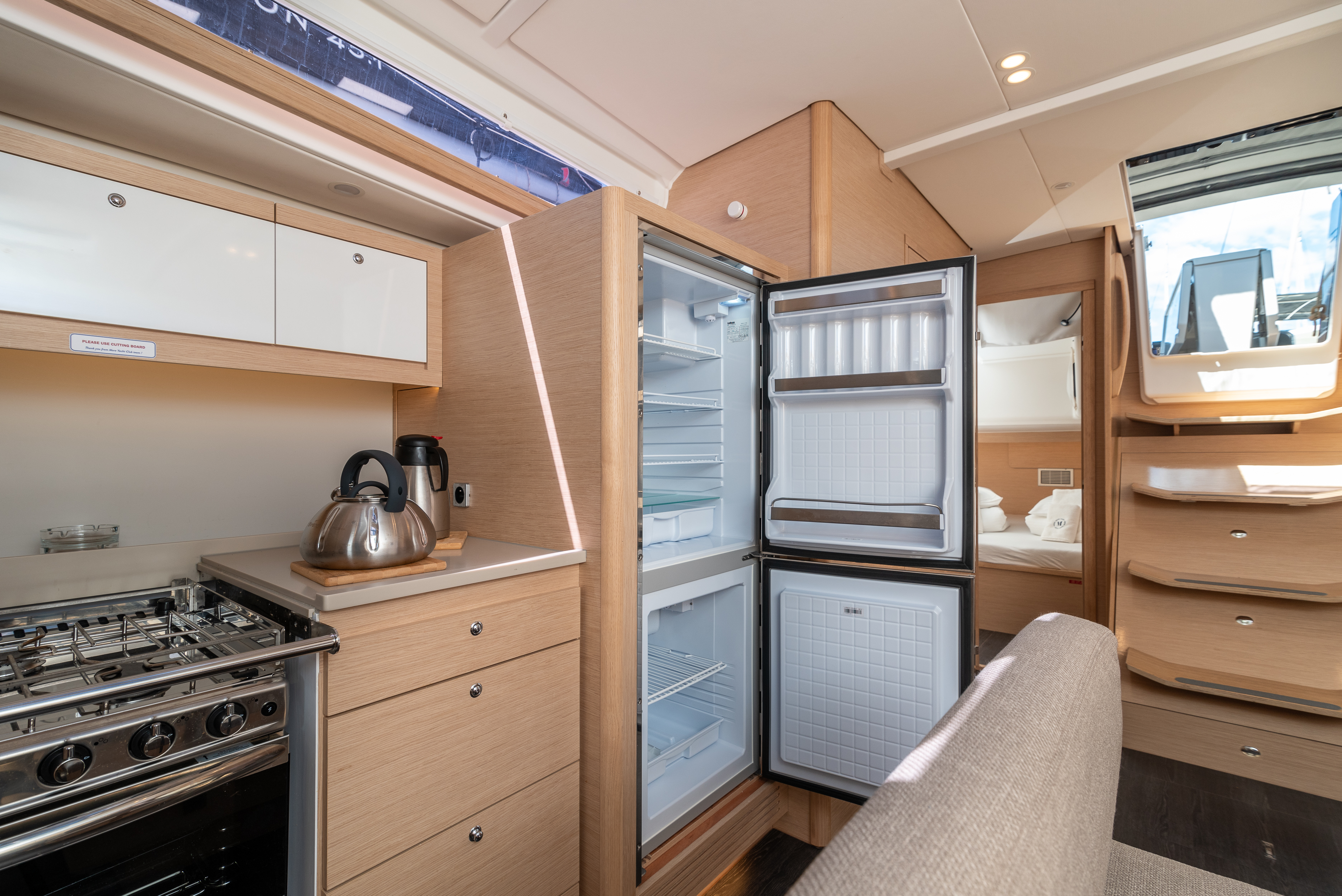 | Inside | 220V Steckdosen, Backofen, Fäkalientank, Gasherd, Generator, Heizung, Inverter 12V/220V, Klimaanlage (ohne Landstrombedarf), Kühlschrank, Ladegerät, Lautsprecher im Salon, LED-Innenleuchten, Moskitonetze, Pantryausstattung, Radio, Salontisch absenkbar, Warmwasser, WC (elektr.) |
