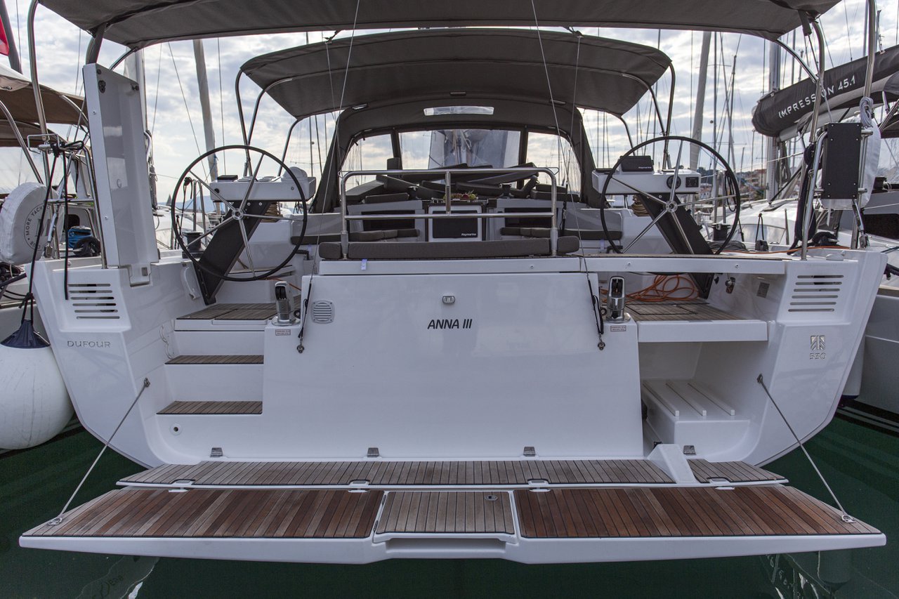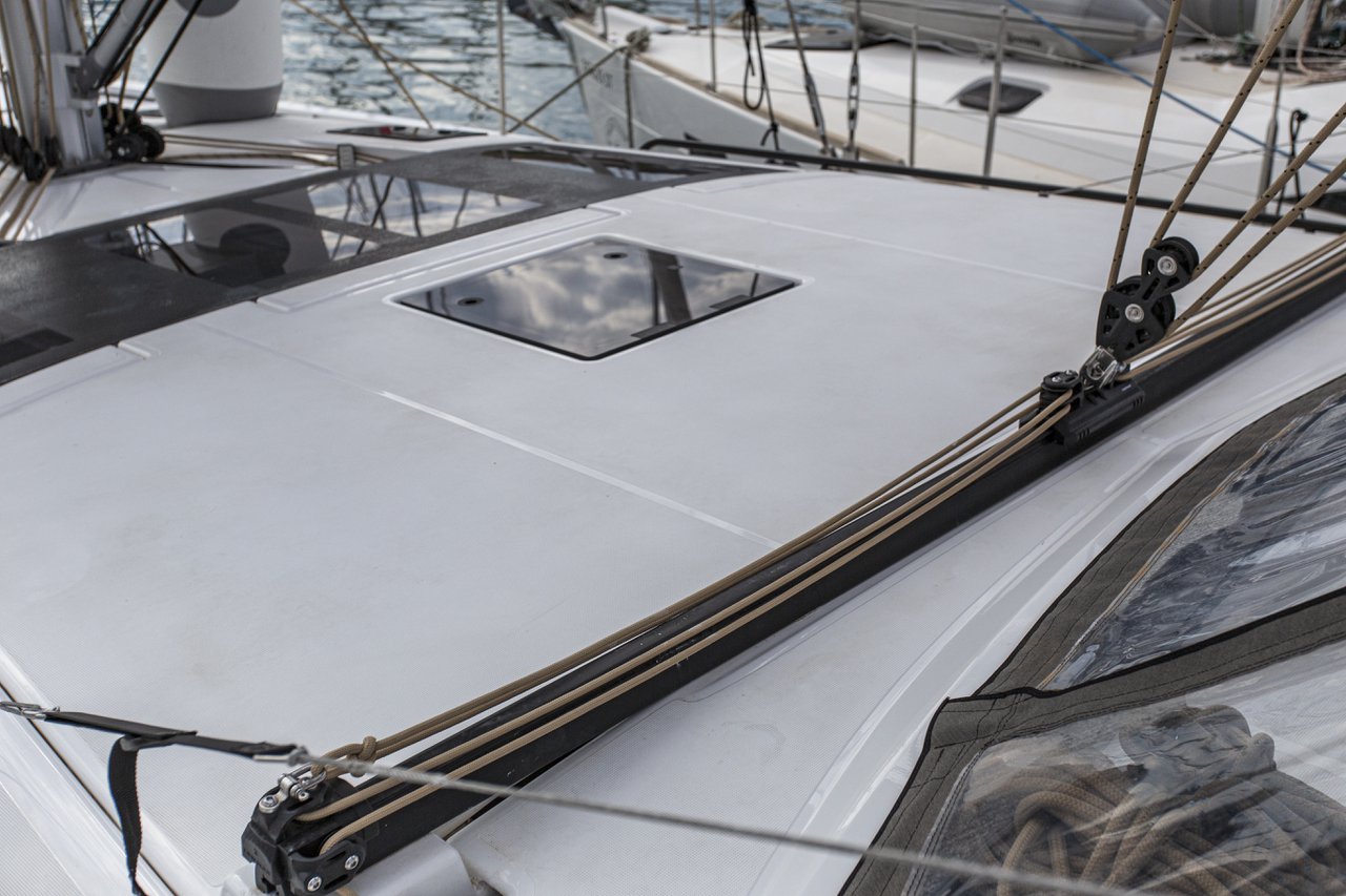 | Outside | 220 V-Landanschluss, Anker mit Kette, Badeleiter, Badeplattform, Biminitop, Bootshaken, Cockpitdusche, Cockpitkühlschrank, Cockpitlautsprecher, Cockpitleuchte, Cockpitpolster, Cockpittisch, Dieselkanister , elektr. Ankerwinsch, elektr. Winsch, Faltpropeller, Fender, Grill, Sprayhood, Teak im Cockpit |
