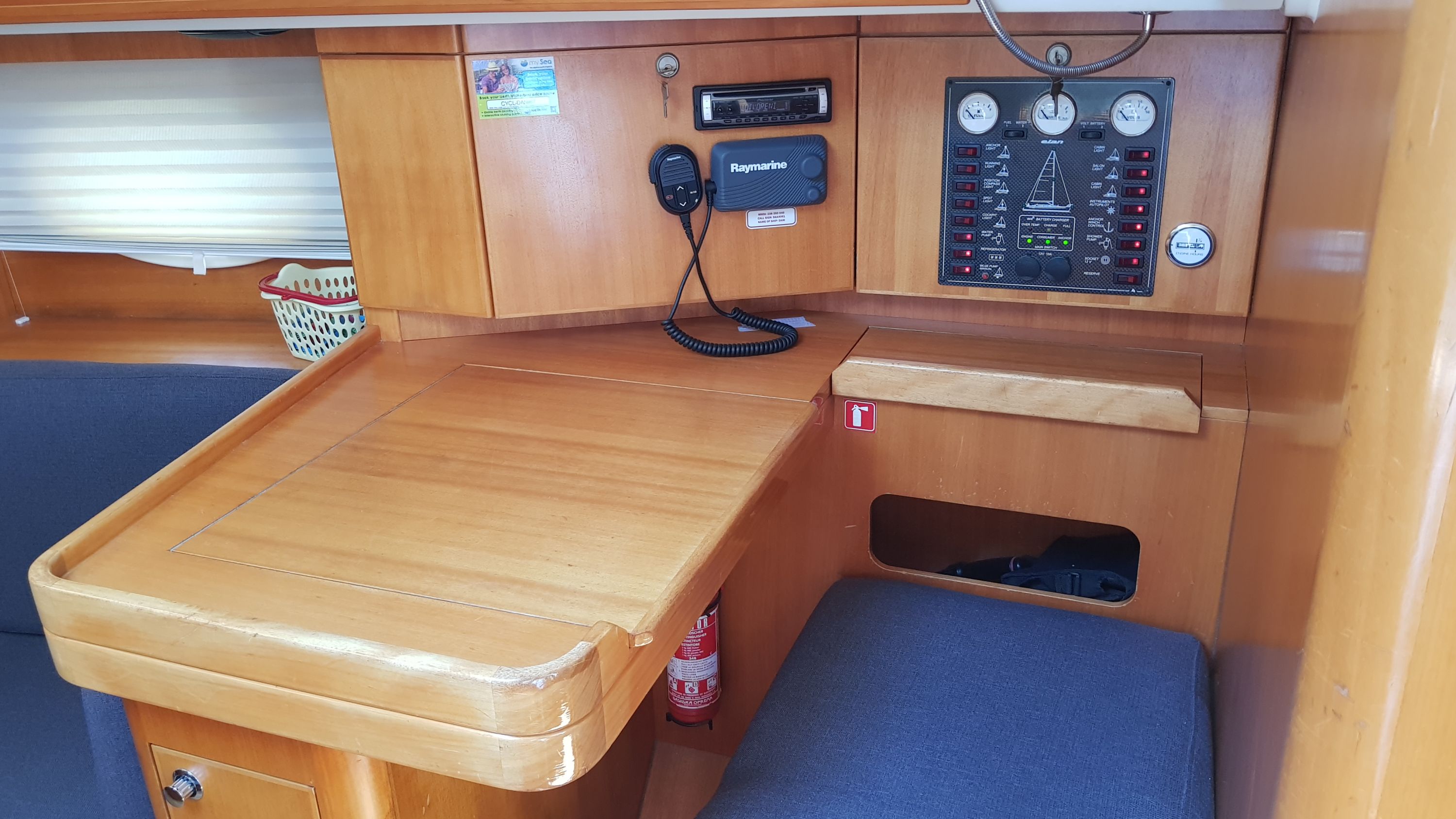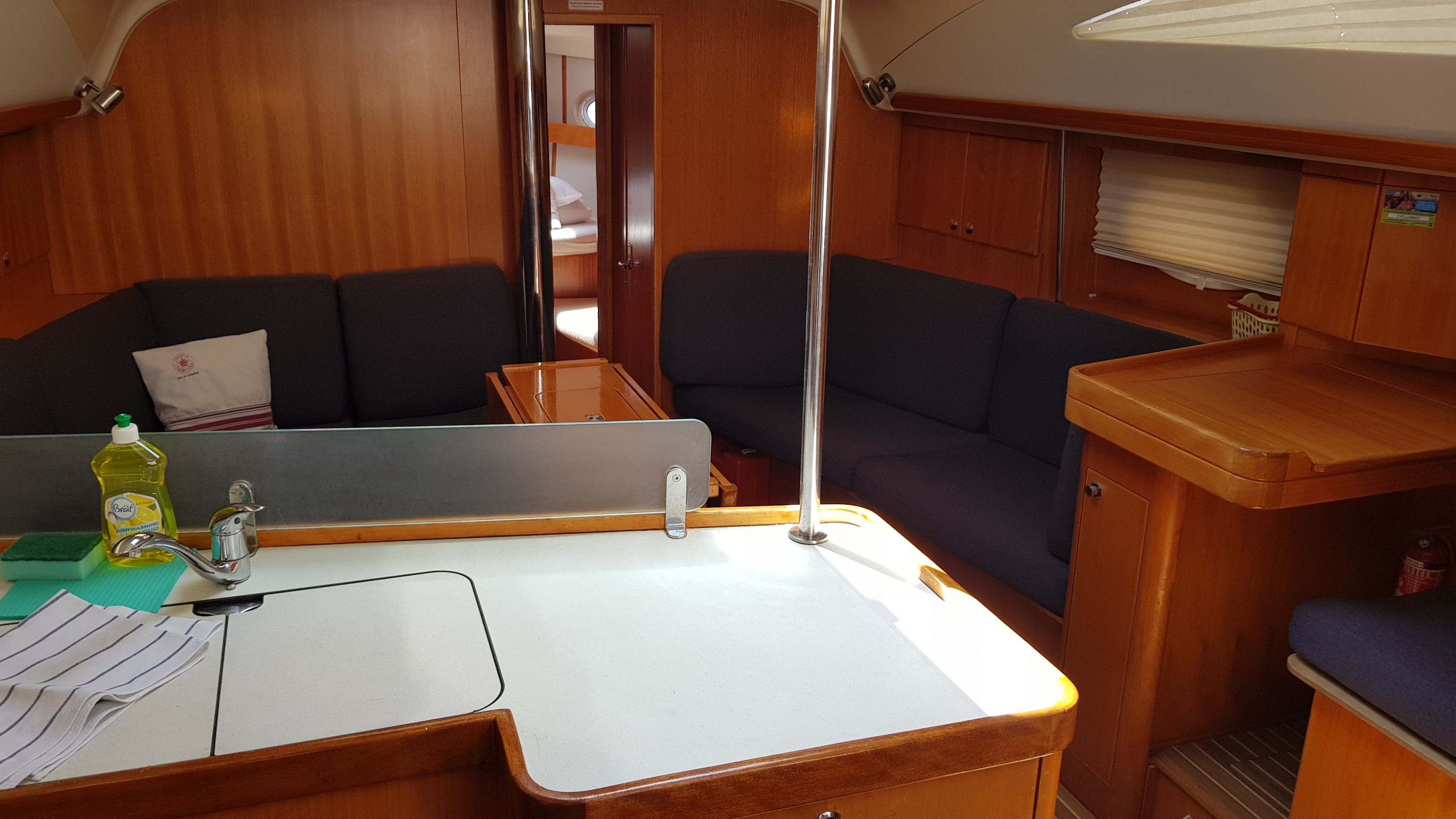| Outside | 12 V-Anschluss, 220 V-Landanschluss, Biminitop, Cockpitdusche, Cockpittisch, elektr. Ankerwinsch, Selbstholende Winschen |