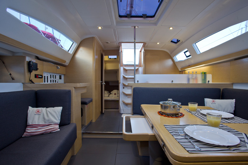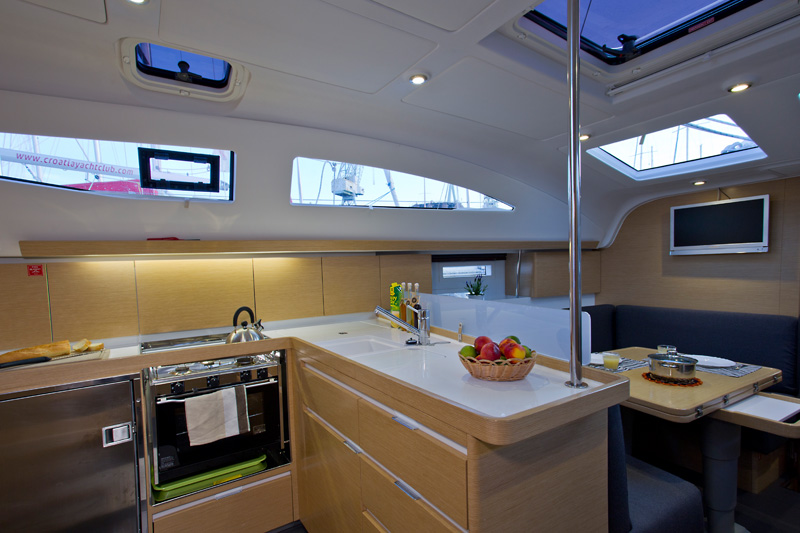 | Outside | Badeplattform, Biminitop, Cockpitdusche, Cockpittisch, elektr. Ankerwinsch, Selbstholende Winschen, Sprayhood |