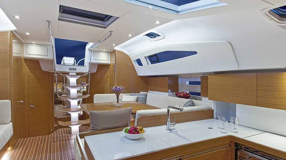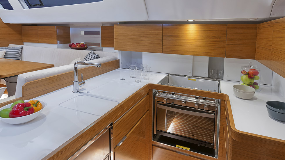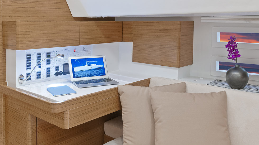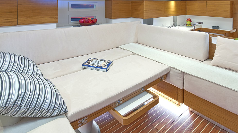 | Outside | Badeplattform, Biminitop, Cockpitpolster, elektr. Ankerwinsch, Sprayhood, Teak im Cockpit |