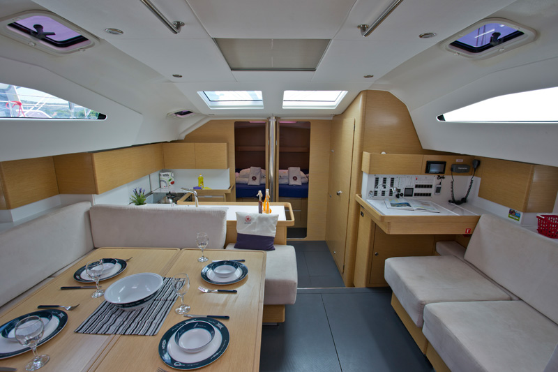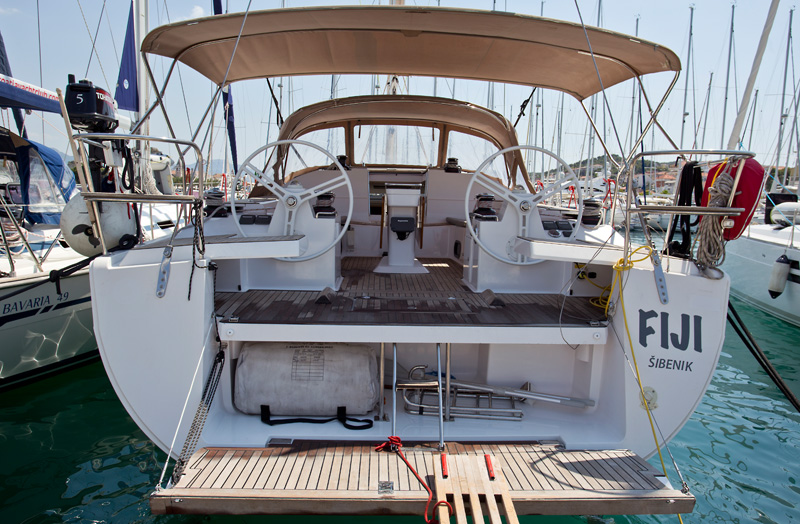 | Outside | 12 V-Anschluss, 220 V-Landanschluss, Badeplattform, Biminitop, Cockpitdusche, Cockpittisch, elektr. Ankerwinsch, Selbstholende Winschen, Sprayhood |