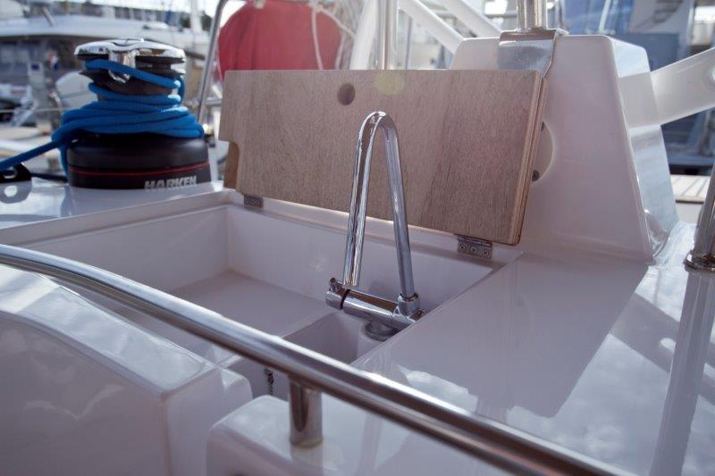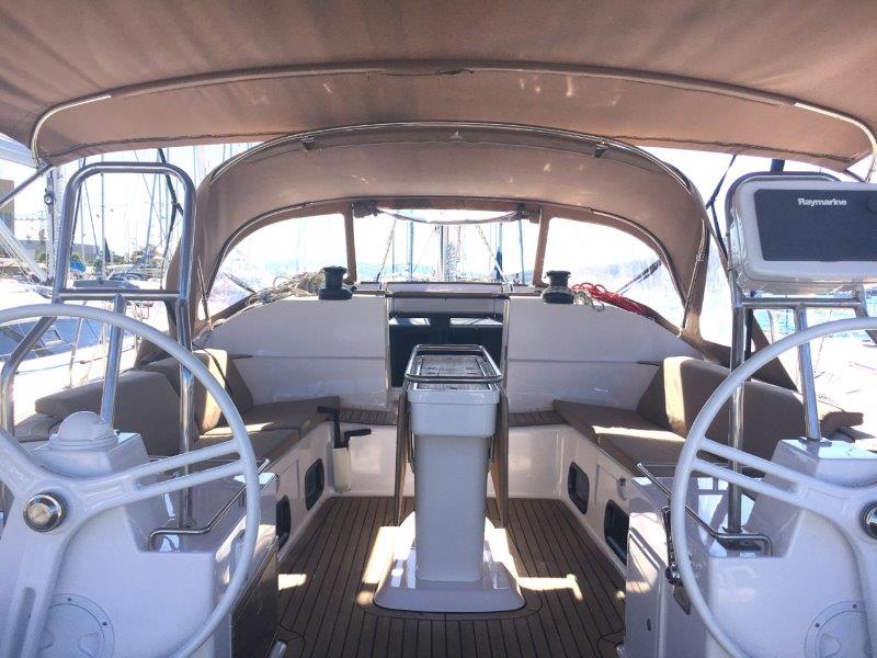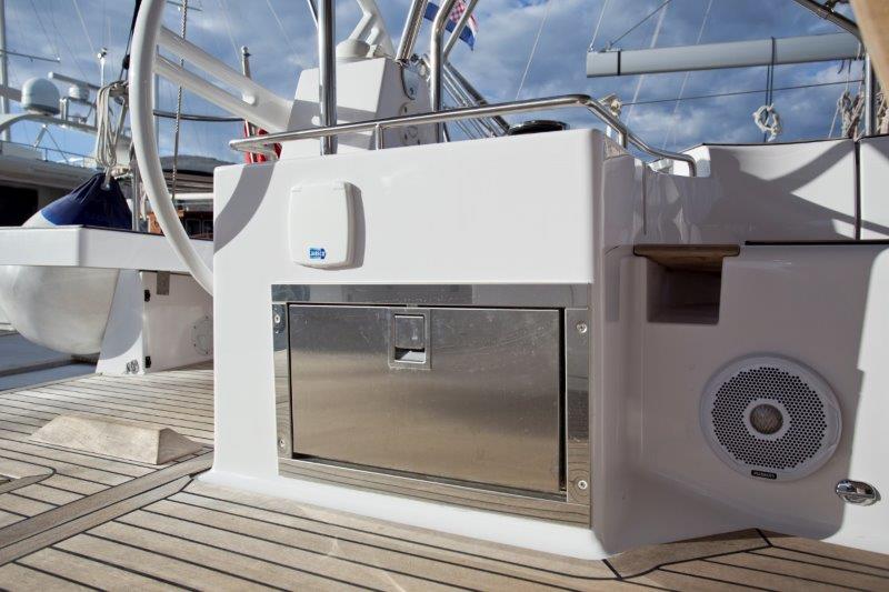 | Outside | 220 V-Landanschluss, Anker mit Kette, Badeleiter, Badeplattform, Biminitop, Bootshaken, Cockpitdusche, Cockpitkühlschrank, Cockpitlautsprecher, Cockpitleuchte, Cockpitpolster, Cockpittisch, Deckpolster, Dieselkanister , elektr. Ankerwinsch, elektr. Genuawinsch, Fender, Sprayhood, Teak im Cockpit |