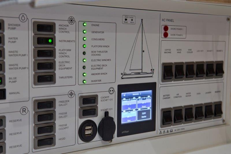 | Safety | Autopilot, Bilgepumpe, Bordapotheke, Bugstrahlruder, elektr. Bilgepumpe, Feststoffschwimmwesten, Handbilgepumpe, Lifebelts, Notsignale, Rettungsinsel, Sicherheitsgurt, UKW-Funk |