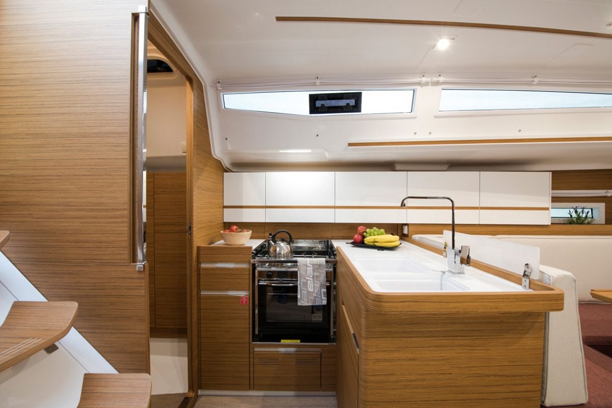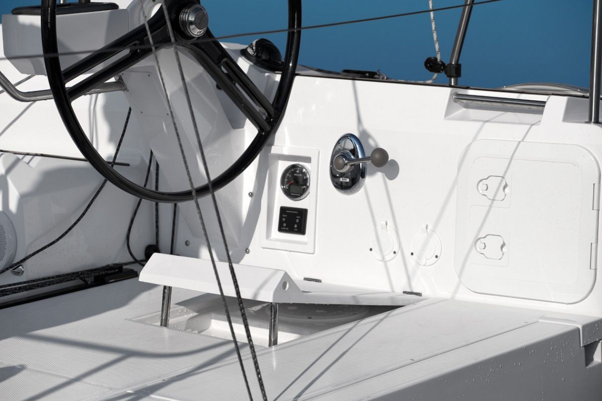 | Outside | 220 V-Landanschluss, Badeleiter, Badeplattform, Biminitop, Cockpitdusche, Cockpitlautsprecher, Cockpitpolster, Cockpittisch, elektr. Ankerwinsch, Sprayhood, Teak im Cockpit |