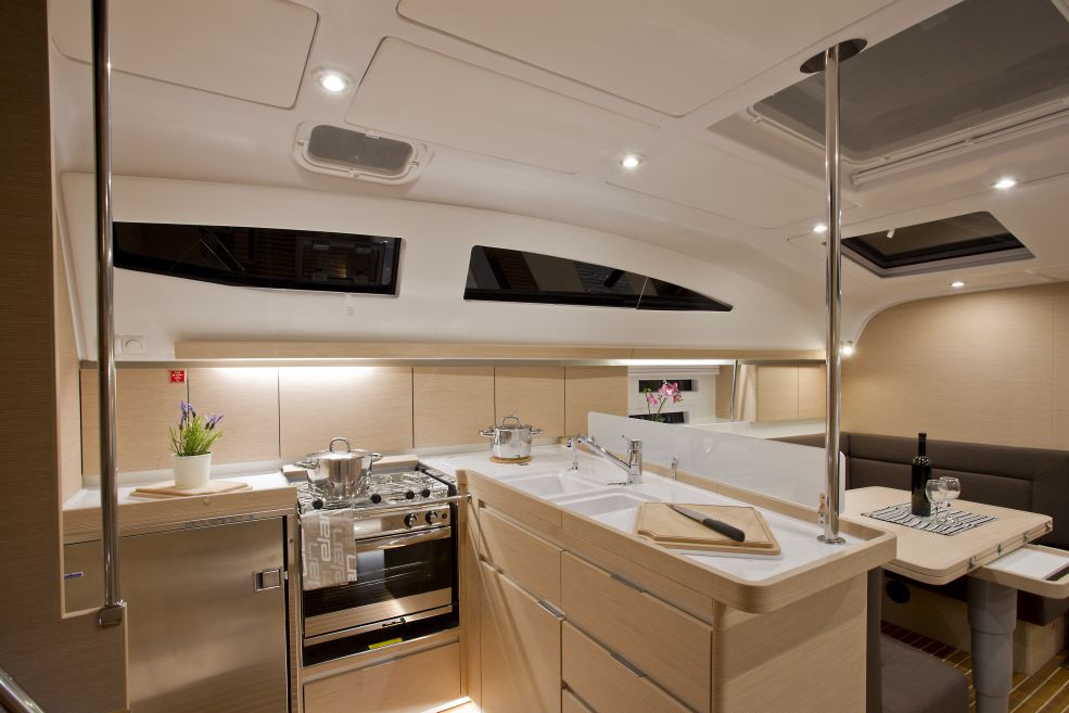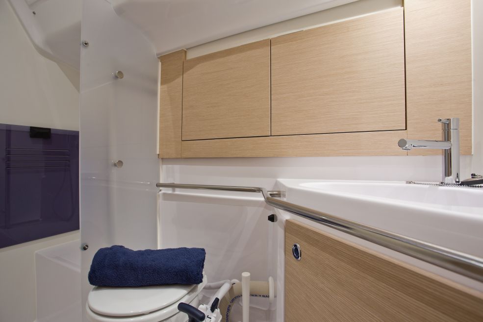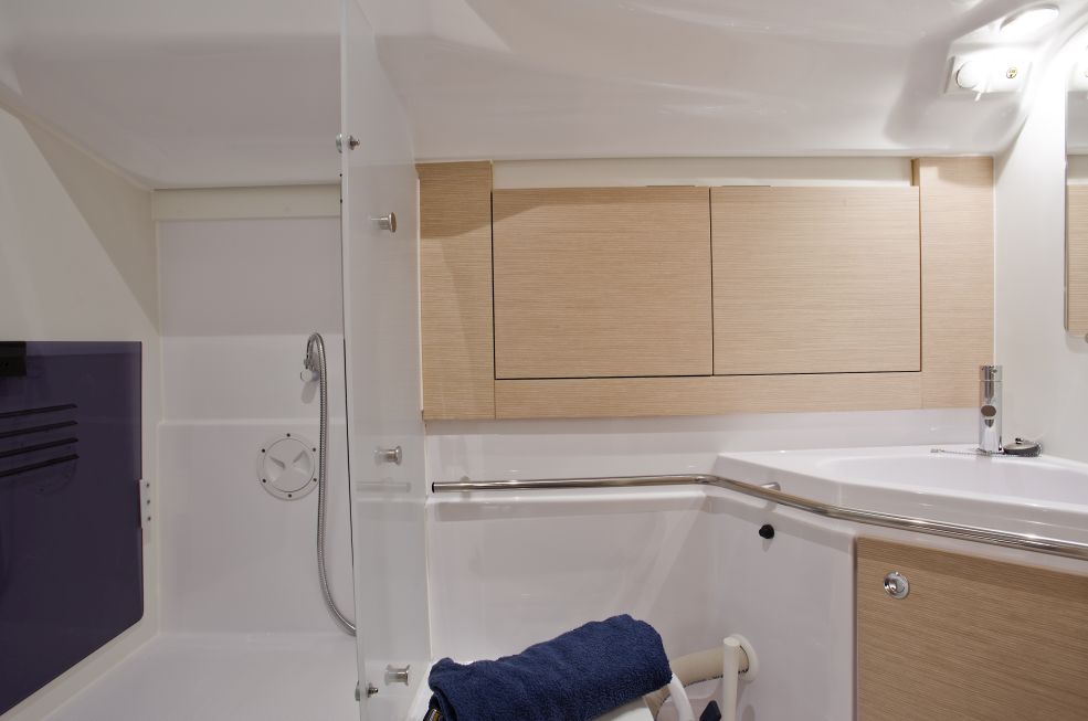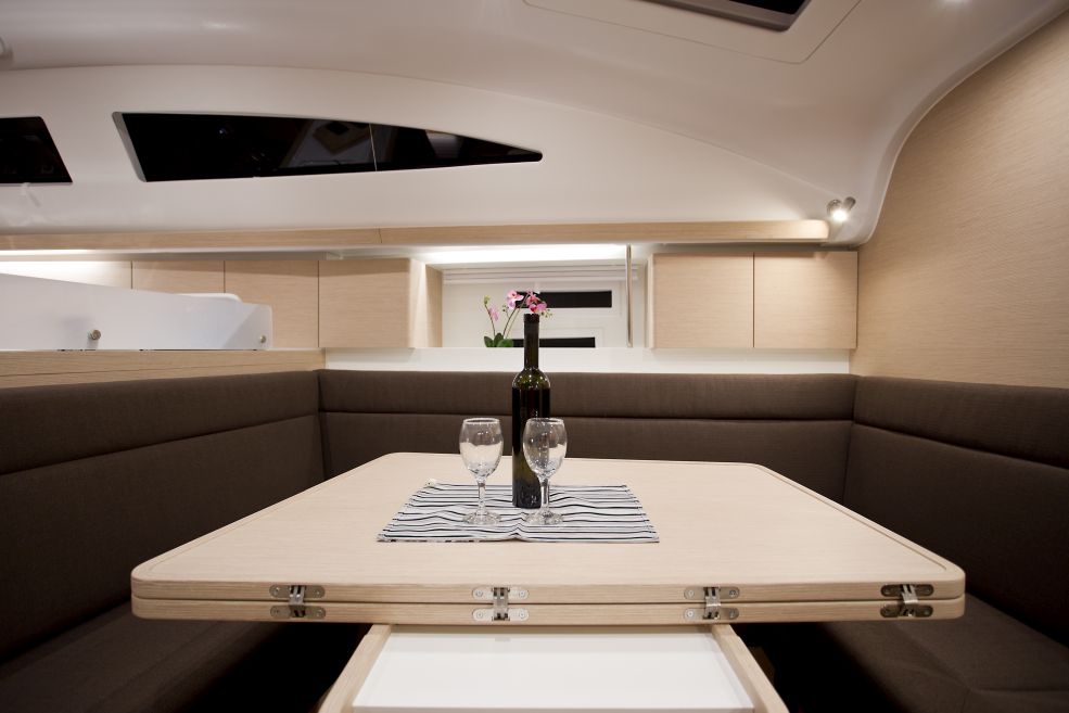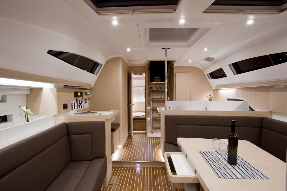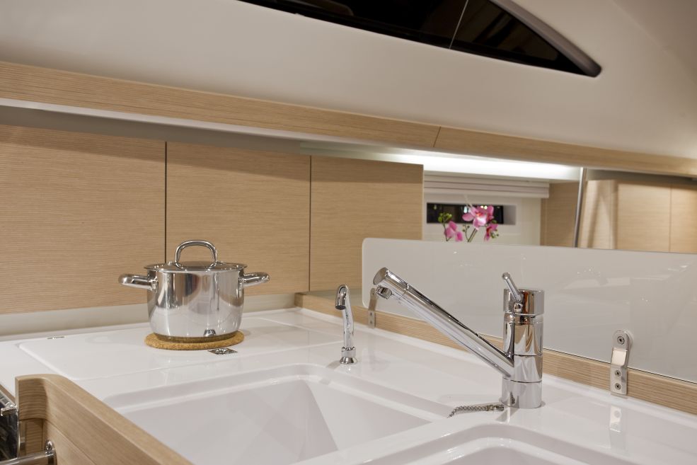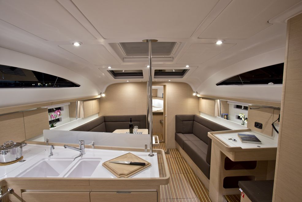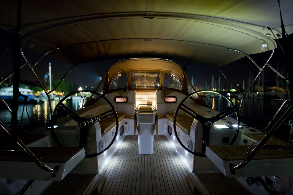 | Outside | Badeplattform, Biminitop, Cockpitpolster, elektr. Ankerwinsch, Sprayhood, Teak im Cockpit |