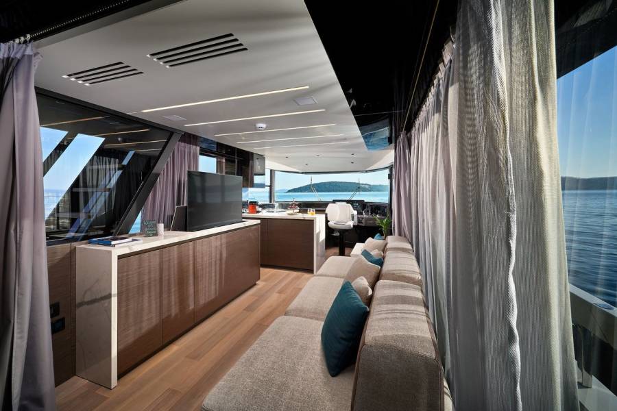 | Safety | Autopilot, Bugstrahlruder, elektr. Bilgepumpe, Handbilgepumpe, Rettungsinsel, Rückfahrkamera, UKW-Funk |