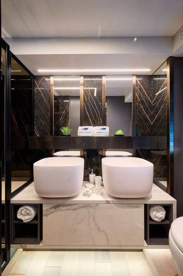 | Inside | Backofen, CD-Player, DVD-Player, Eiswürfelmaschine, Fäkalientank, Gasherd, Gefrierschrank, Generator, Heizung, Inverter 12V/220V, Klimaanlage (ohne Landstrombedarf), Kühlschrank, Ladegerät, Lautsprecher im Salon, Mikrowelle, Radio, Trockner, TV, Warmwasser, Waschmaschine, Wasserkocher, Watermaker, WC (elektr.), Weinkühlschrank |