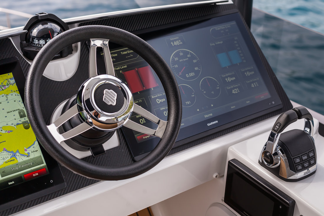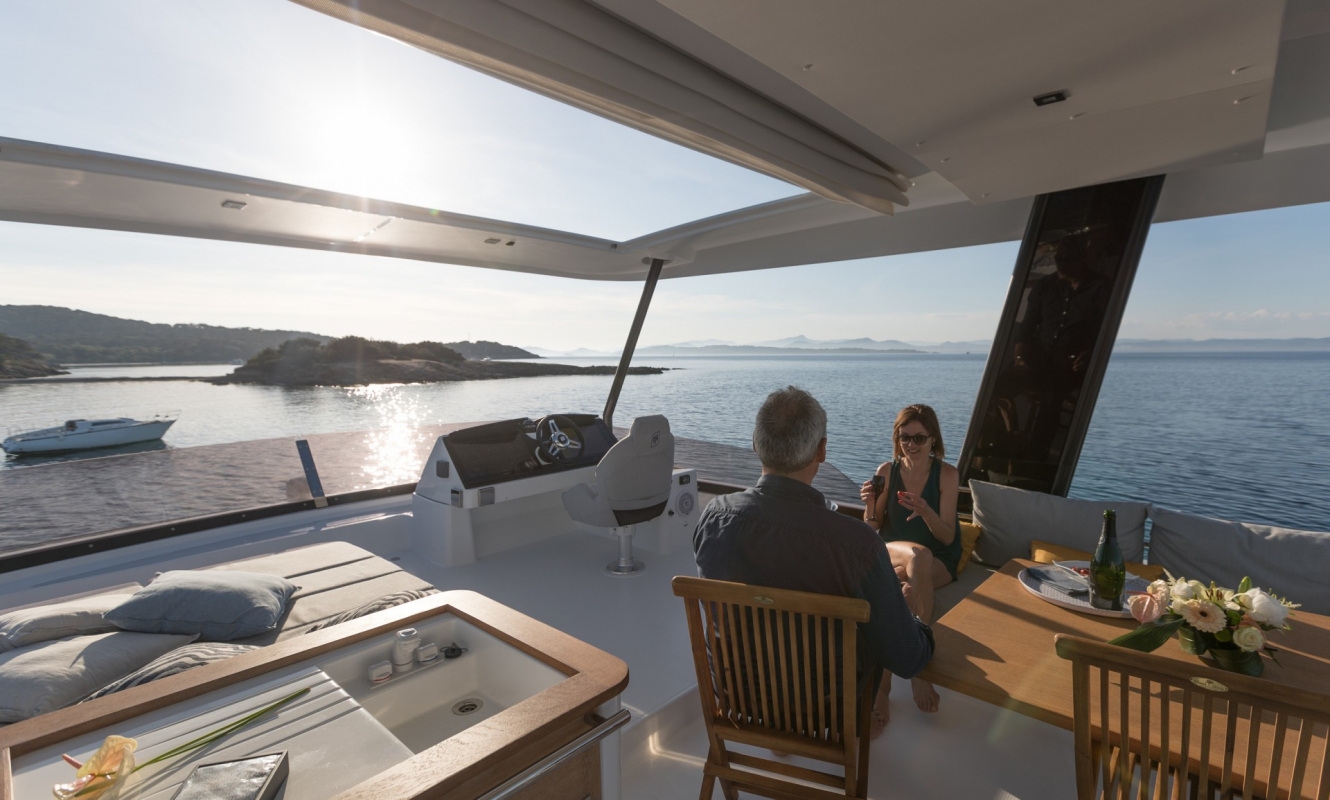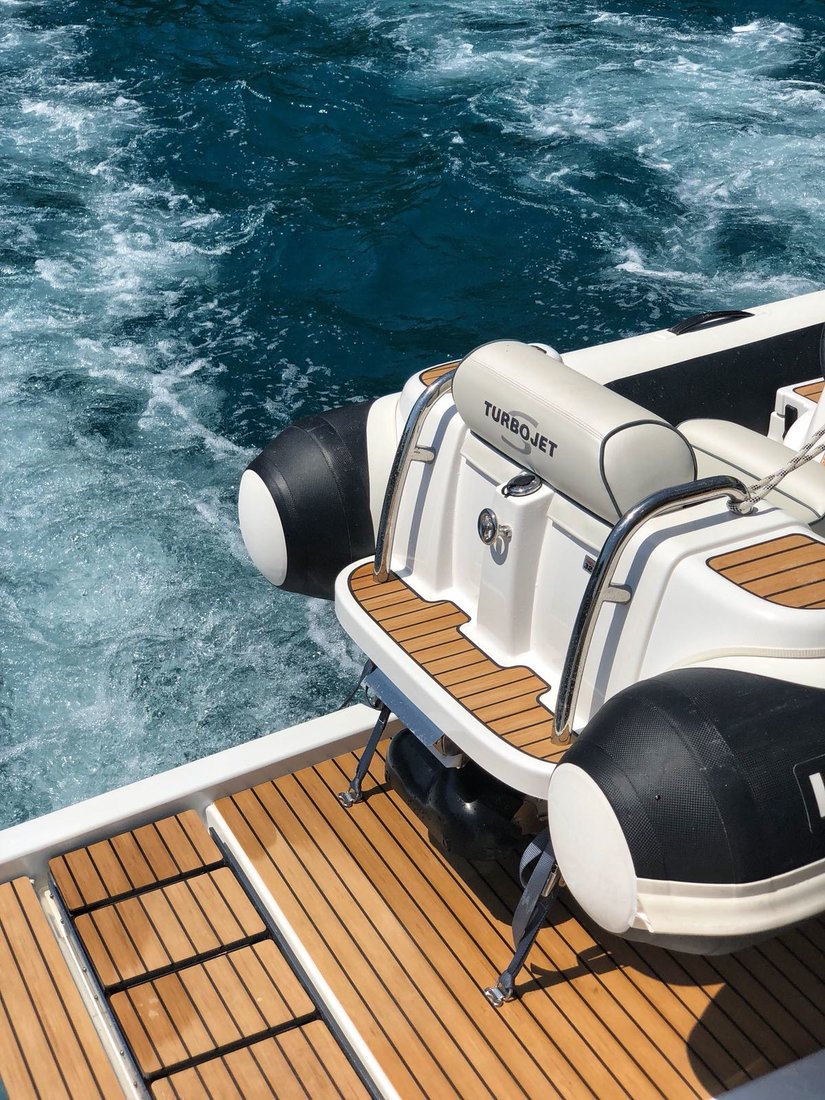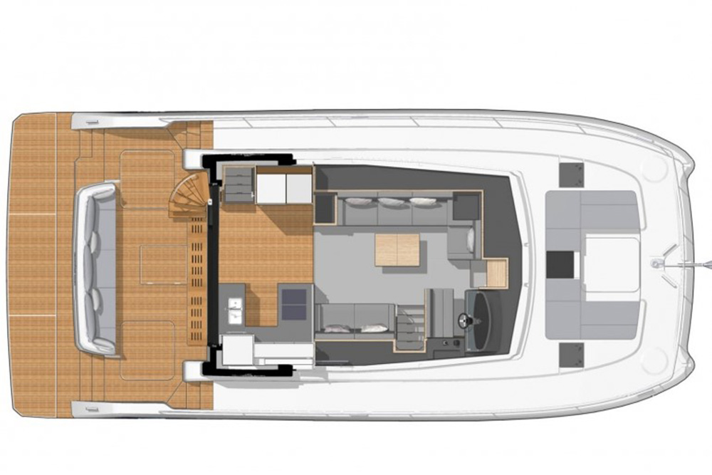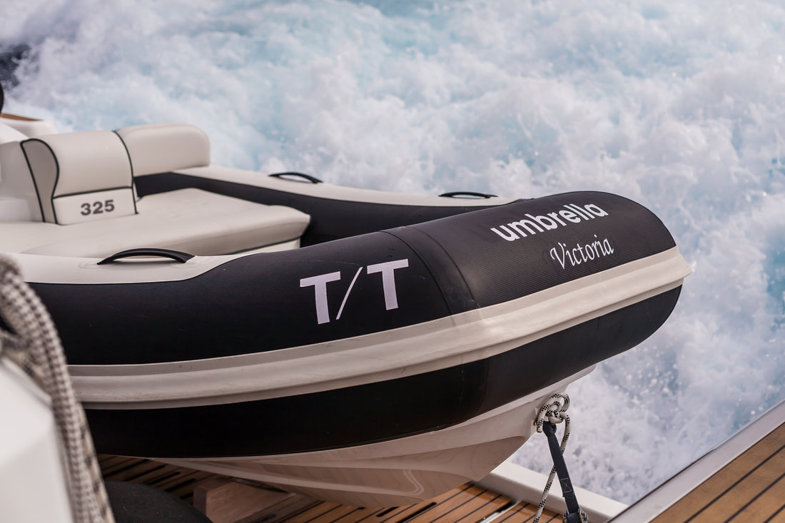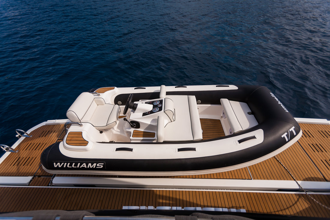 | Outside | 220 V-Landanschluss, Abnehmbarer Cockpittisch, Badeleiter, Badeplattform (hydr.), Bootshaken, Cockpitdusche, Cockpitlautsprecher, Cockpitpolster, Deckbürste, Deckpolster, Delta-Anker, elektr. Ankerwinsch, Fender, Festmacherleinen, Grill, Hardtop, hydraul. Gangway, Kugelfender, Kühlschrank auf Flybridge, Solaranlage, Sonnendeck, Sonnensegel, Unterwasserbeleuchtung, Wasserschlauch |