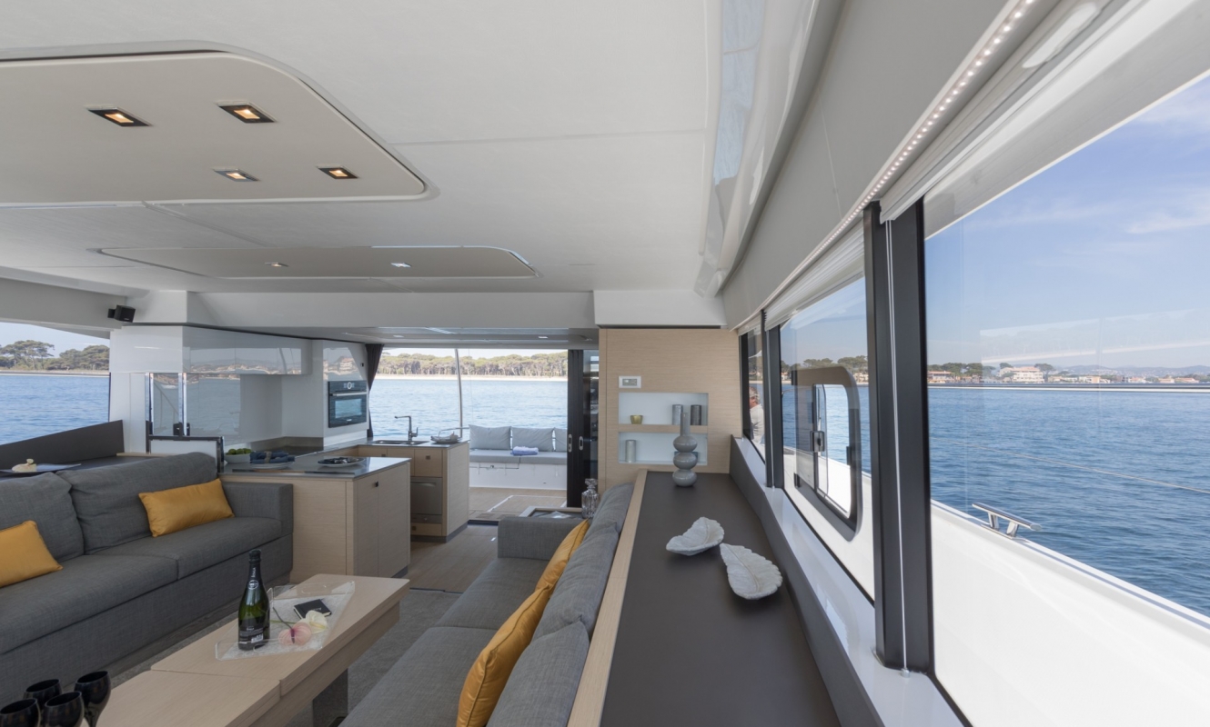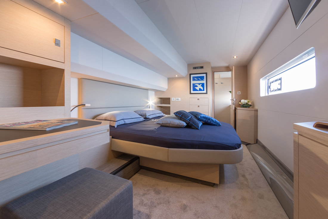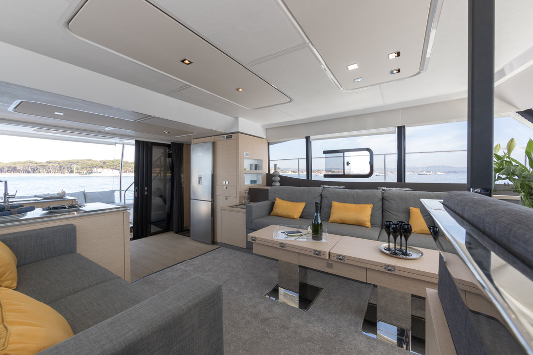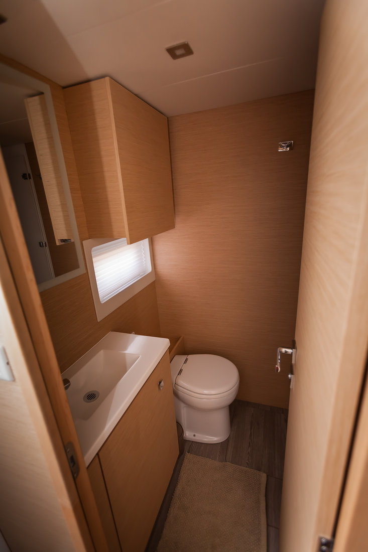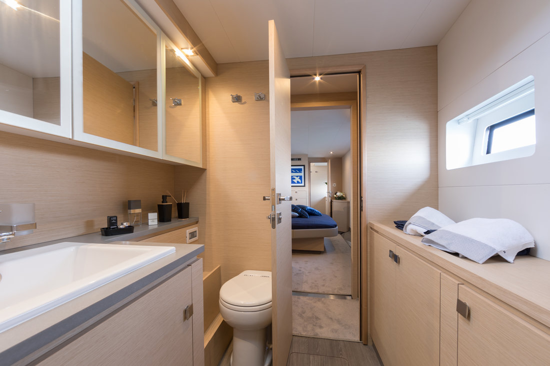 | Inside | Backofen, Besen und Kehrblech, Eiswürfelmaschine, Fäkalientank, Gasherd, Gefrierschrank, Generator, Geschirrspüler, Heizung, Hi-Fi System, Induktionsherd, Inverter 12V/220V, Klimaanlage (ohne Landstrombedarf), Kühlschrank, Lautsprecher im Salon, Mikrowelle, Moskitonetze, Pantryausstattung, Satelliten-TV, Spülbecken, TV, Warmwasser, Waschmaschine, Wasserkocher, Watermaker, WC (elektr.), Weinkühlschrank |