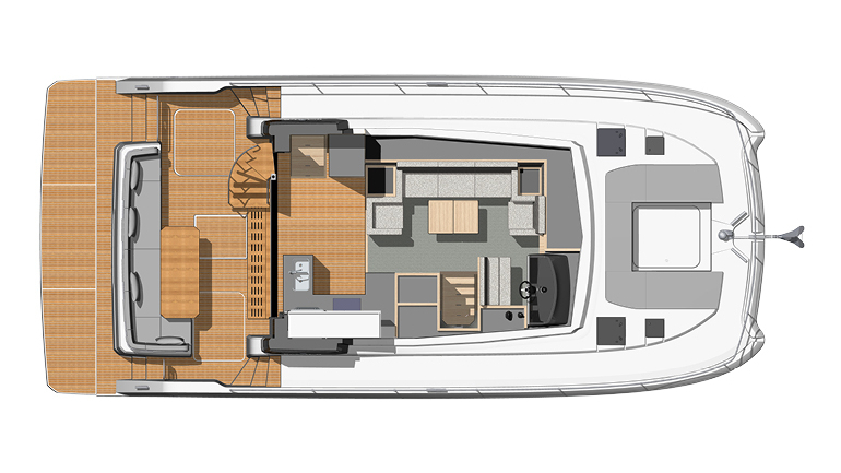 | Outside | Anker mit Kette, Badeplattform (hydr.), Biminitop, Cockpitdusche, Cockpitkühlschrank, elektr. Ankerwinsch, Grill |
