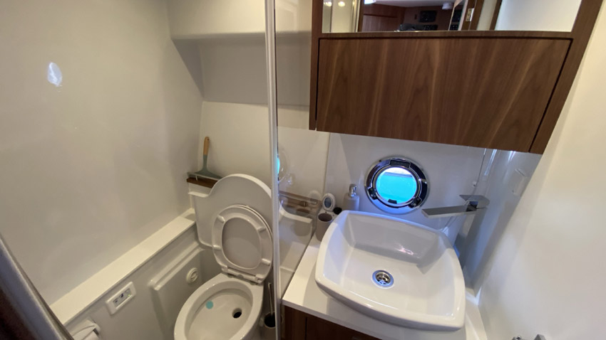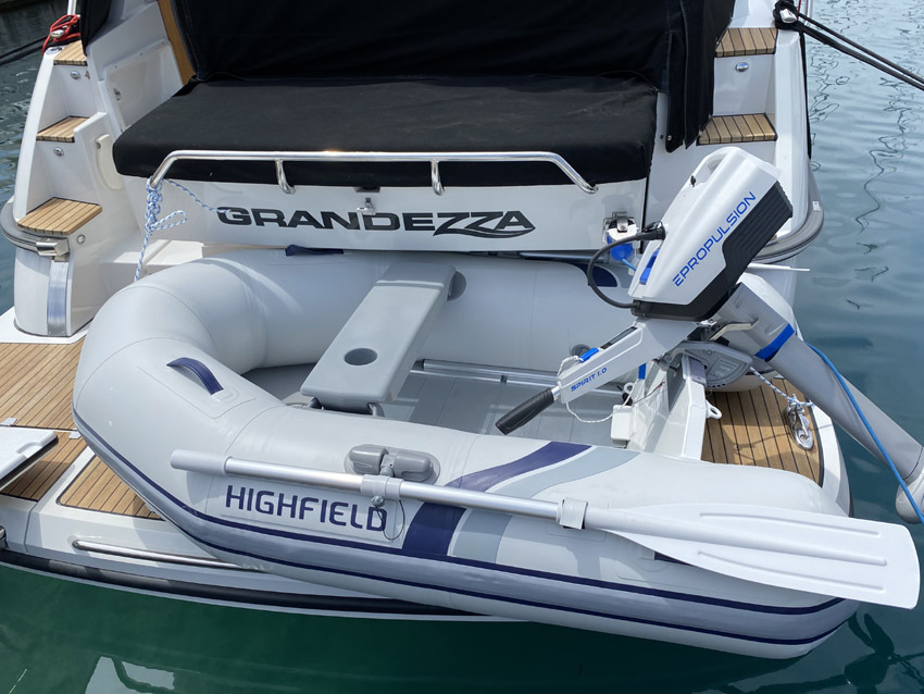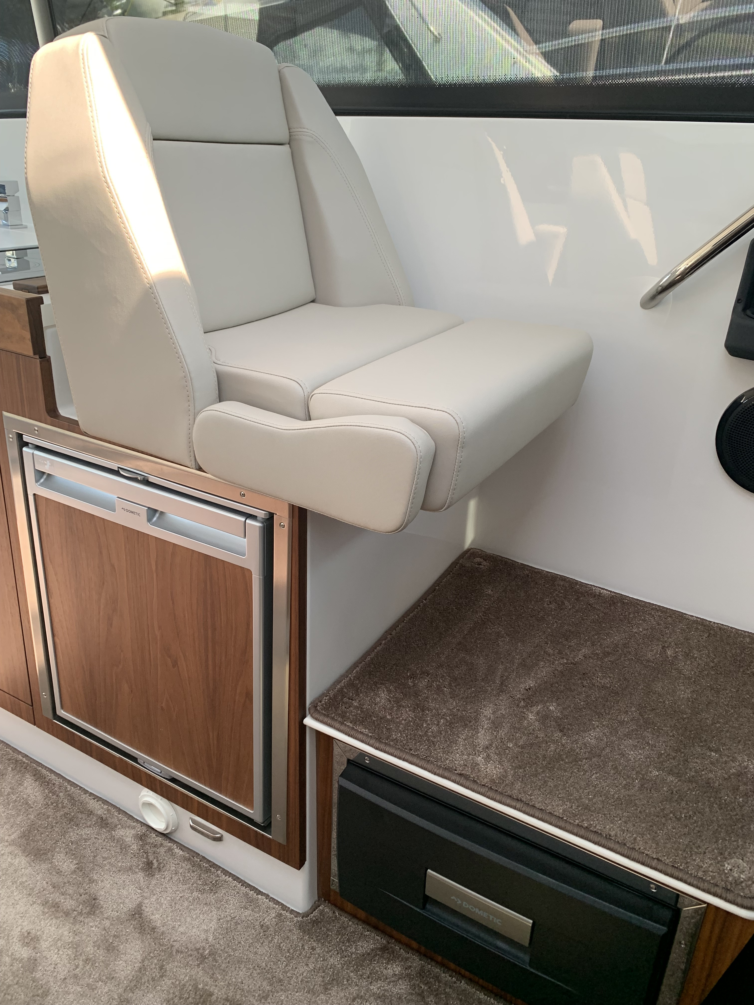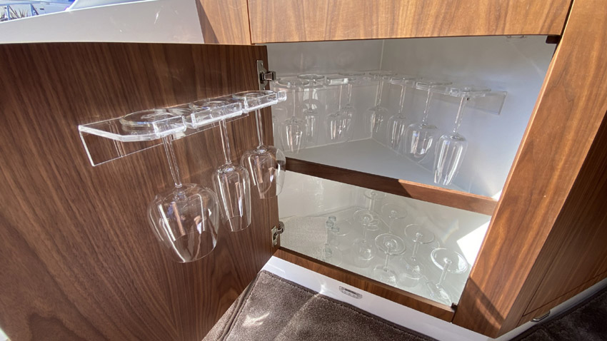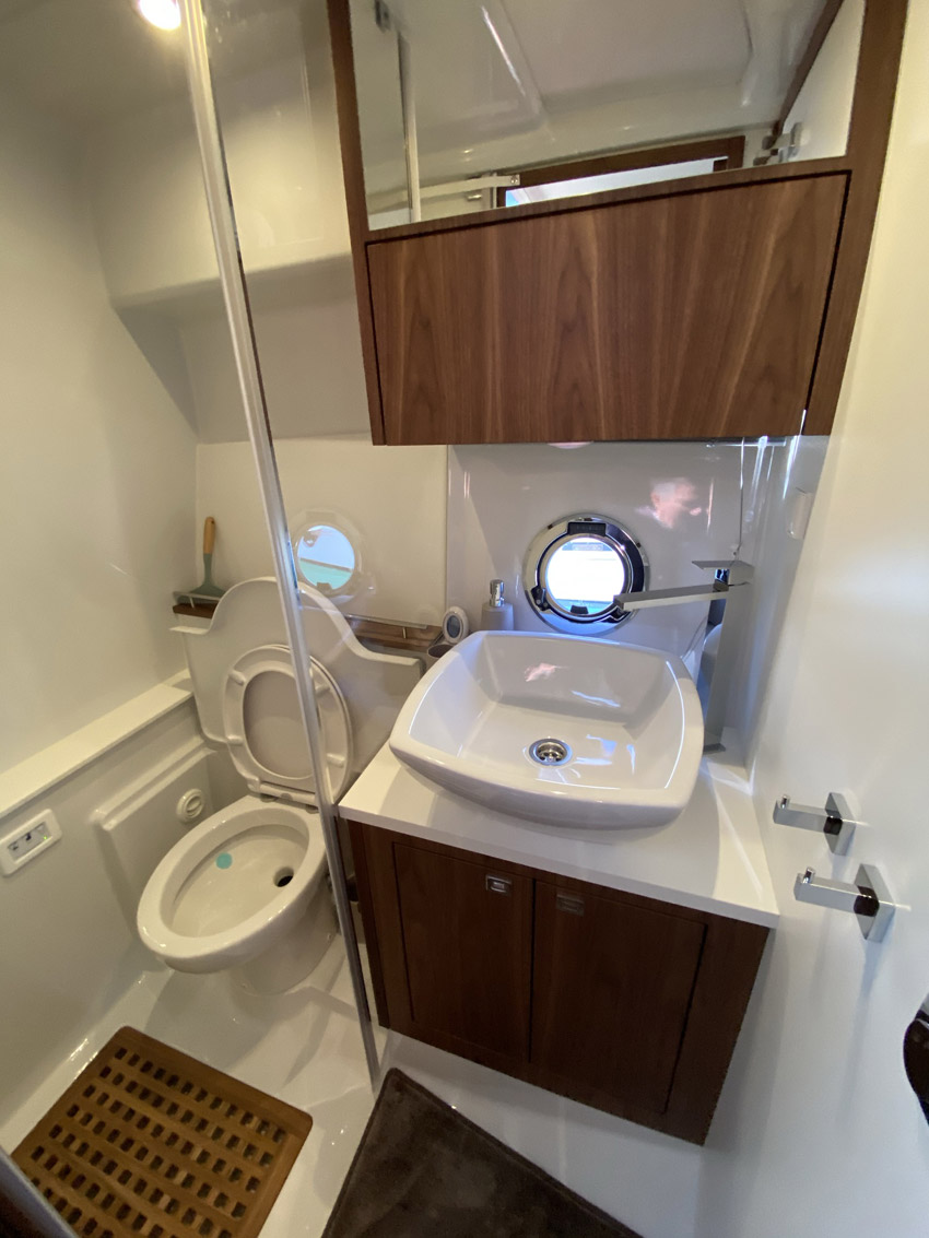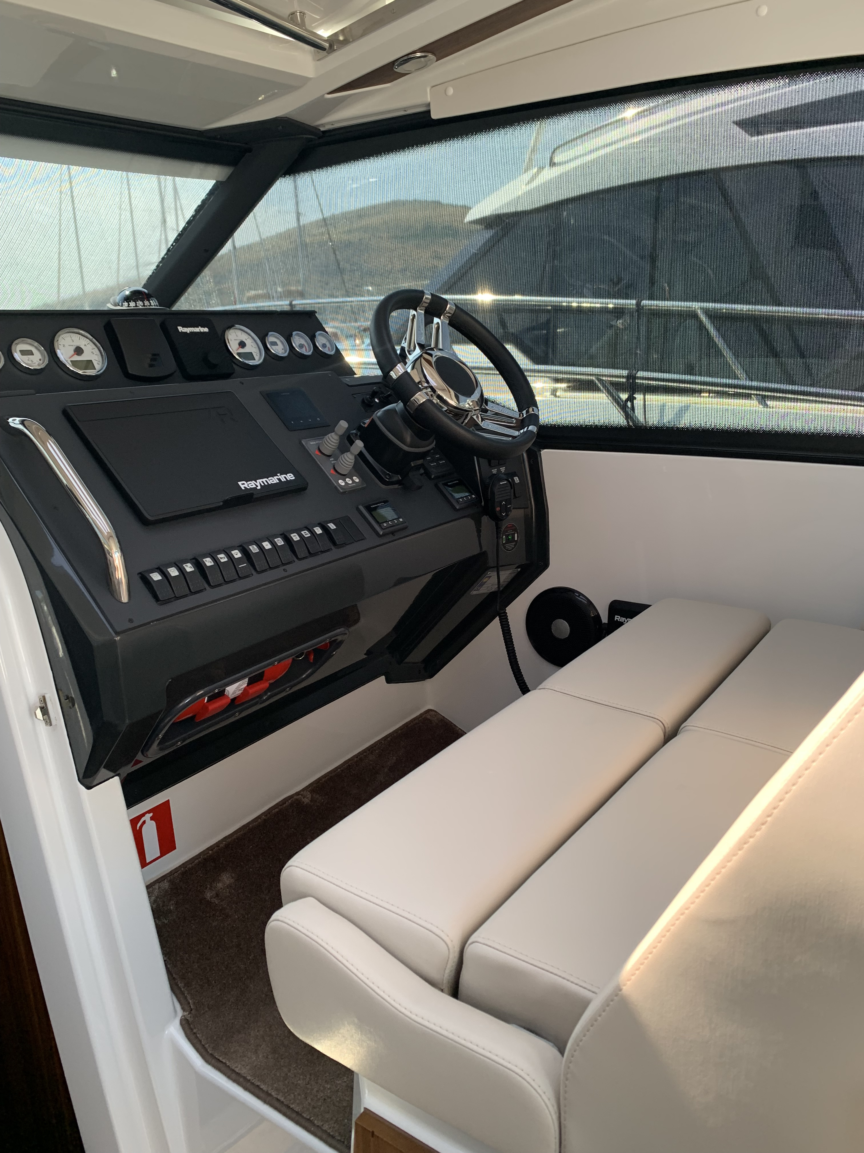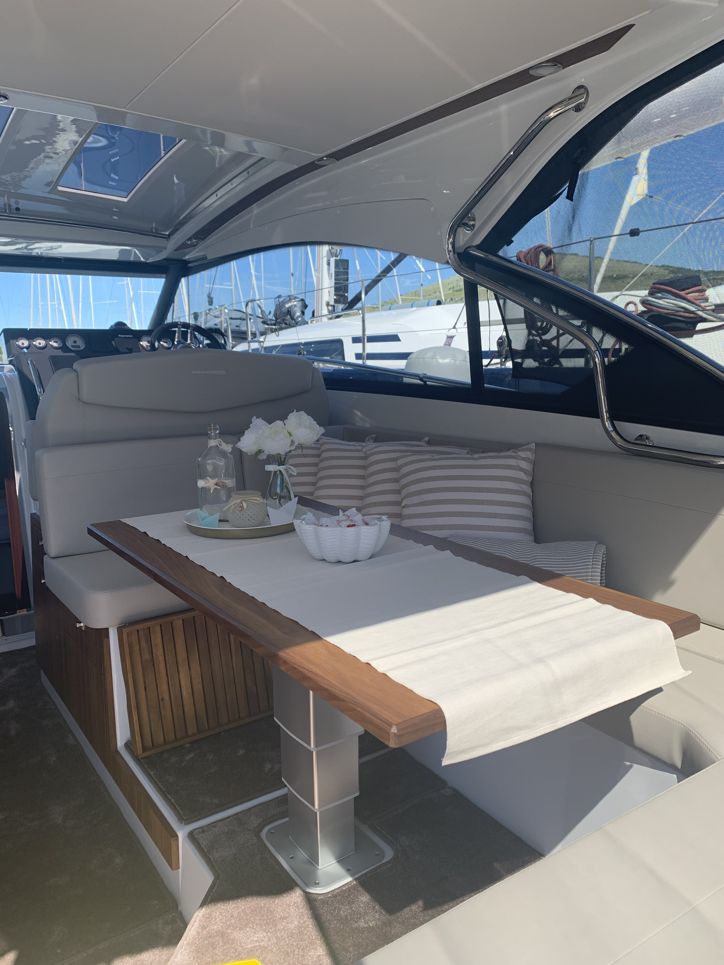| Outside | 220 V-Landanschluss, Badeleiter, Badeplattform, Cockpitdusche warm/kalt, Cockpitlautsprecher, Cockpitpolster, Cockpittisch, elektr. Ankerwinsch, Fender, Festmacherleinen, Gangway, Hardtop, Heckdusche, Seereling, Solaranlage, Sprayhood, Wet Bar |