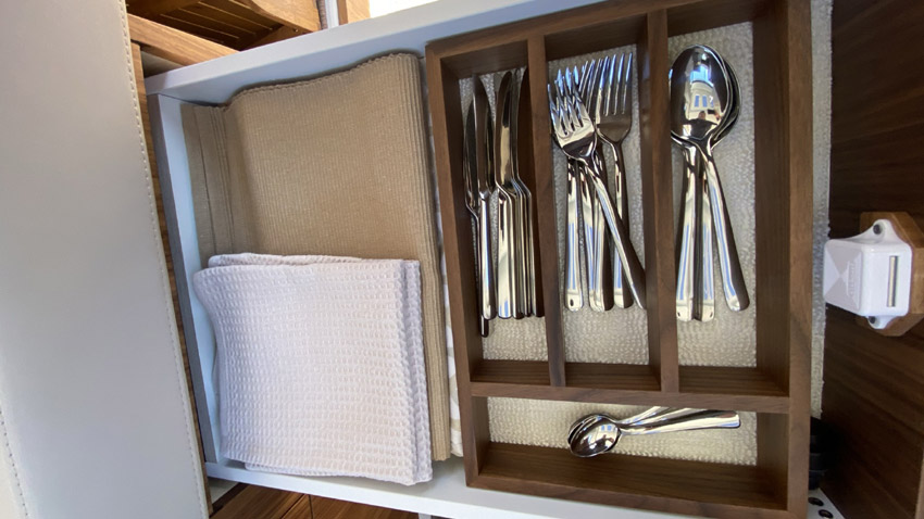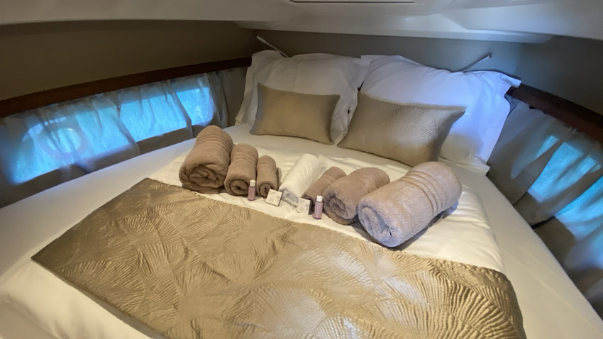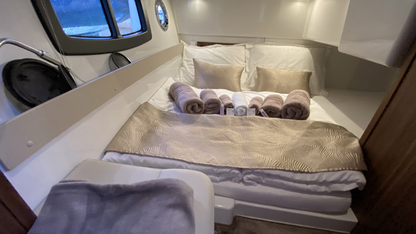 | Safety | Bordapotheke, Bugstrahlruder, elektr. Bilgepumpe, Feststoffschwimmwesten, Feuerlöscher, Heckstrahlruder, Navigationslichter, Notsignale, Suchscheinwerfer, Taschenlampe, UKW-Funk, Zweitanker |