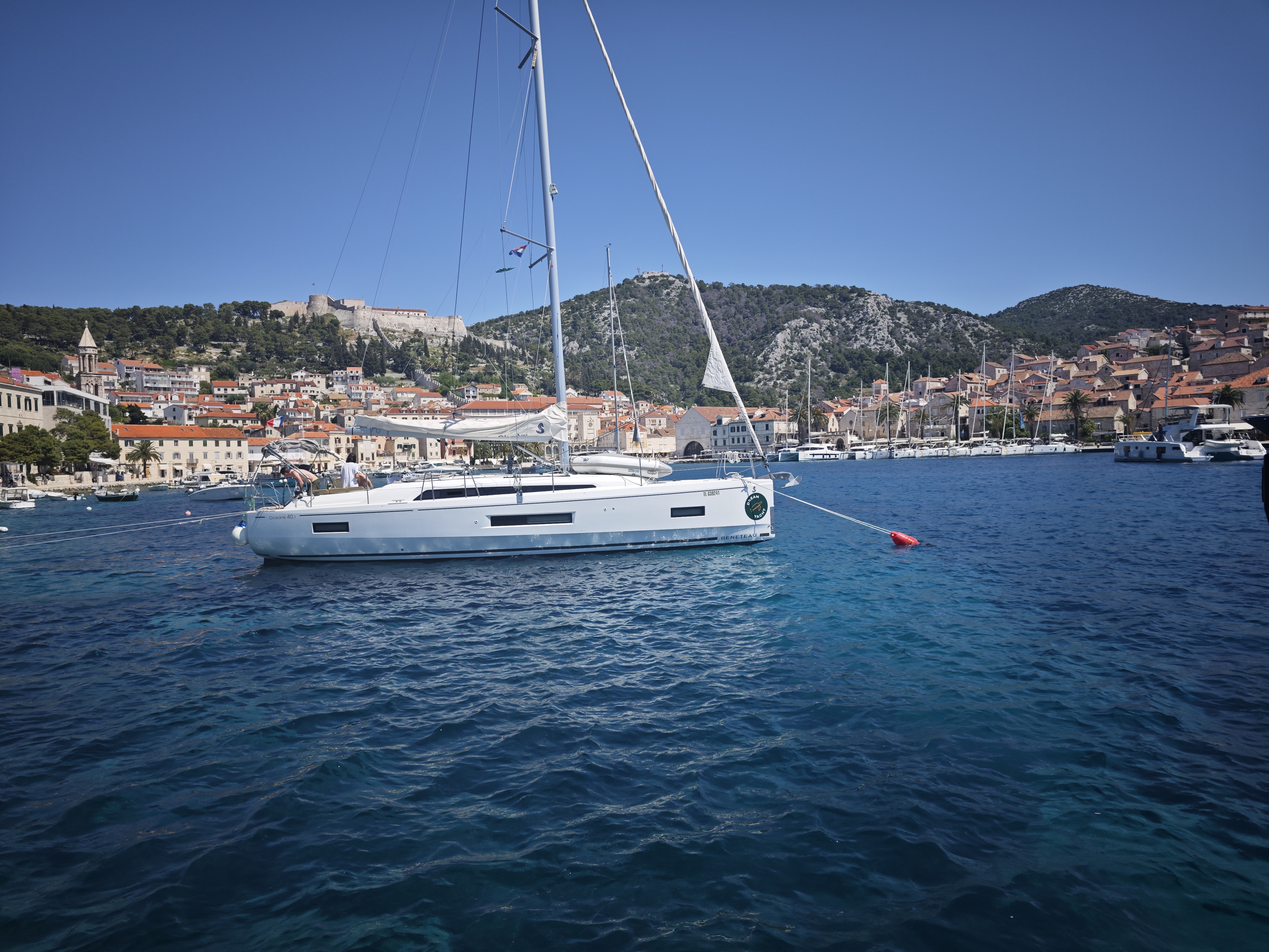 Im inneren der Yacht war ein paar Sachen optisch verschlissen, z.B. die WC Tür war rund um den Türgriff gebrochen, die Fensterschliesser sahen aus als wenn sie eine Salzkruste überzogen hätte. Der Außenborder war ein lauter 2Takter, dessen Benzinhahn schnell kaputt ging und damit nicht mehr genutzt werden konnte. Das trübte etwas das Bild einer ansonsten gut gewartete Yacht.