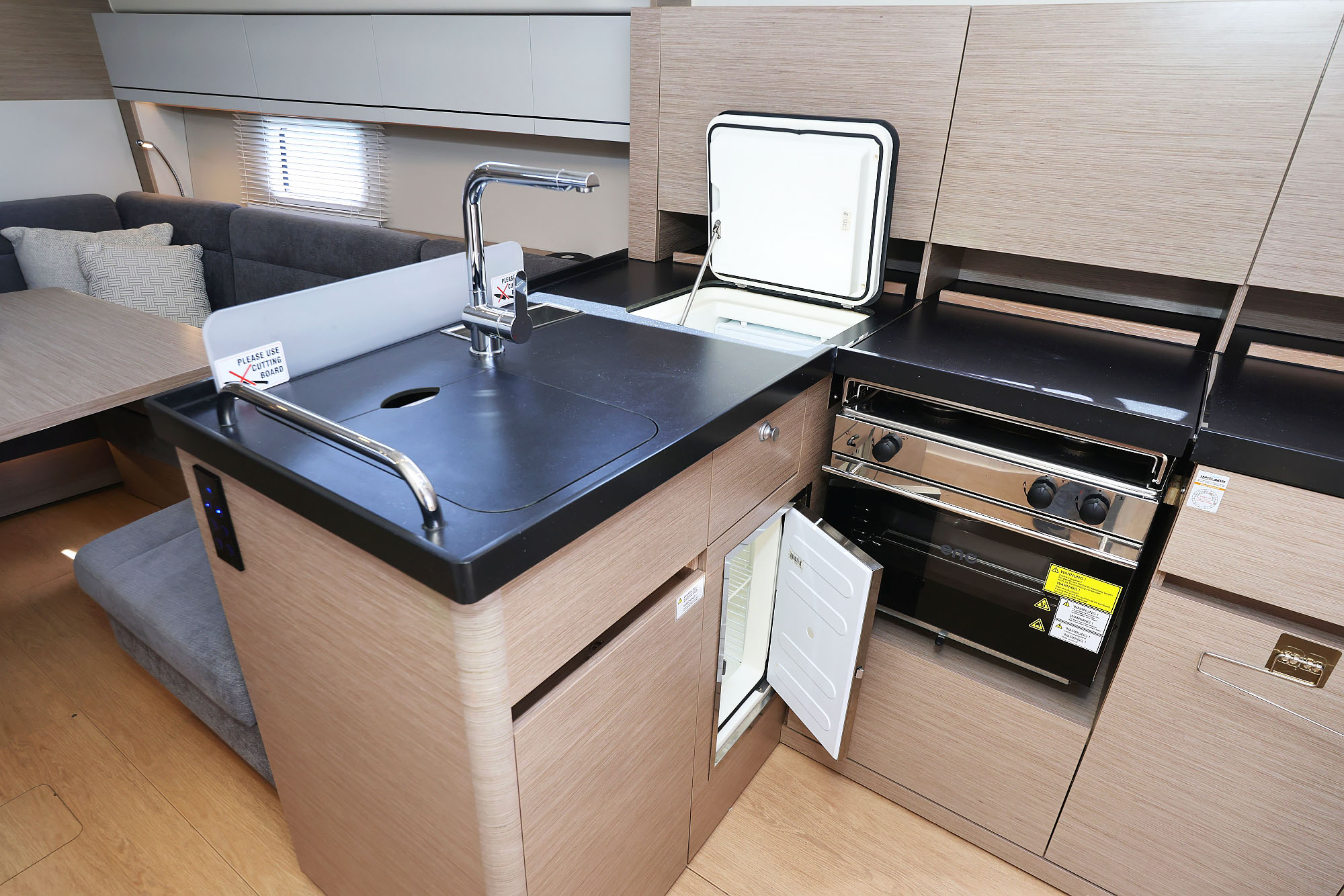 | Inside | Gasherd mit Backofen, Gefrierschrank, Inverter 12V/220V, Kühlschrank, Ladegerät, Pantryausstattung, Radio mit CD, Warmwasser |
