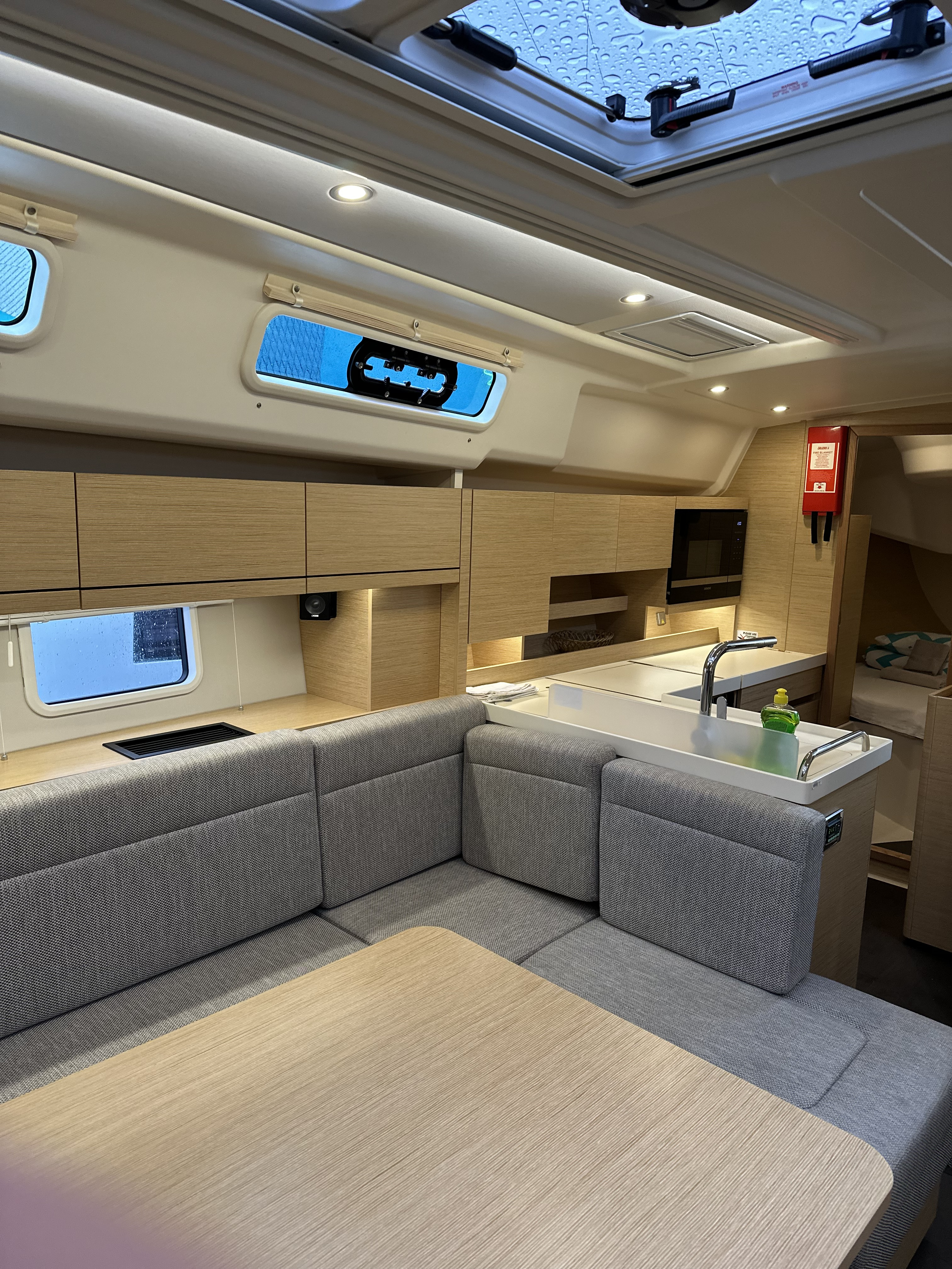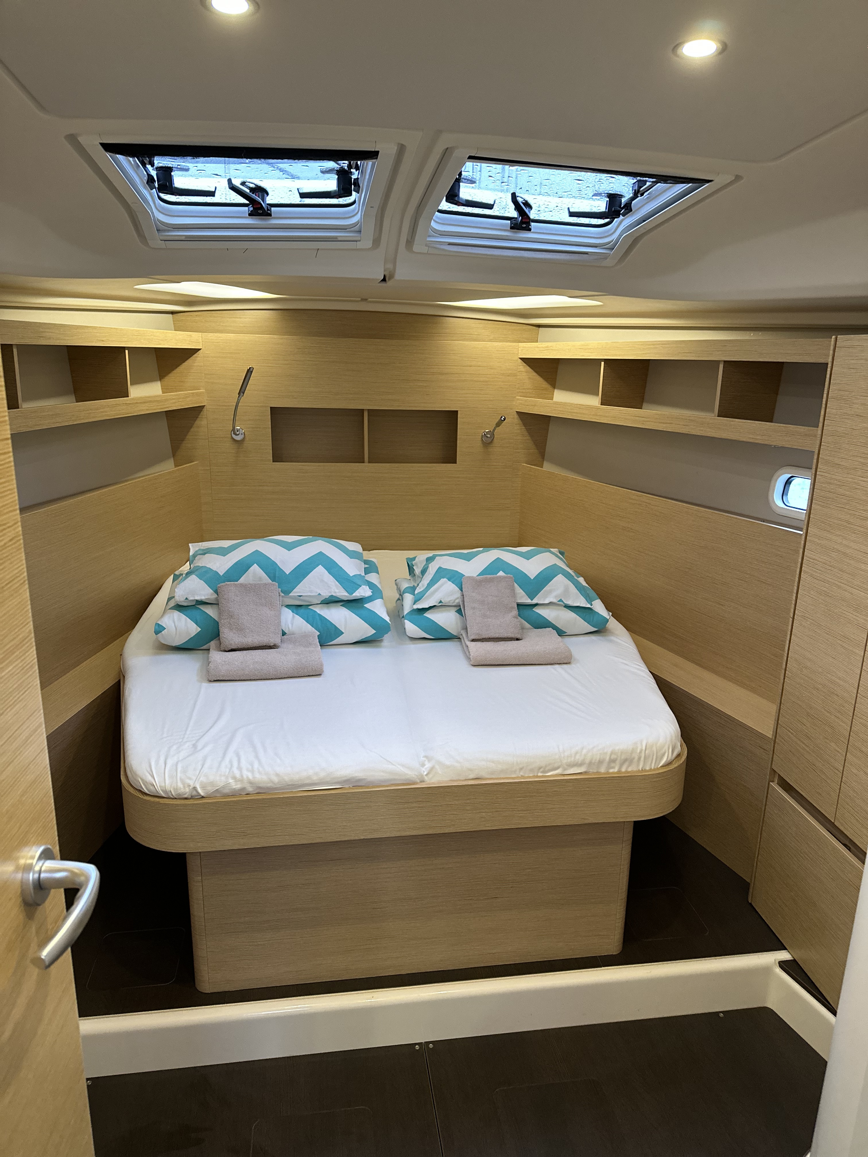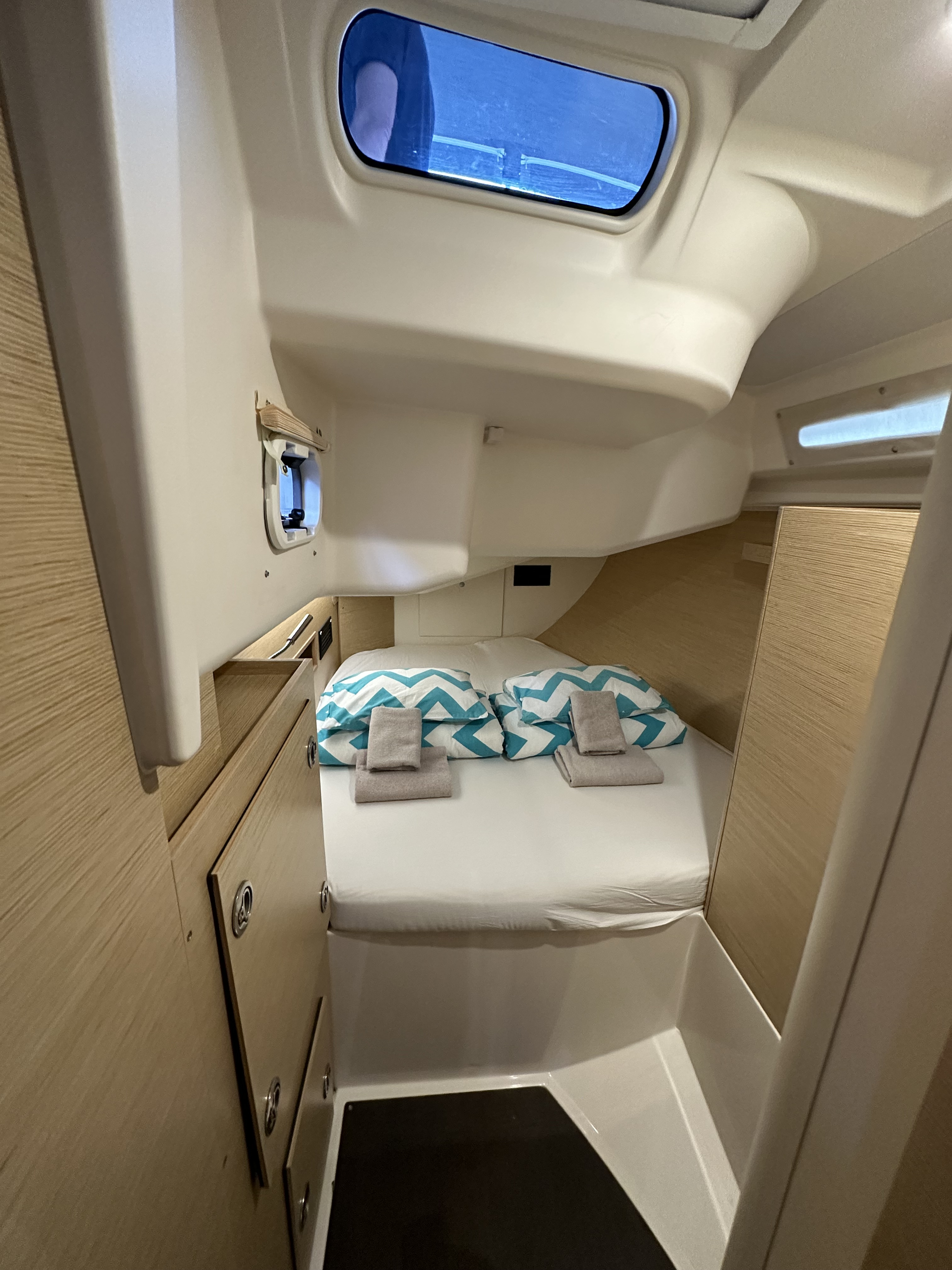 Der Vercharterer war gut allerdings war die Yacht selber mit einigen kleinen Mängeln behaftet, die in der Summe den Eindruck gedämpft haben. Möblierung nicht zum Segeln geeignet (keine Süllkanten oder rutschfeste Oberflächen). Achterkabinen rochen stark nach Diesel und WC. Keine Kleider oder Trockenhaken. Türen nicht arretierest. Kein Inverterbetrieb ohne Generator, keine Decksbeleuchtung im Cockpit, relativ wenig Stauraum. Kleiner Kühlschrank. Großfall war defekt, ungünstige Anordnung der Winschen, Autopilot hat nicht funktioniert. Aussenborder des Dingi war eine Katastrophe!!