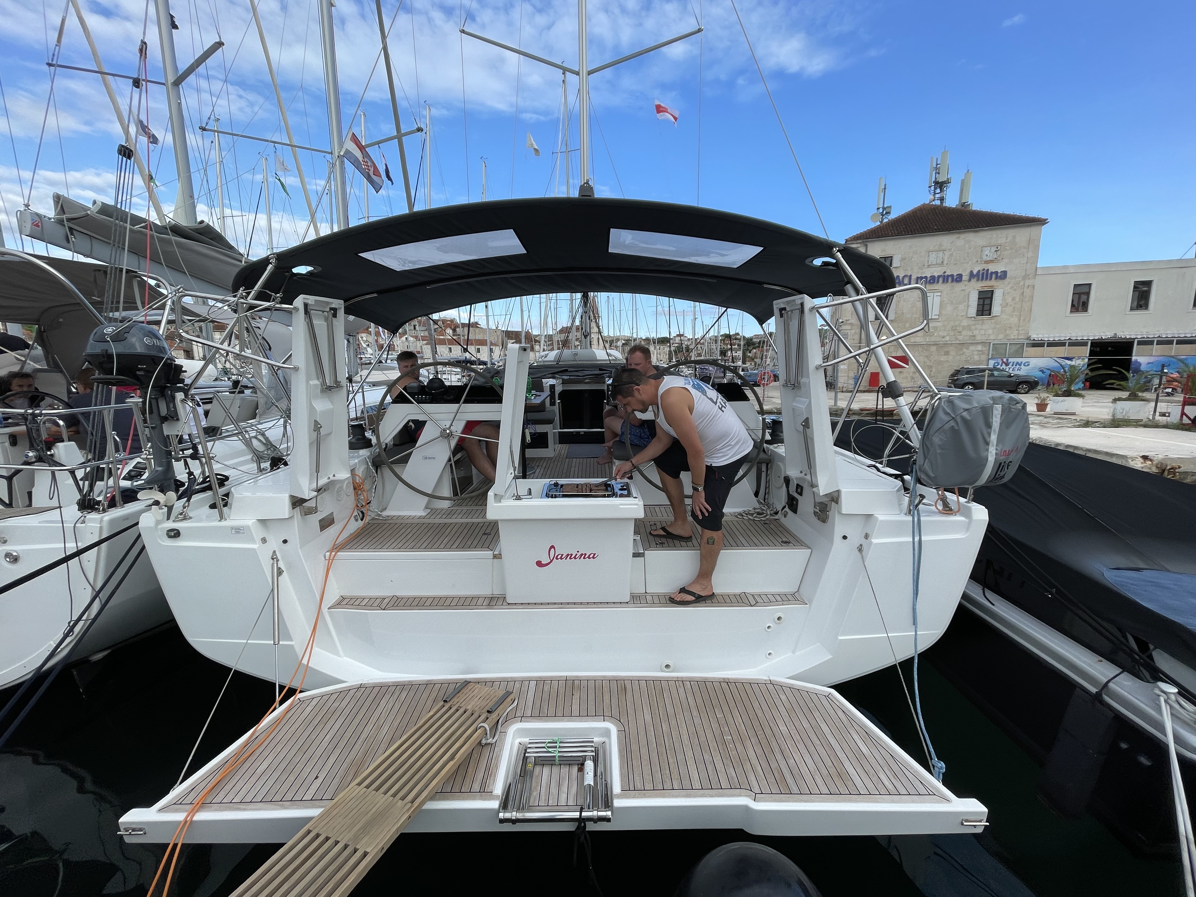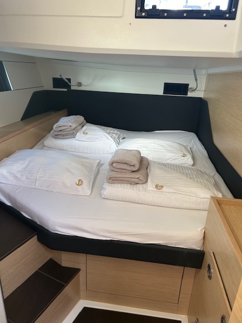 Outside 220 V-Landanschluss, Anker mit Kette, Biminitop, Cockpitdusche, Cockpitlautsprecher, Cockpitpolster, Cockpittisch, elektr. Ankerwinsch, Fender, Festmacherleinen, Gangway, Grill, Sprayhood