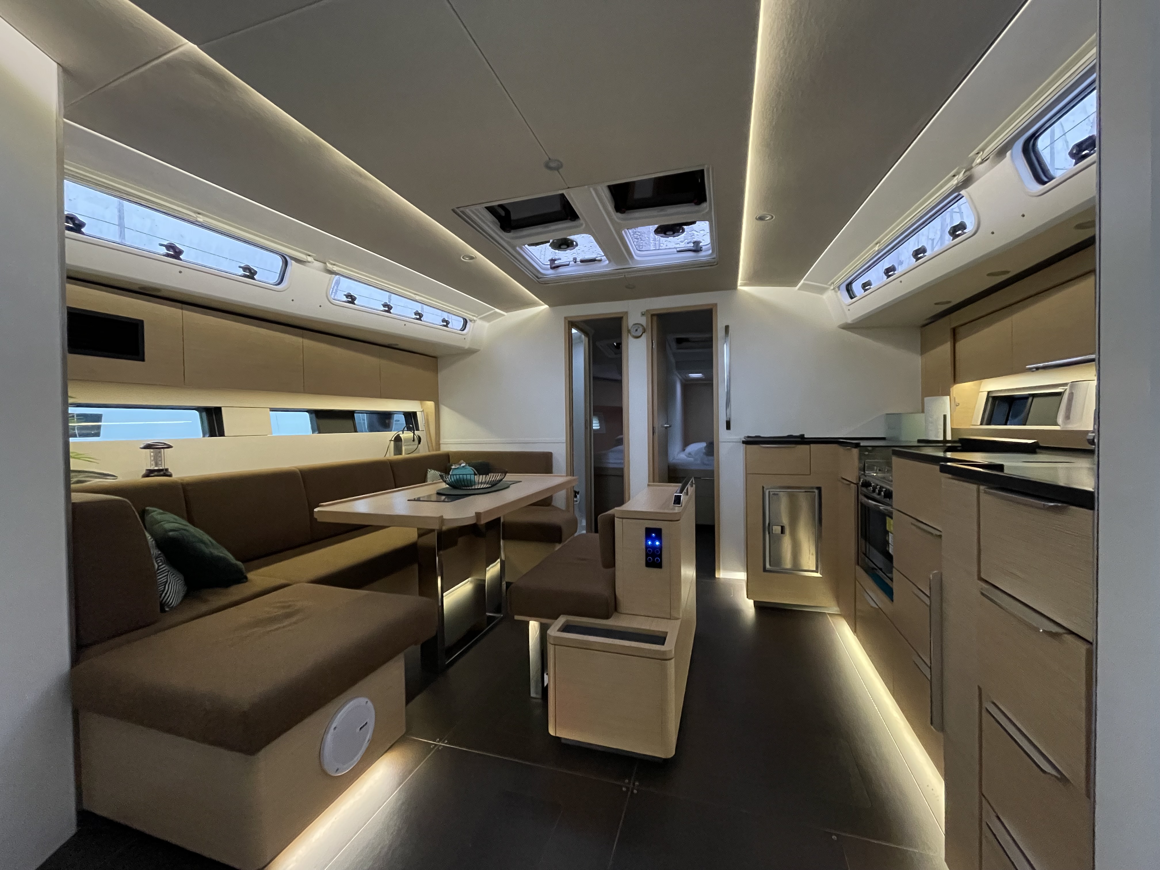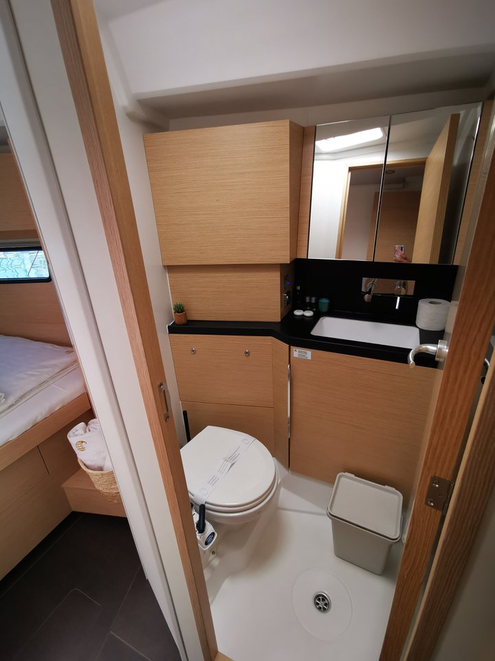 Inside Generator, Heizung, Inverter 12V/220V, Kaffeemaschine, Klimaanlage (ohne Landstrombedarf), Kühlschrank, Ladegerät, Lautsprecher im Salon, Pantryausstattung, Radio mit CD/MP3/USB, WC (elektr.)