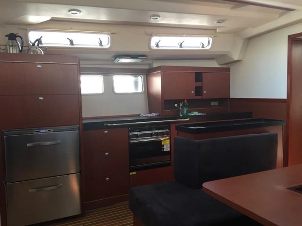 | Inside | Backofen, Besen und Kehrblech, Borduhr, CD-Player, Fäkalientank, Gasherd, Kleiderbügel, Klobürste, Ladegerät, Luftpumpe für Beiboot, Pantryausstattung, Warmwasser |