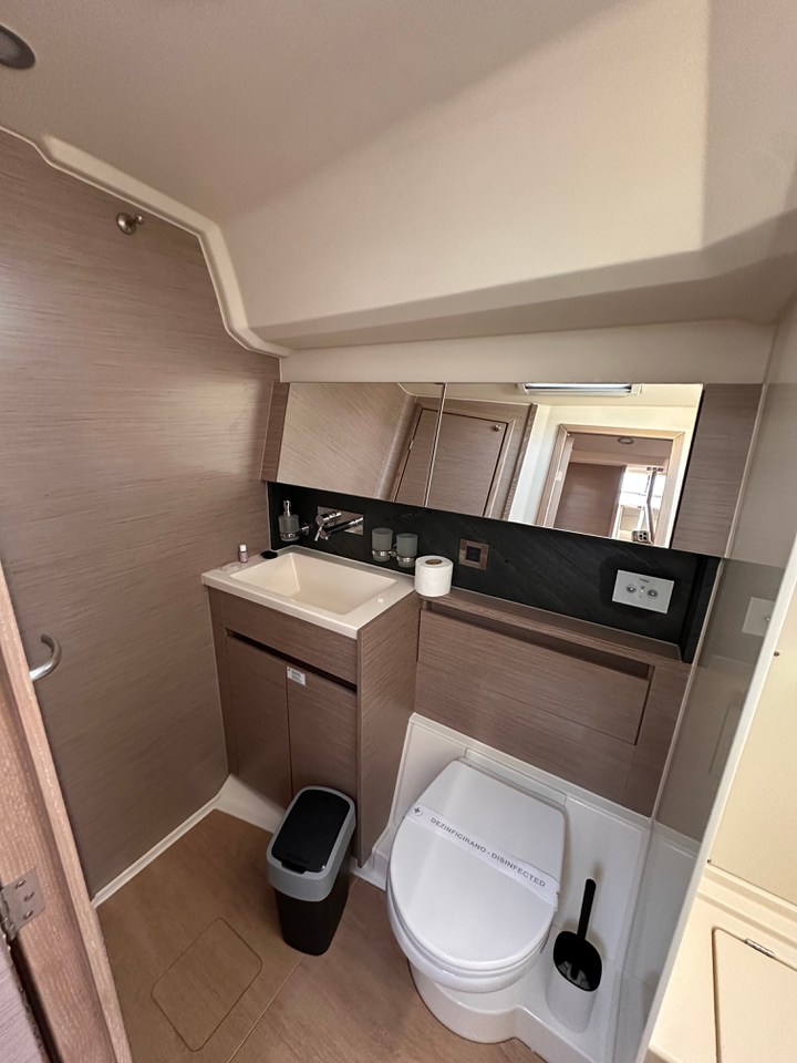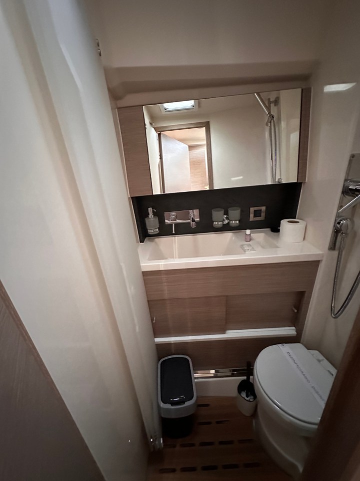| Outside | 220 V-Landanschluss, Anker mit Kette, Biminitop, Cockpitdusche, Cockpitlautsprecher, Cockpitpolster, Cockpittisch, elektr. Ankerwinsch, Fender, Festmacherleinen, Gangway, Sprayhood |