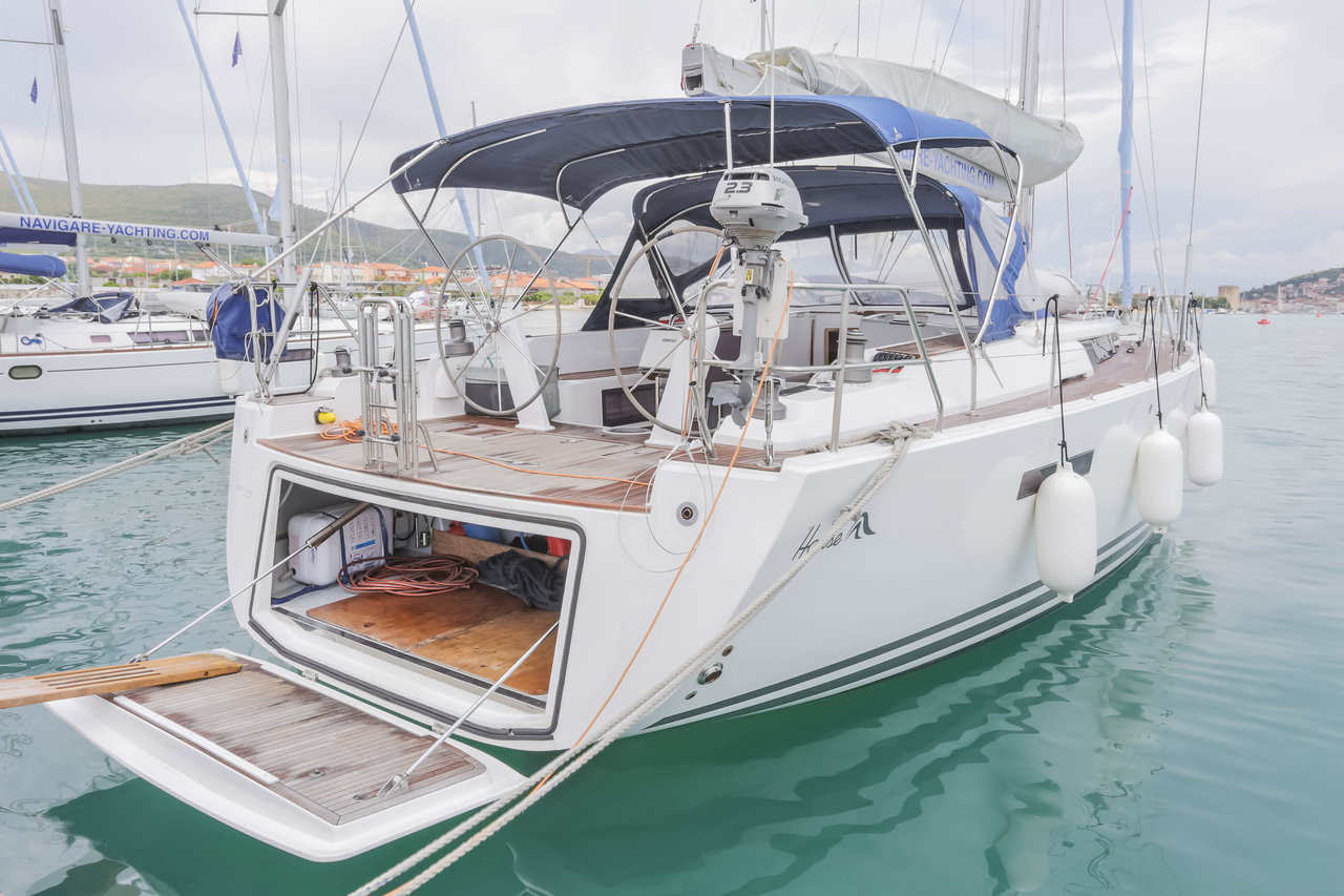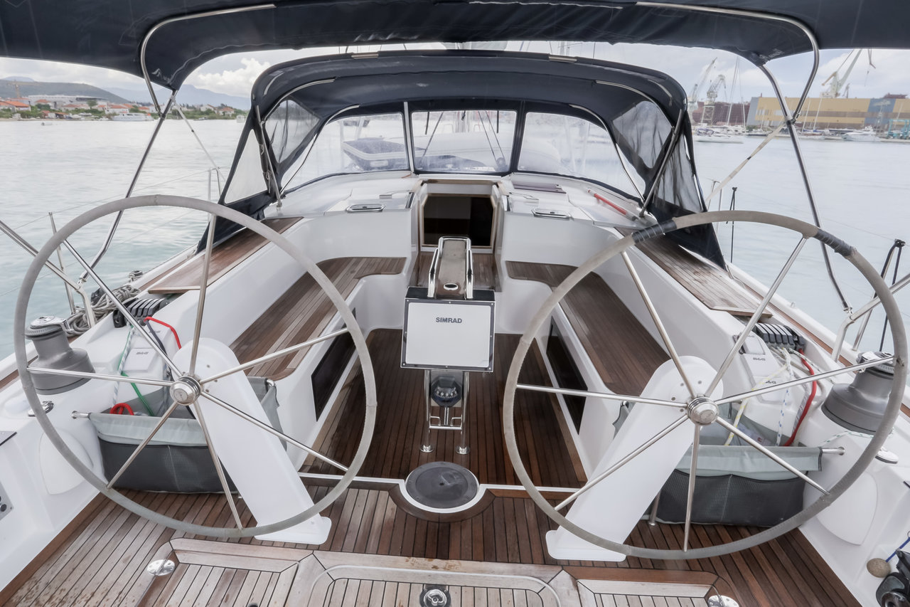 12 V-Anschluss, 220 V-Landanschluss, Anker mit Kette, Badeleiter, Badeplattform, Biminitop, Bootshaken, Cockpitdusche, Cockpitlautsprecher, Cockpitpolster, Cockpittisch, Deckbürste, Delta-Anker, elektr. Ankerwinsch, elektr. Winsch, Fender, Festmacherleinen, Gangway, Genuawinschen, Kugelfender, Sprayhood, Teak im Cockpit, Teakdeck, Treibanker, Wasserschlauch, Winschen |