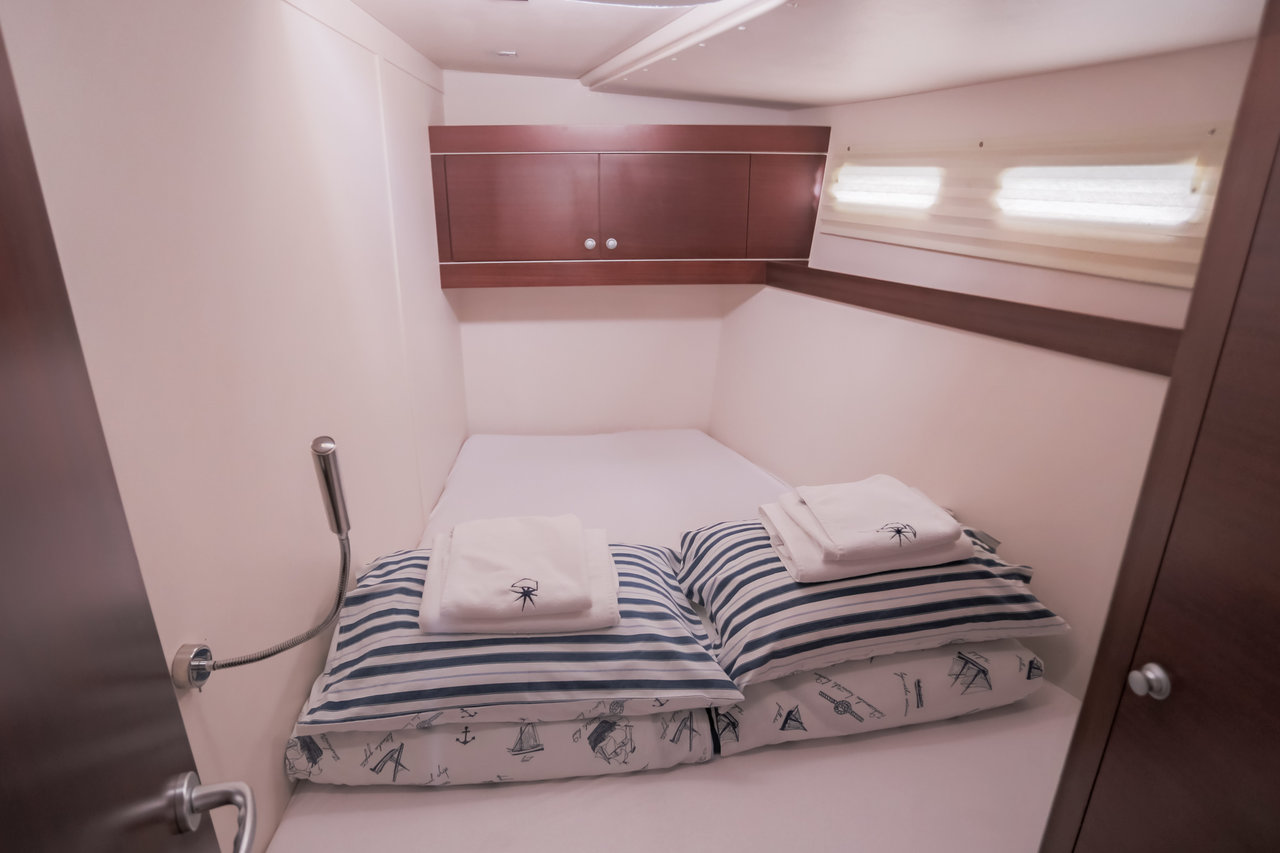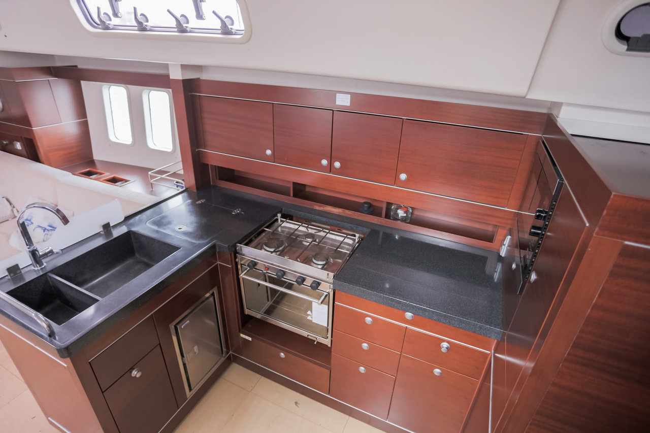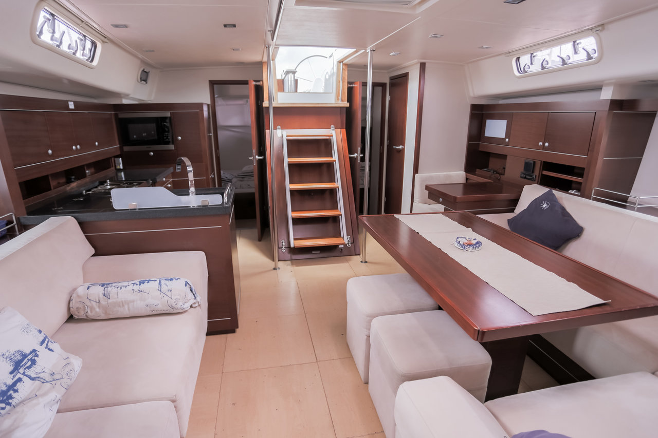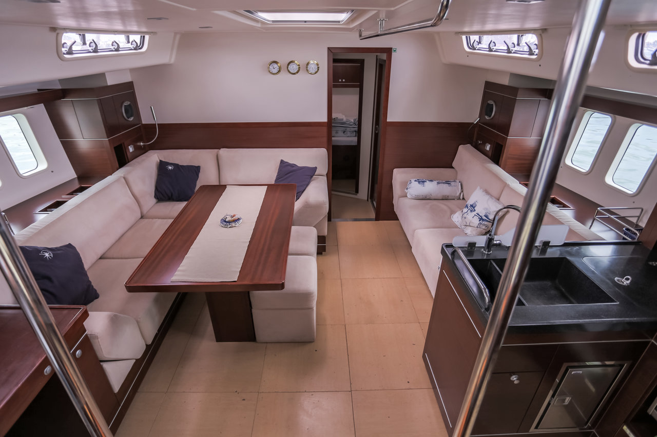 Autopilot, Bootsmannstuhl, Bordapotheke, Bordwerkzeug, Bugstrahlruder, elektr. Bilgepumpe, Feststoffschwimmwesten, Feuerlöscher, Nebelhorn, Notsignale, Radarreflektor, Rettungsinsel, Rettungskragen, Sicherheitsgurt, UKW-Funk, UKW-Funk m. DSC, Zweitanker |