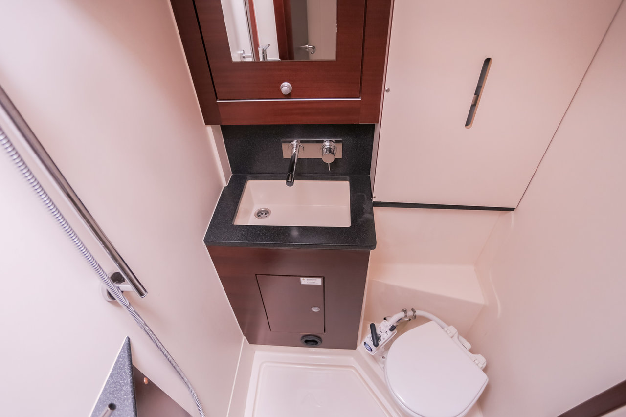12V/220V-Steckdosen, 220V Steckdosen, Backofen, Druckwasser, Fäkalientank, Gasherd, Heizung, Kühlbox, Kühlschrank, Ladegerät, Lautsprecher im Salon, Pantryausstattung, Radio mit MP3 , Spülbecken, Voltmeter |