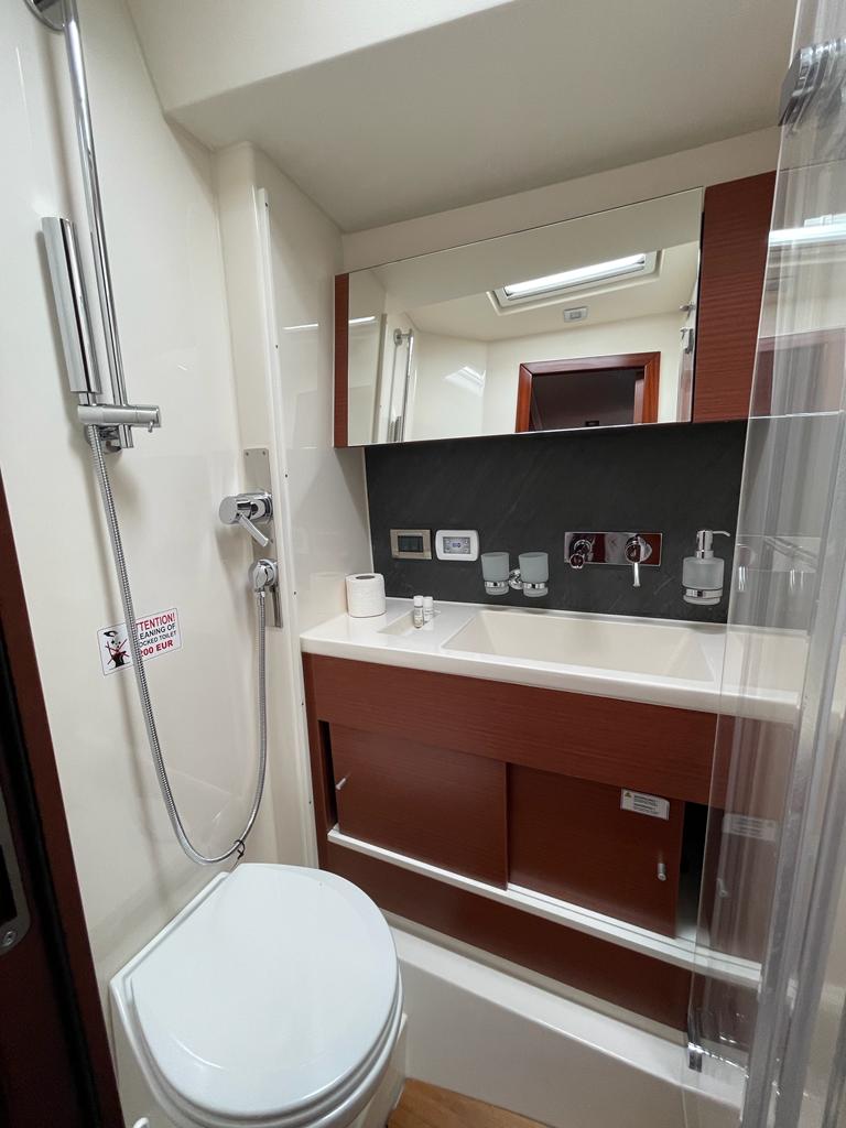 | Outside | Badeplattform (hydr.), Biminitop, Cockpitdusche, Cockpitlautsprecher, Cockpitpolster, Cockpittisch, Deckpolster, elektr. Ankerwinsch, elektr. Großwinsch, Sprayhood, Teak im Cockpit |
