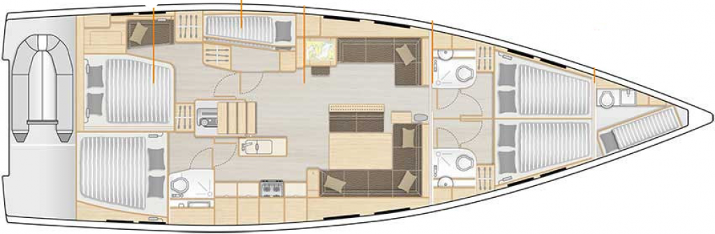 | Kabinen: | 5+1 | Kojen: | 10+1+1 |