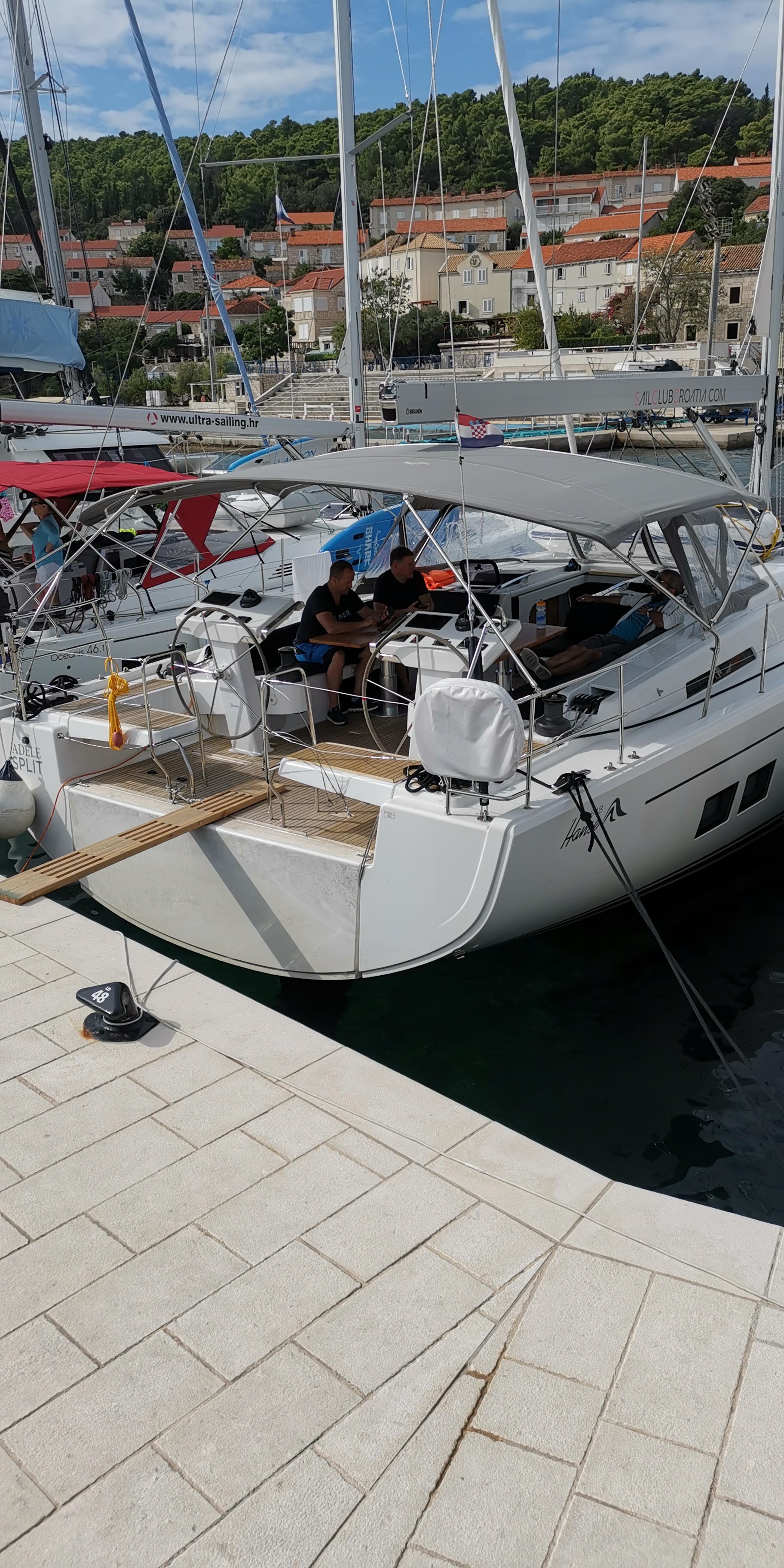 | Navigation | GPS mit Kartenplotter im Cockpit, Hafenhandbücher, Seekarten, Tridata (Log, Echolot, Windm.) |