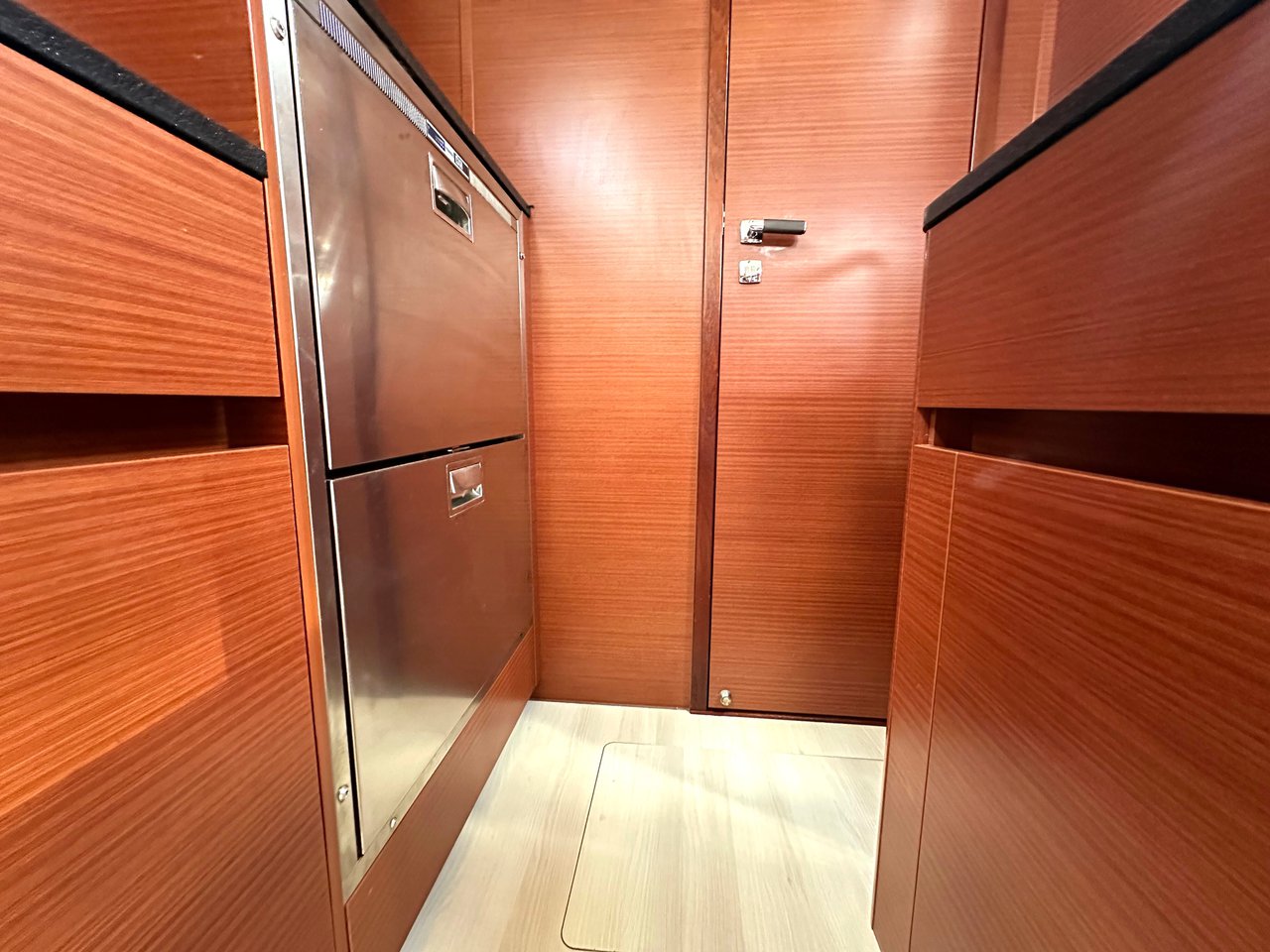| Inside | Backofen, Gasherd, Gefrierschrank, Generator, Heizung, Inverter 12V/220V, Klimaanlage (ohne Landstrombedarf), Kühlschrank, Ladegerät, Pantryausstattung, Radio mit CD und USB, Warmwasser, WC (elektr.) |