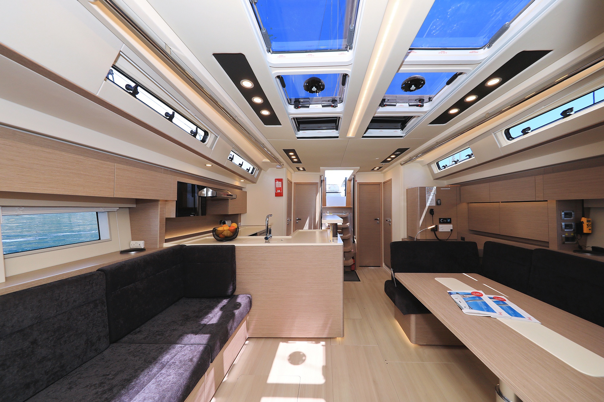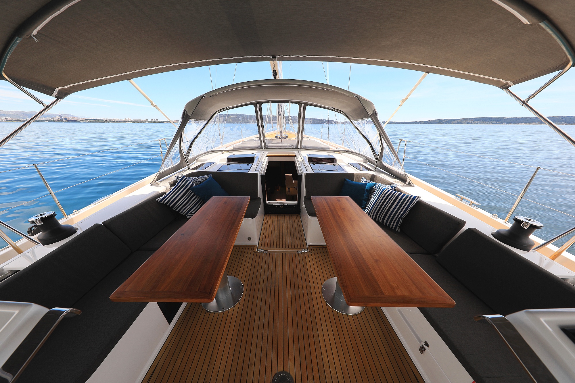 | Outside | Badeplattform, Biminitop, Cockpitdusche, Cockpitlautsprecher, Cockpitpolster, Cockpittisch absenkbar, Deckpolster, elektr. Ankerwinsch, elektr. Großwinsch, Grill, Sprayhood, Teak im Cockpit, Teakdeck |