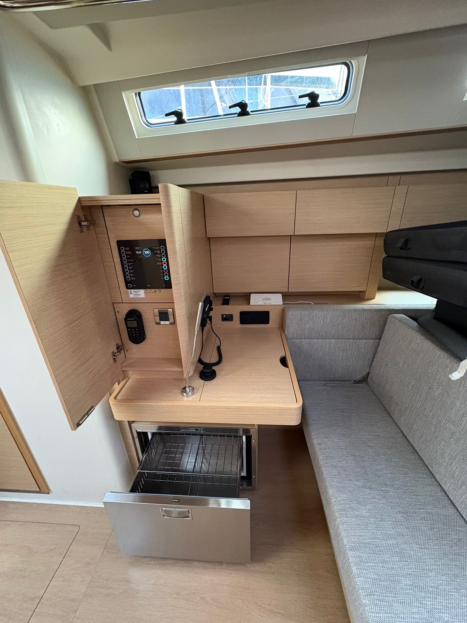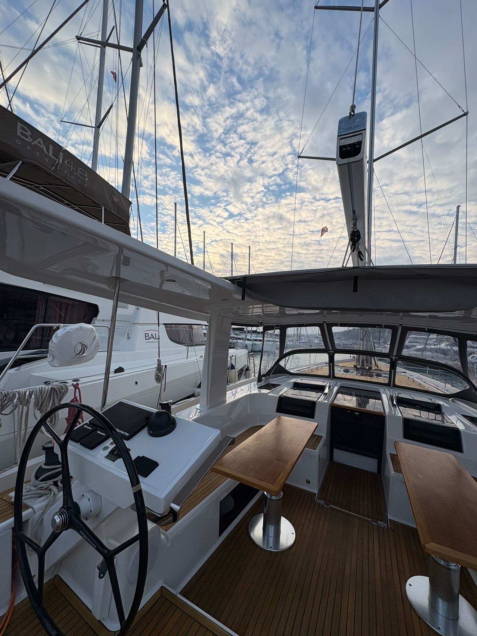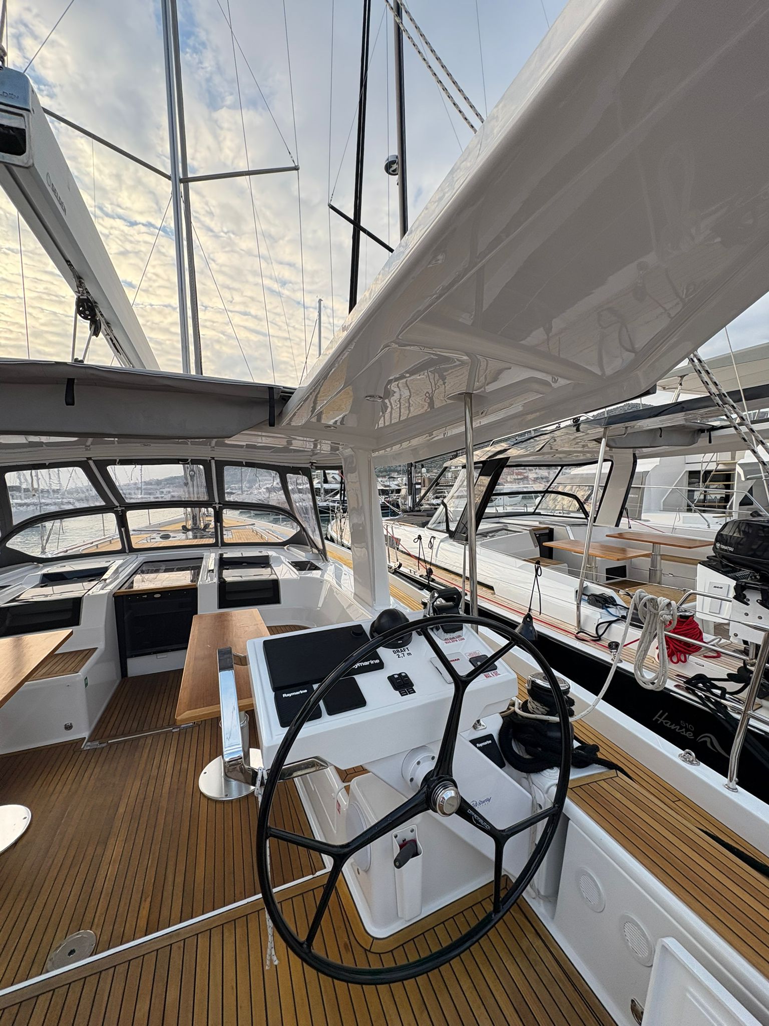 | Outside | Badeplattform, Cockpitdusche, Cockpitlautsprecher, Cockpitpolster, Cockpittisch, Deckpolster, elektr. Großwinsch, Hardtop, Sprayhood, Teak im Cockpit, Teakdeck |