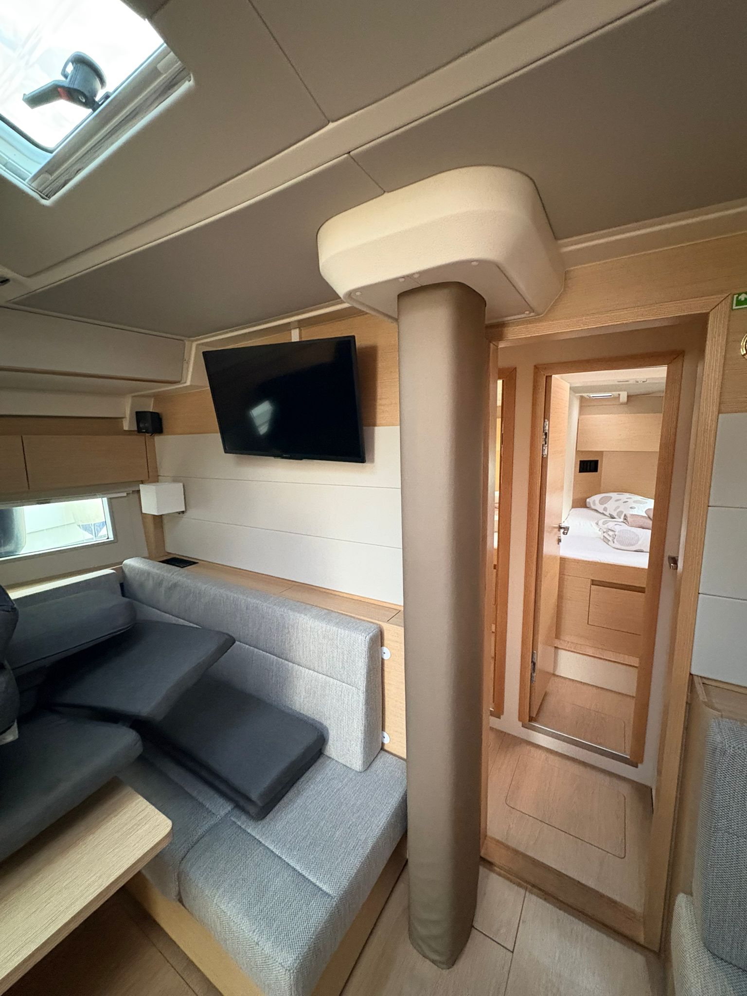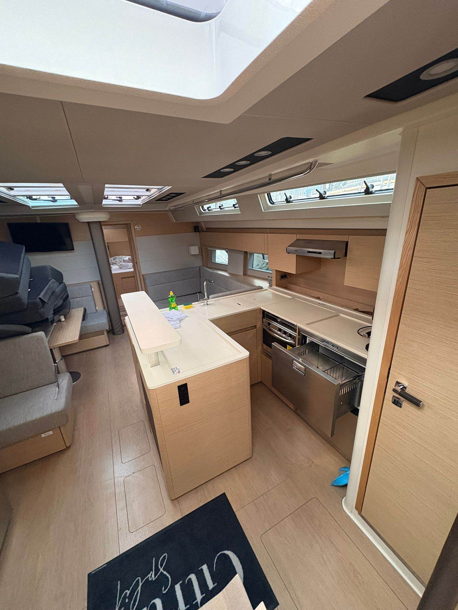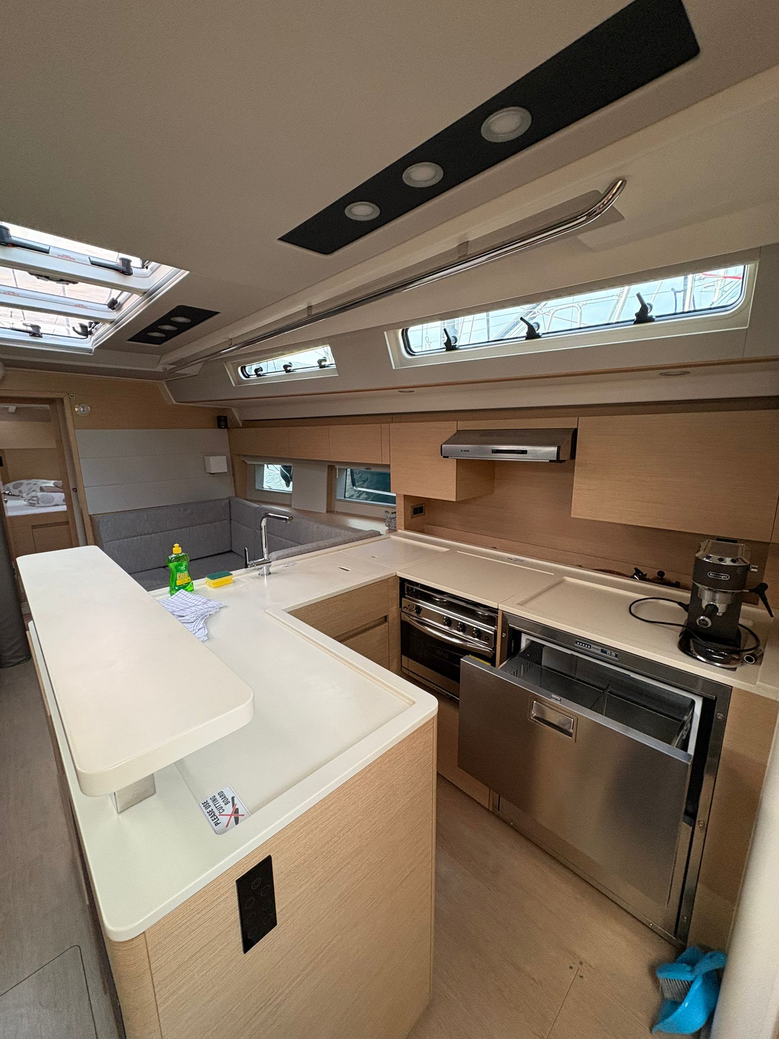 | Outside | Badeplattform, Cockpitdusche, Cockpitlautsprecher, Cockpitpolster, Cockpittisch, Deckpolster, elektr. Großwinsch, Hardtop, Sprayhood, Teak im Cockpit, Teakdeck |