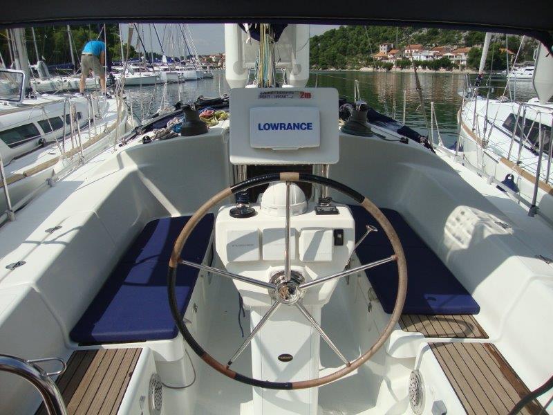 | Navigation | Echolot, GPS mit Kartenplotter, Hafenhandbücher, Navigationsbesteck, Seekarten, Sumlog, Windmesser |