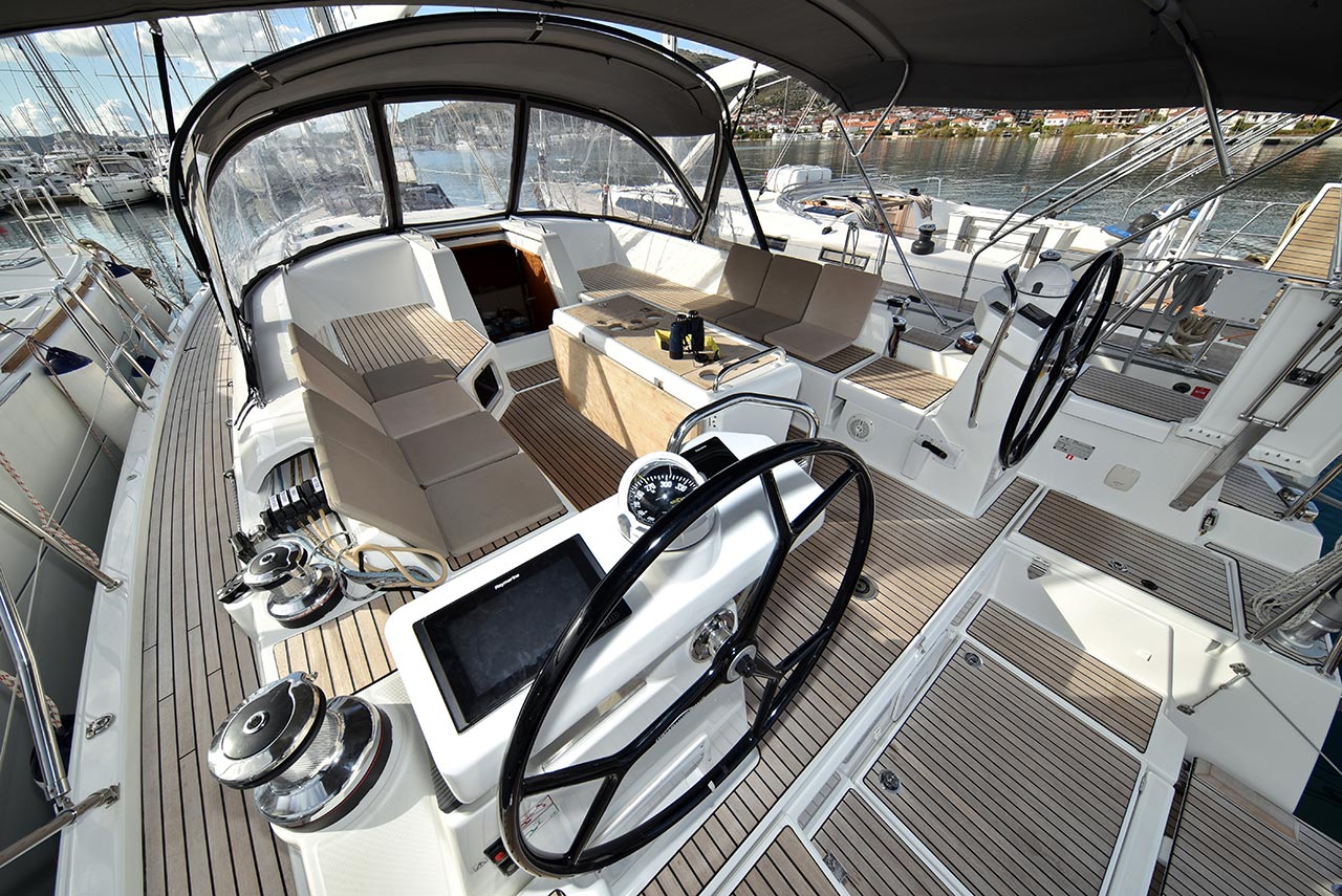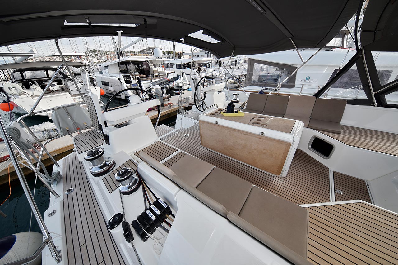 | Outside | 220 V-Landanschluss, Anker mit Kette, Ankerwinsch, Badeplattform, Biminitop, Bootshaken, Cockpitdusche, Cockpitkühlschrank, Cockpitlautsprecher, Cockpittisch, Davits, Dieselkanister , elektr. Ankerwinsch, Fender, Festmacherleinen, Gangway, Kugelfender, Kunststoff-Eimer (Pütz), Solaranlage, Sprayhood, Teak im Cockpit, Teakdeck, Wantenschneider, Wasserkanister , Wasserschlauch, Windex |