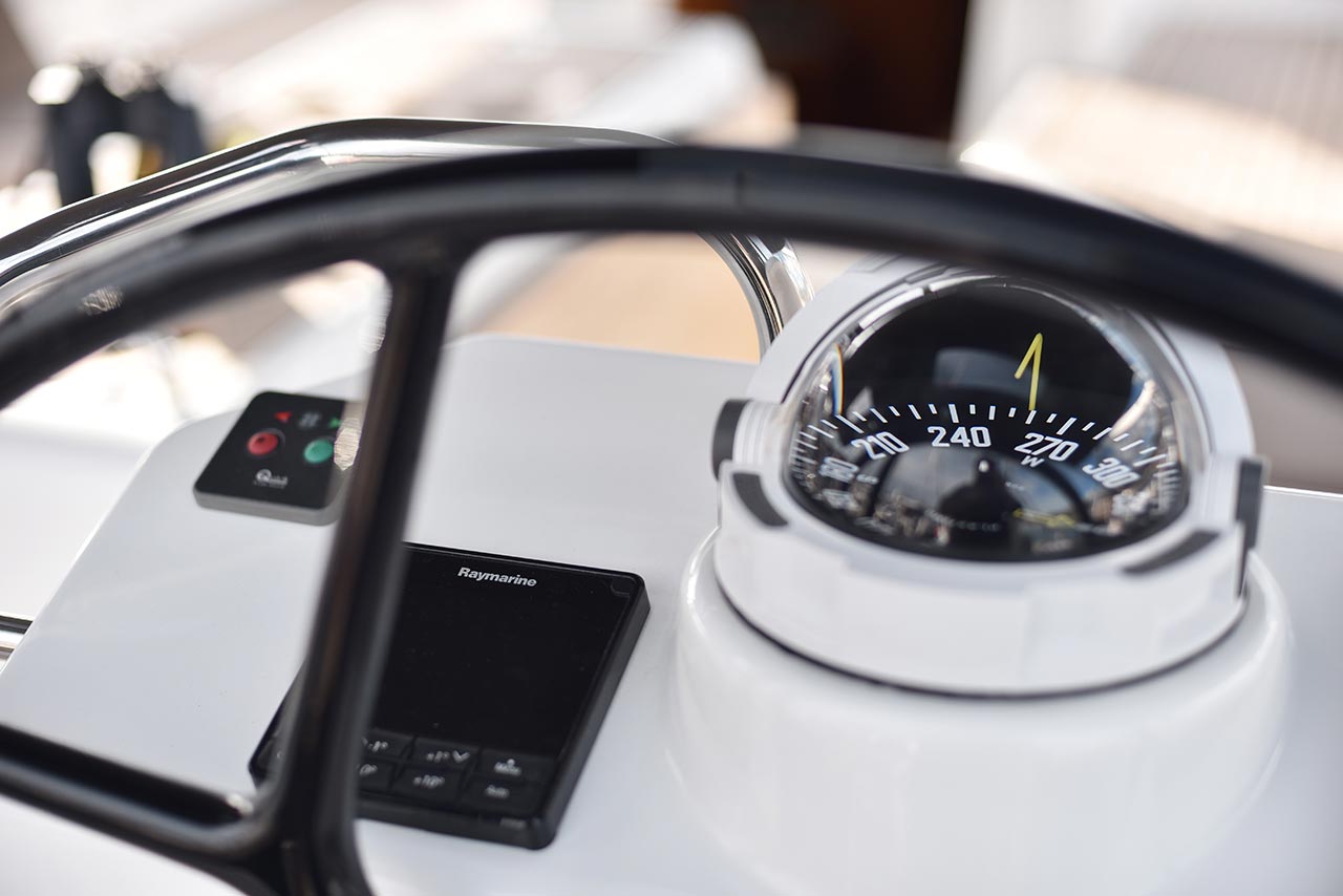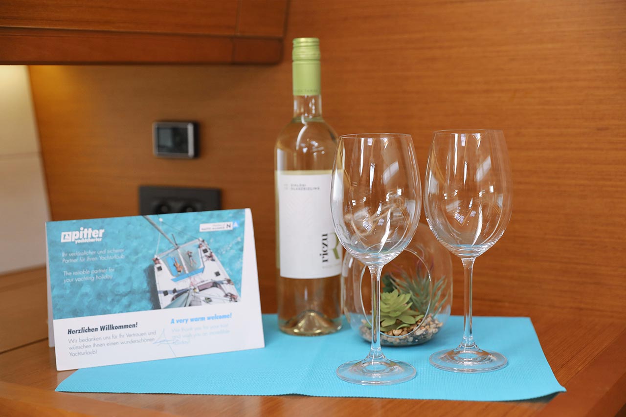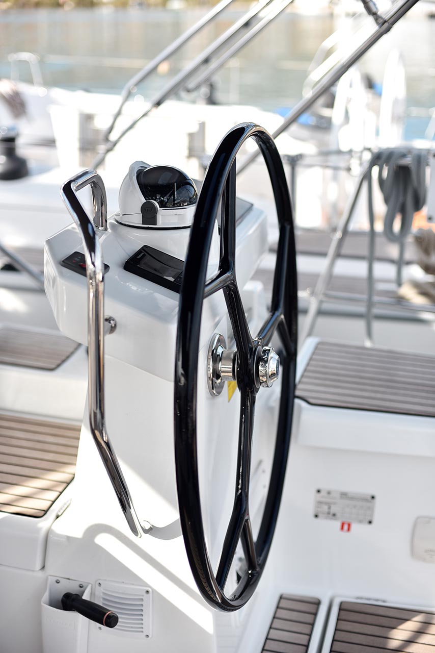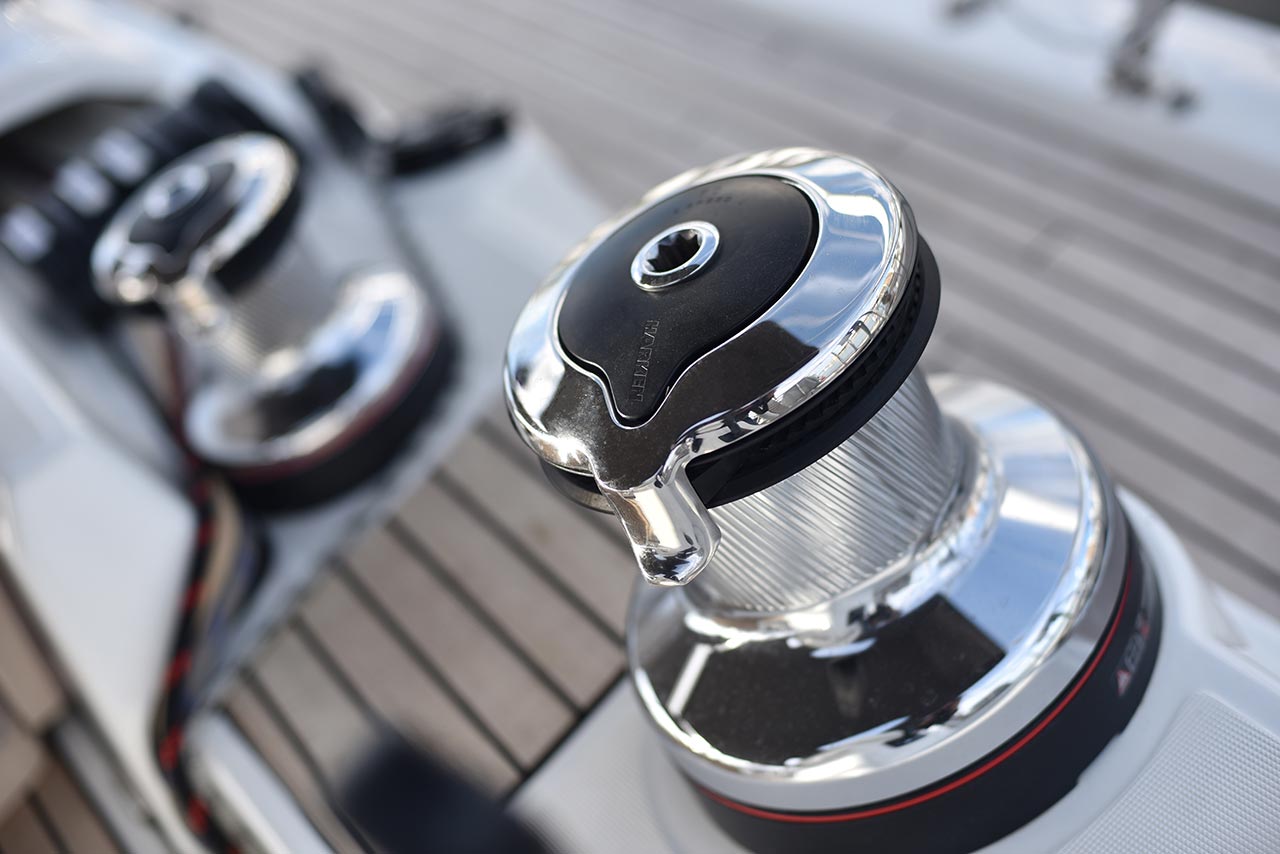 | Safety | Automatikwesten, Autopilot, Blitzboje, Bootsmannstuhl, Bordapotheke, Bordwerkzeug, Bugstrahlruder, Feuerlöscher, Lifebelts, Motor-Ersatzteile, Nebelhorn, Notsignale, Radarreflektor, Reparaturset für Beiboot, Rettungsinsel, Suchscheinwerfer, Taschenlampe, UKW-Funk mit AIS, Zweitanker |