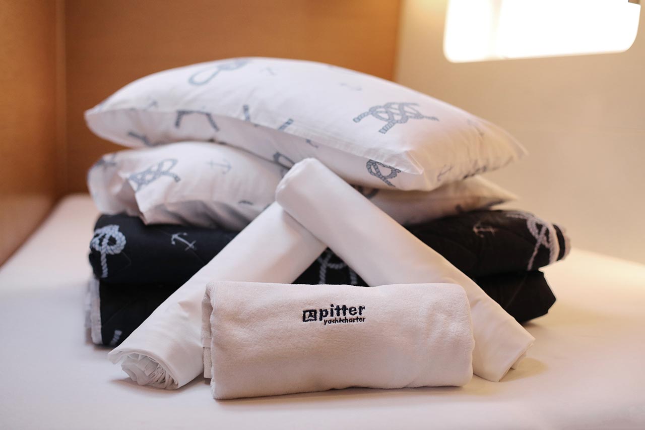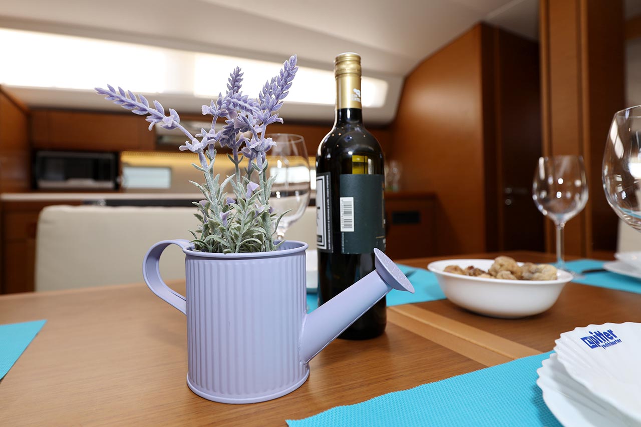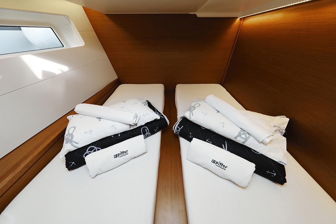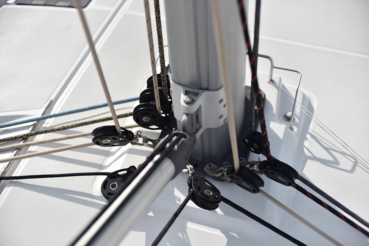 | Safety | Automatikwesten, Autopilot, Blitzboje, Bootsmannstuhl, Bordapotheke, Bordwerkzeug, Bugstrahlruder, Feuerlöscher, Lifebelts, Motor-Ersatzteile, Nebelhorn, Notsignale, Radarreflektor, Reparaturset für Beiboot, Rettungsinsel, Suchscheinwerfer, Taschenlampe, UKW-Funk mit AIS, Zweitanker |
