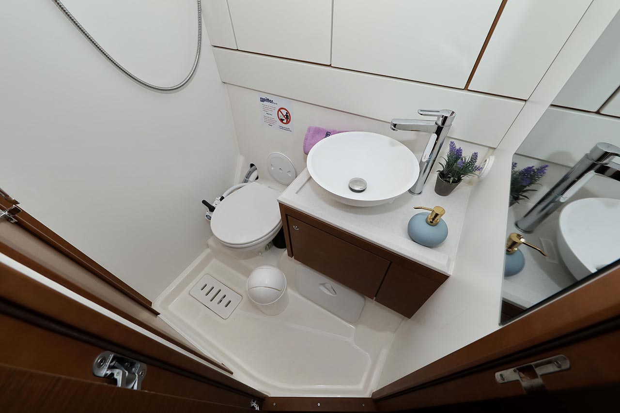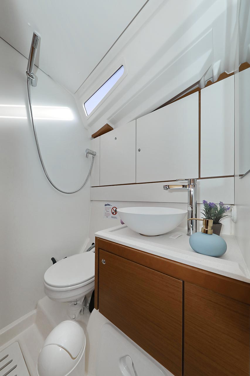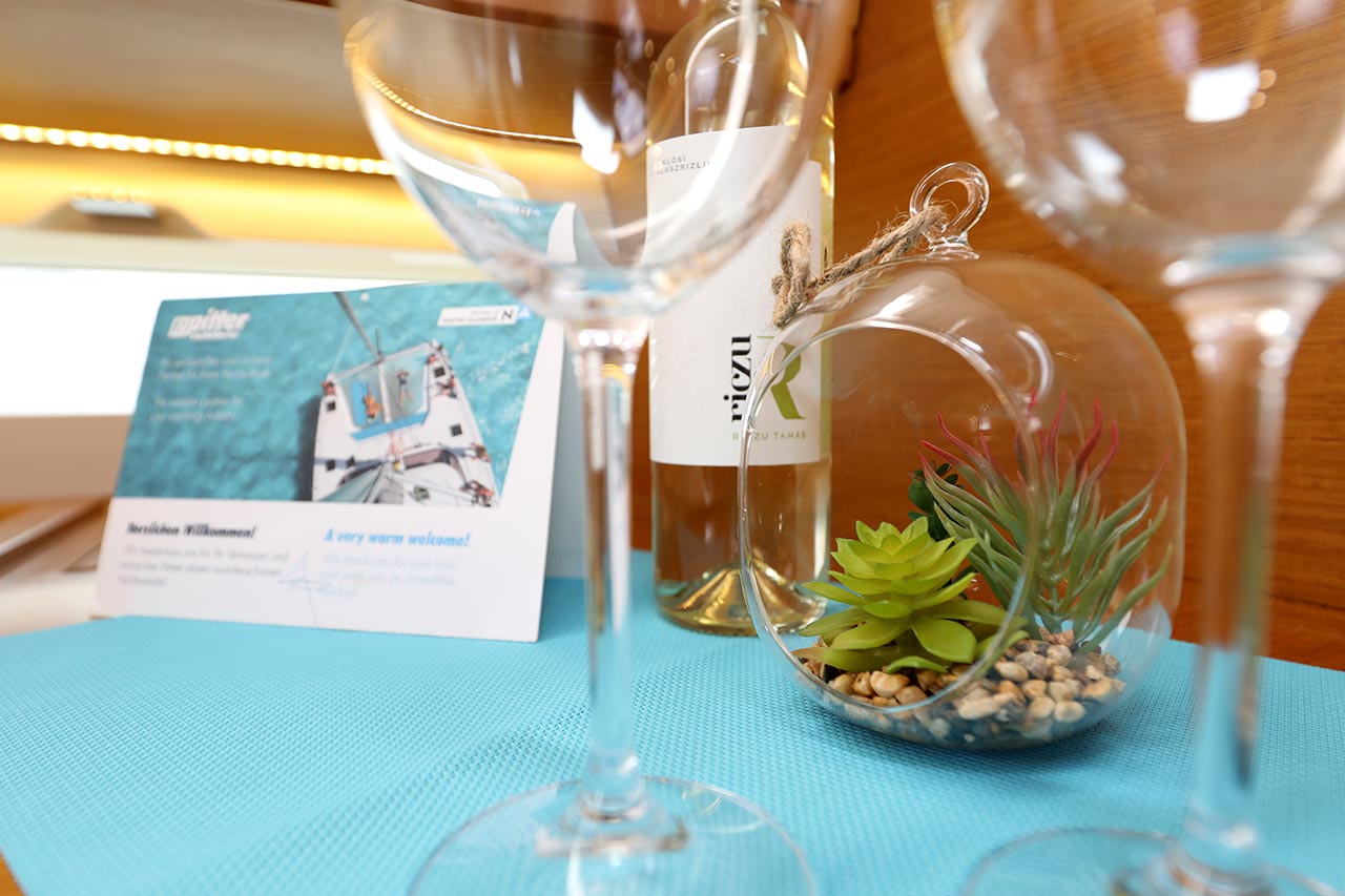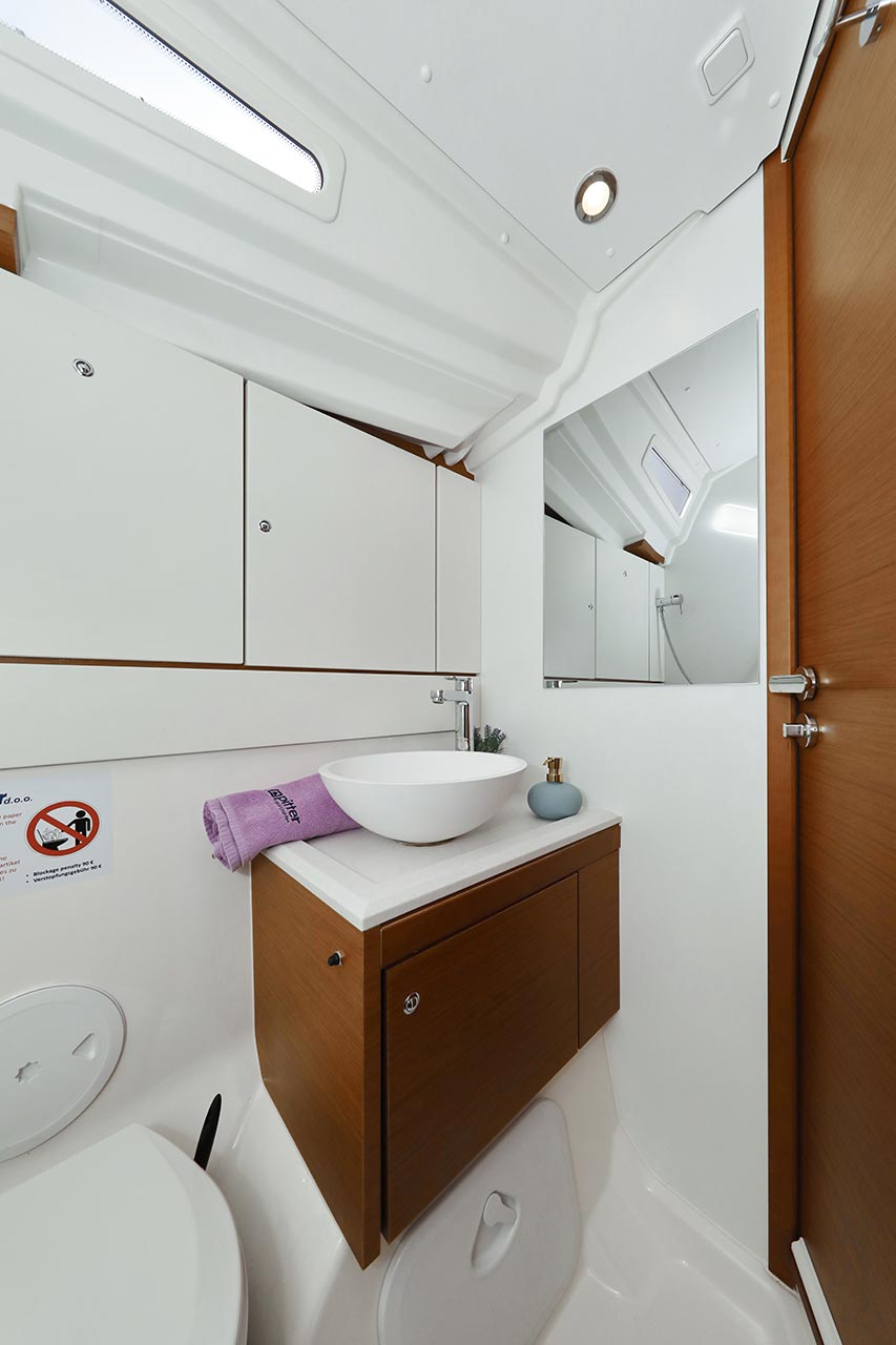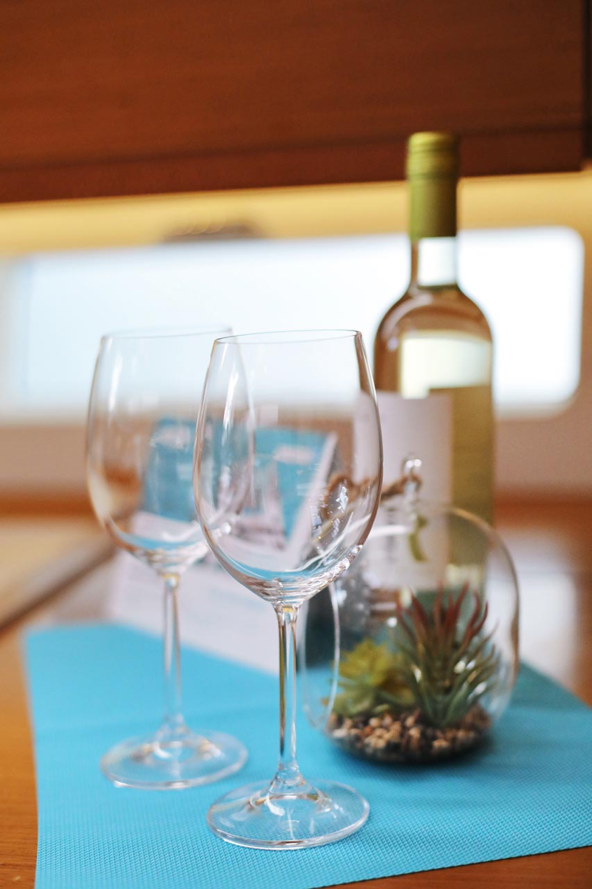 | Safety | Automatikwesten, Autopilot, Blitzboje, Bootsmannstuhl, Bordapotheke, Bordwerkzeug, Bugstrahlruder, Feuerlöscher, Lifebelts, Motor-Ersatzteile, Nebelhorn, Notsignale, Radarreflektor, Reparaturset für Beiboot, Rettungsinsel, Suchscheinwerfer, Taschenlampe, UKW-Funk mit AIS, Zweitanker |